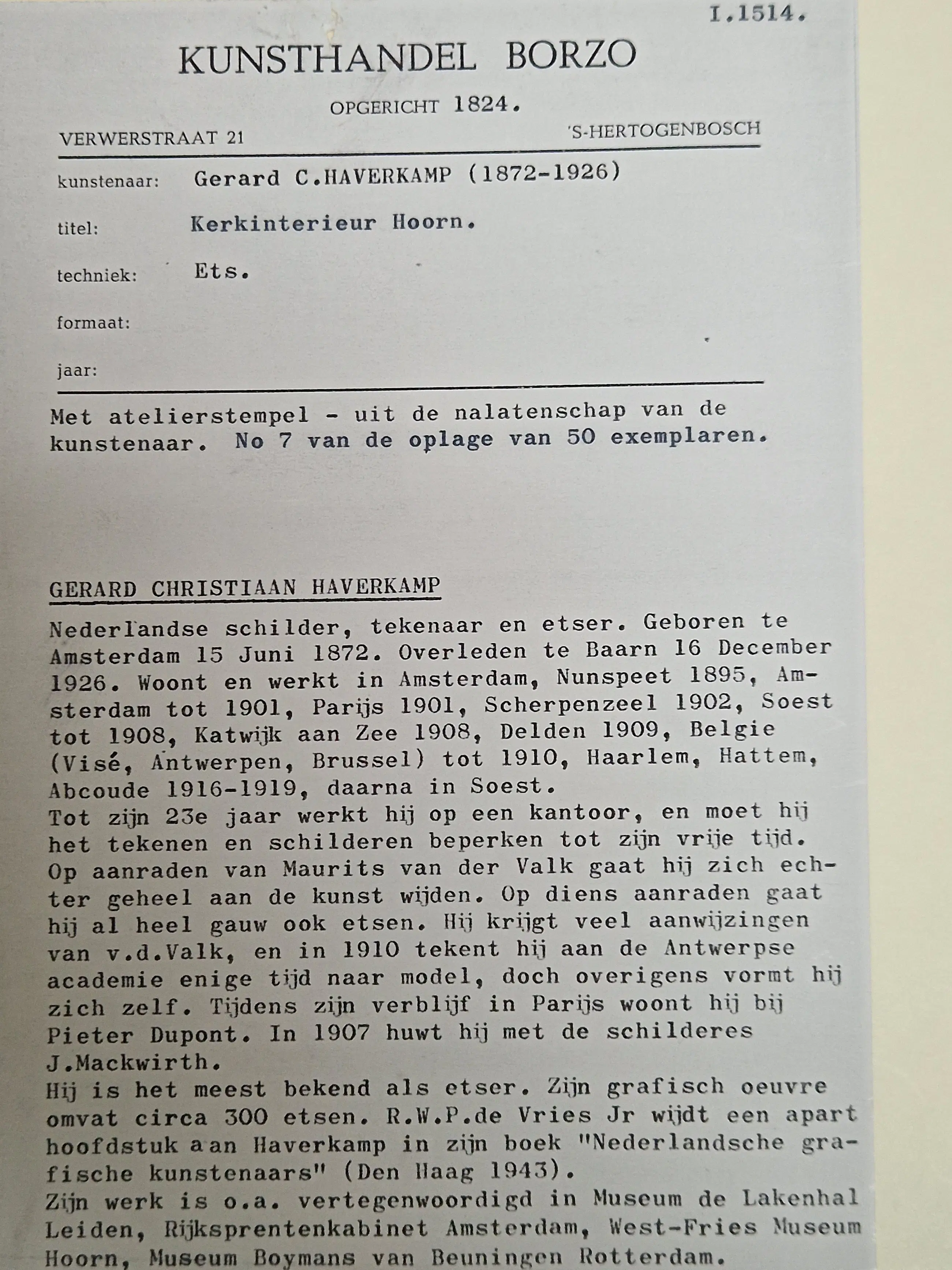 Aangekocht in de jaren '70 bij kunsthandel Borzo in Den Bosch.