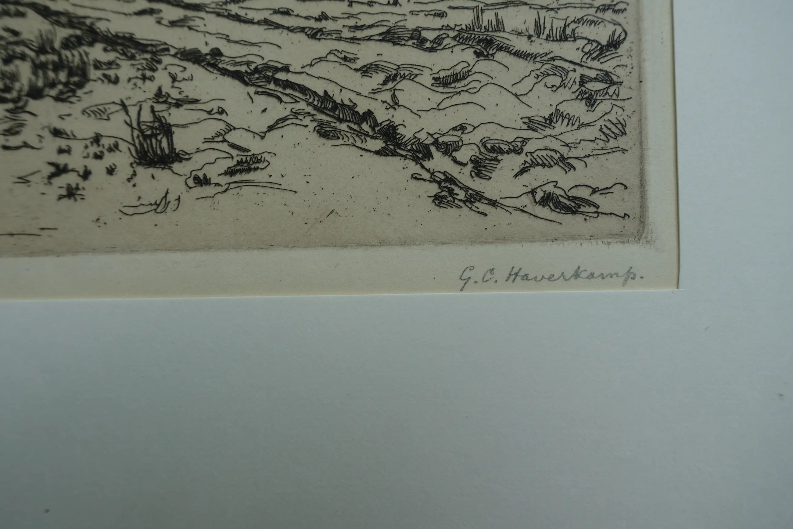 Ets uit 1915 waarin Haverkamp doorwerkt in de stijl van de Nederlandsche Etsclub uit de tweede helft van de 19e eeuw. Uitstekende conditie. Gesigneerd met potlood.