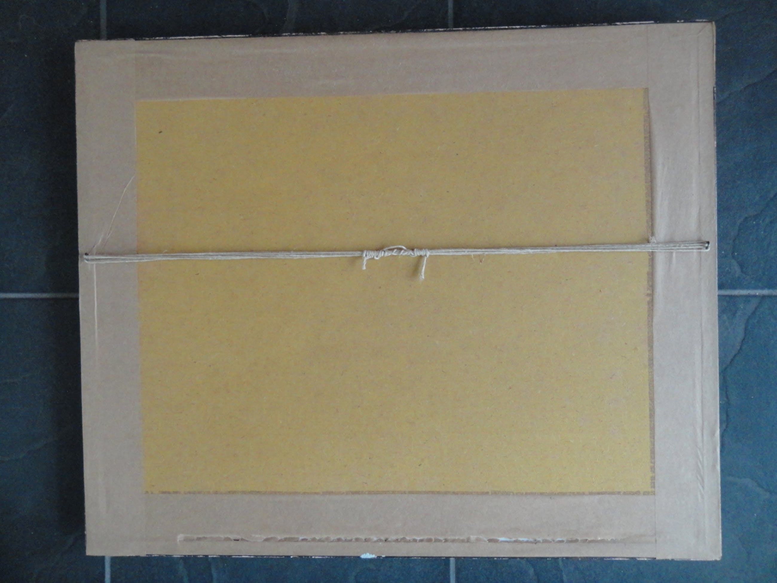 Aquarel achter passe-partout in oude lijst: 43 bij 52 cm.