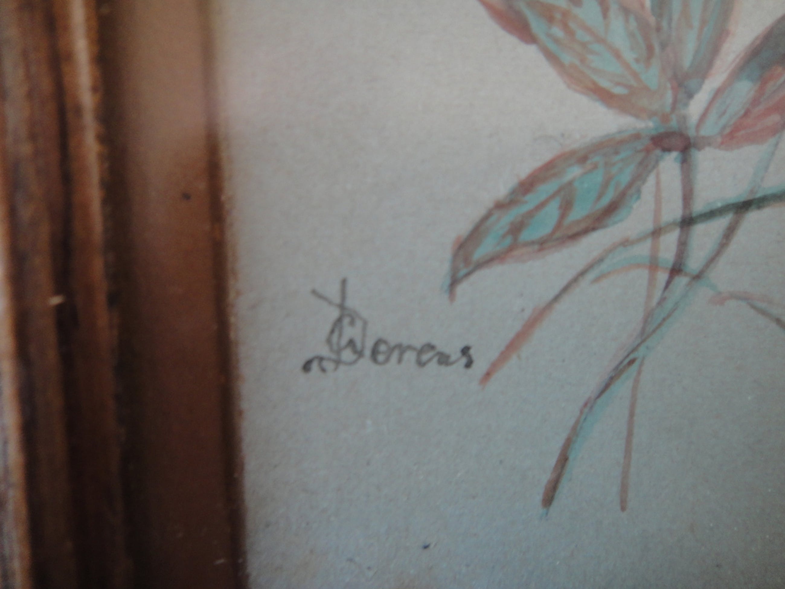 Aquarel achter passe-partout in oud lijstje: 16,7 bij 12,2 cm.