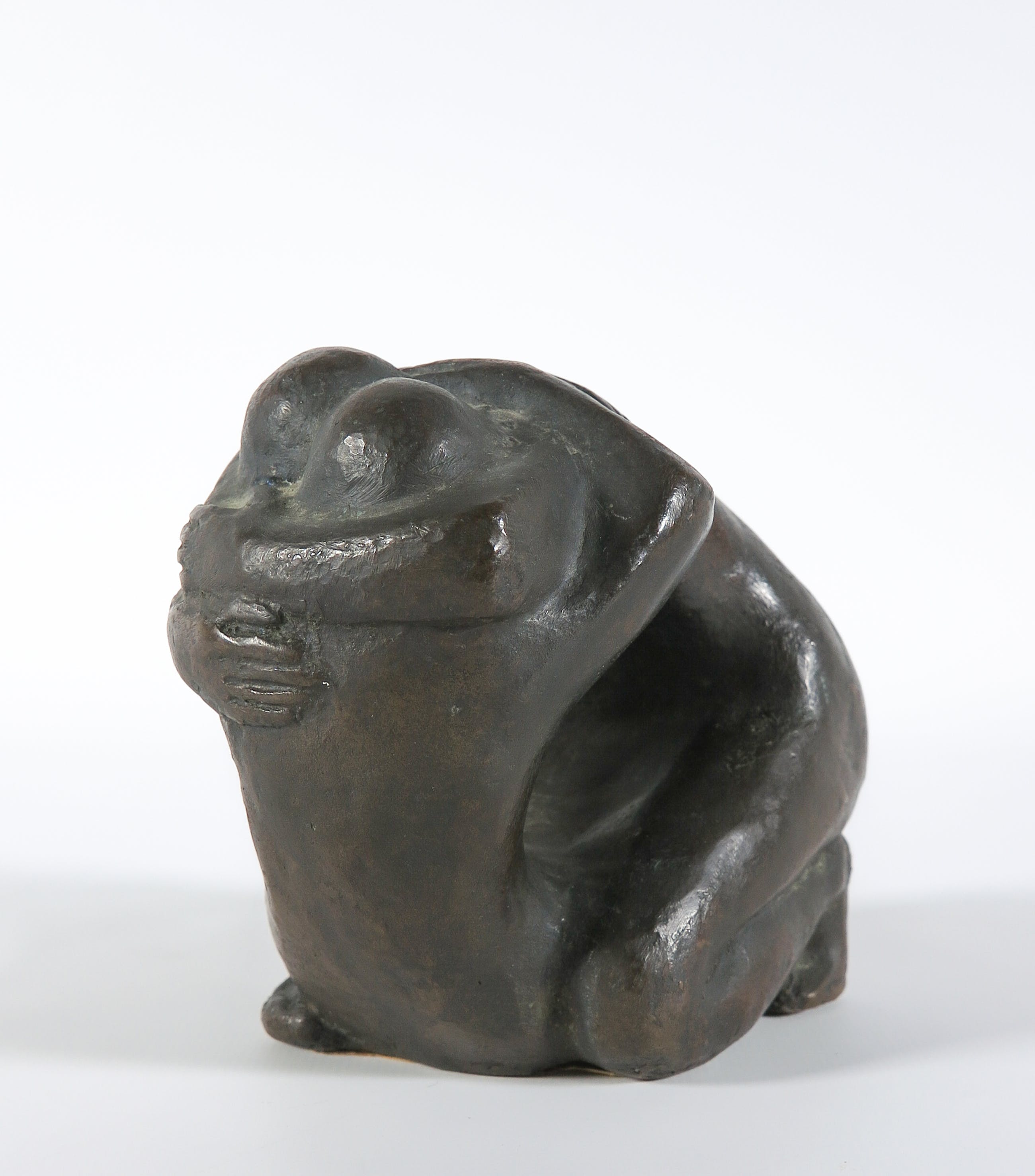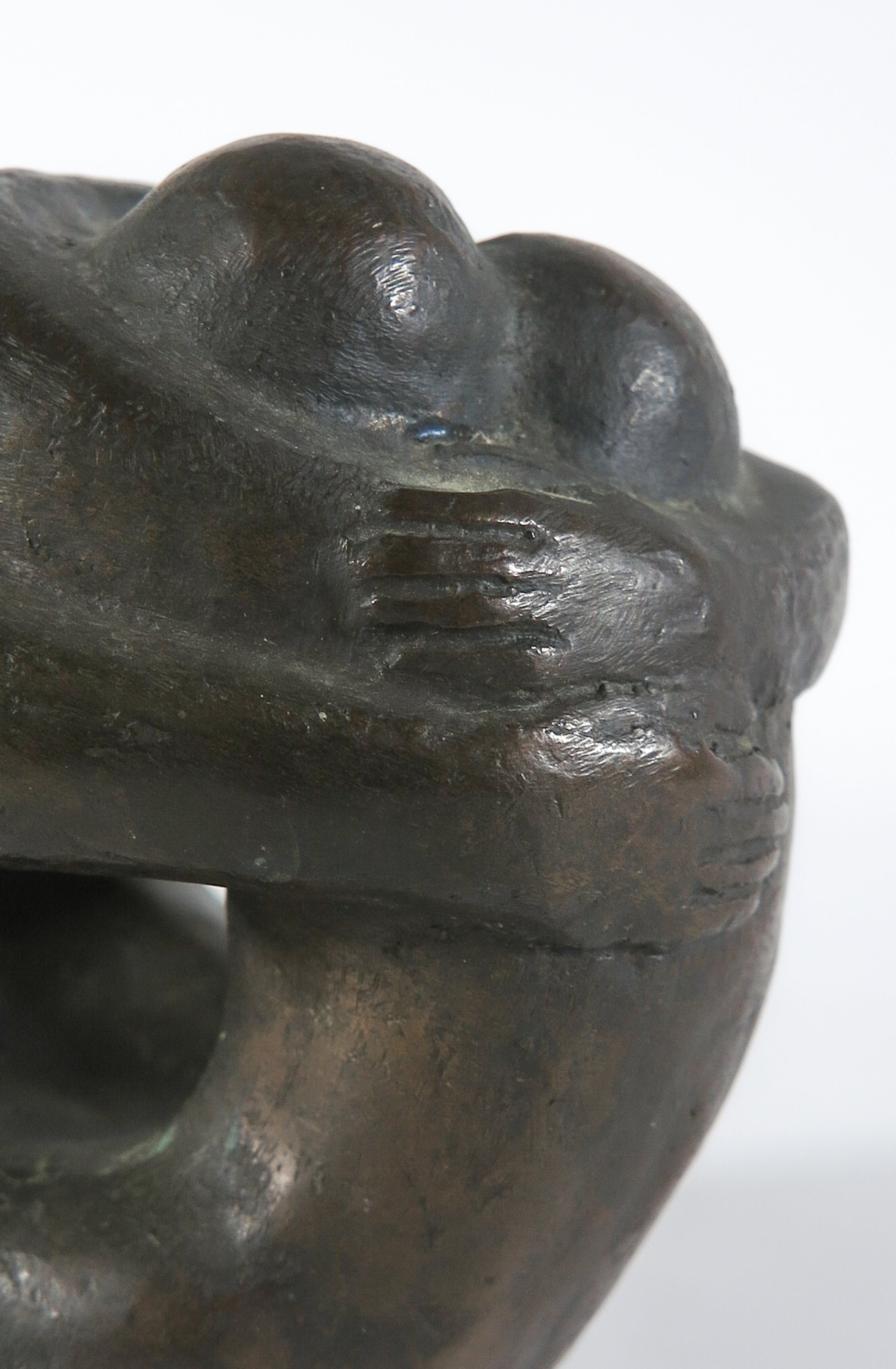 Mooie gesloten doch open voorstelling in brons, getiteld Omhelzing. Aan de onderste gesigneerd met monogram.
