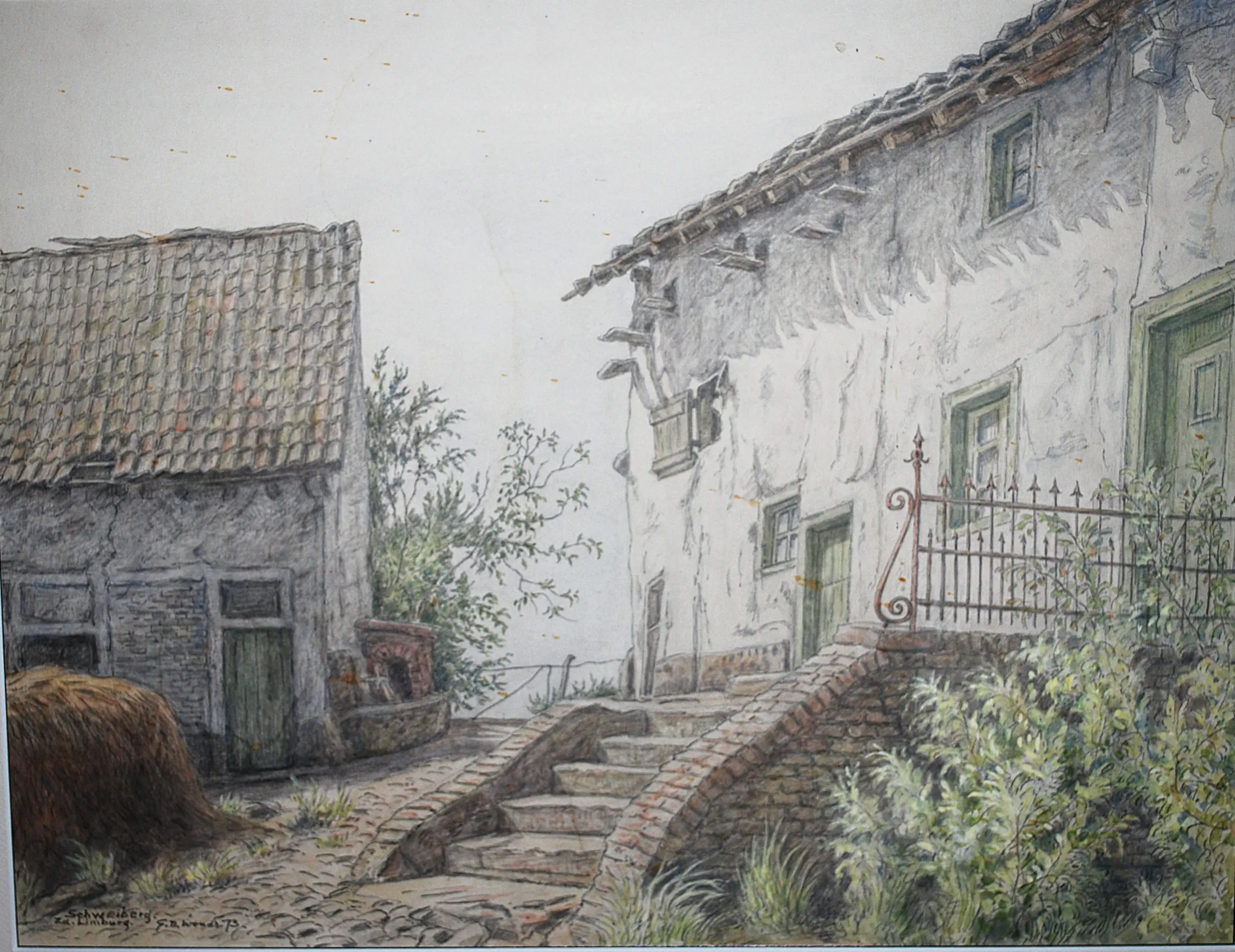 het geheel is in zeer goede gebruikte staat. Het blad heeft her en der aquarelvlekjes (meest oranje) wat tijdens het schilderen zal zijn gebeurd.