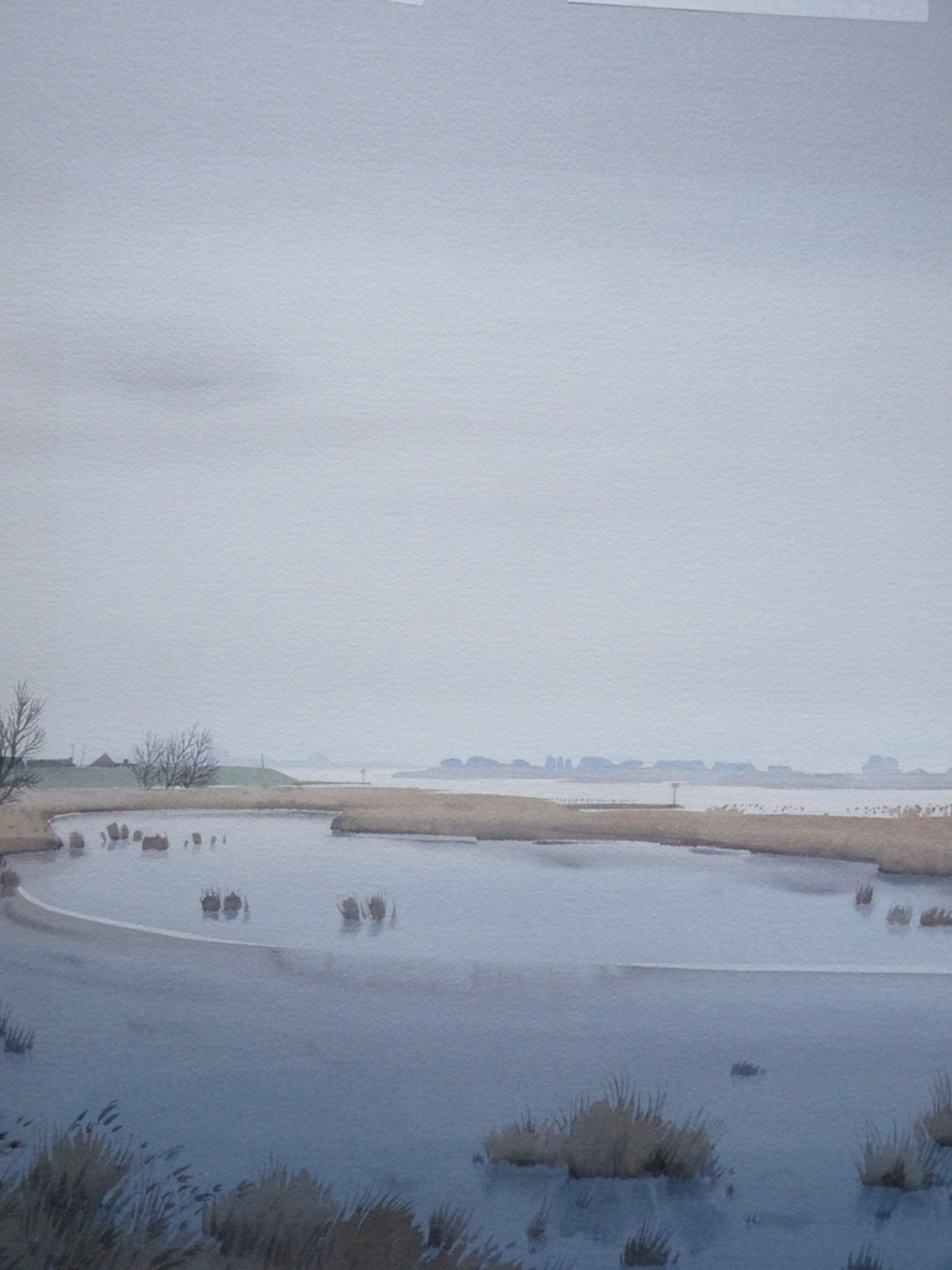 Aquarel vertoont aan linkerkant op 3/4 hoogte twee wat donkere vlekken. Zo bedoeld of later gekomen?