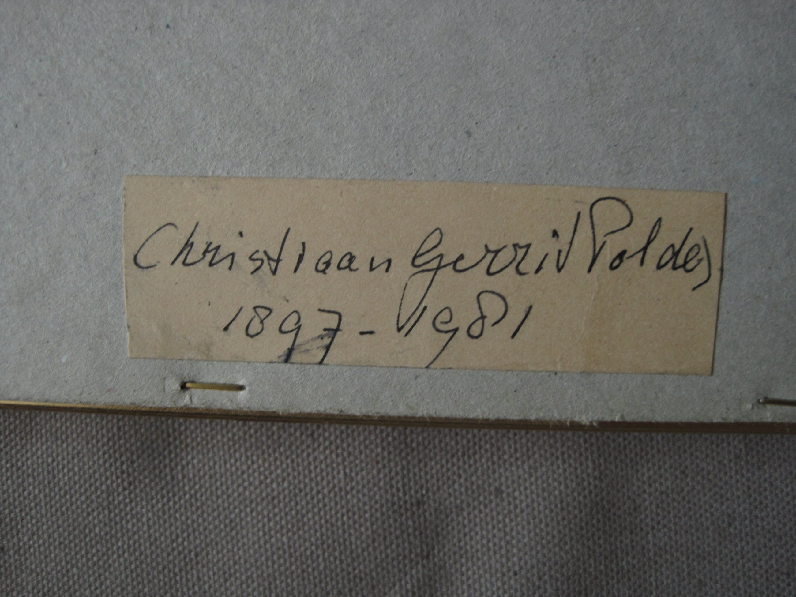 Christiaan Gerrit POLDER (1897-1981). In het werk van Gerrit Polder krijgen de atmosfeer en nuances in licht en donker veel aandacht. In die zin is hij een late Haagse Scholer. Polder woonde en werkte dan ook vrijwel zijn hele leven in Den Haag, waar hij rond 1920 naartoe trok om aan de academie een schildersopleiding te volgen. De stadsgezichten van deze schilder hebben vaak Den Haag als onderwerp, weergegeven in een snelle, impressionistische stijl. Daarnaast omvat het oeuvre van Gerrit Polder stillevens, (polder)landschappen en portretten. Later ook zomerse, Zuid-Franse landschappen en haventjes geschilderd en plein air.