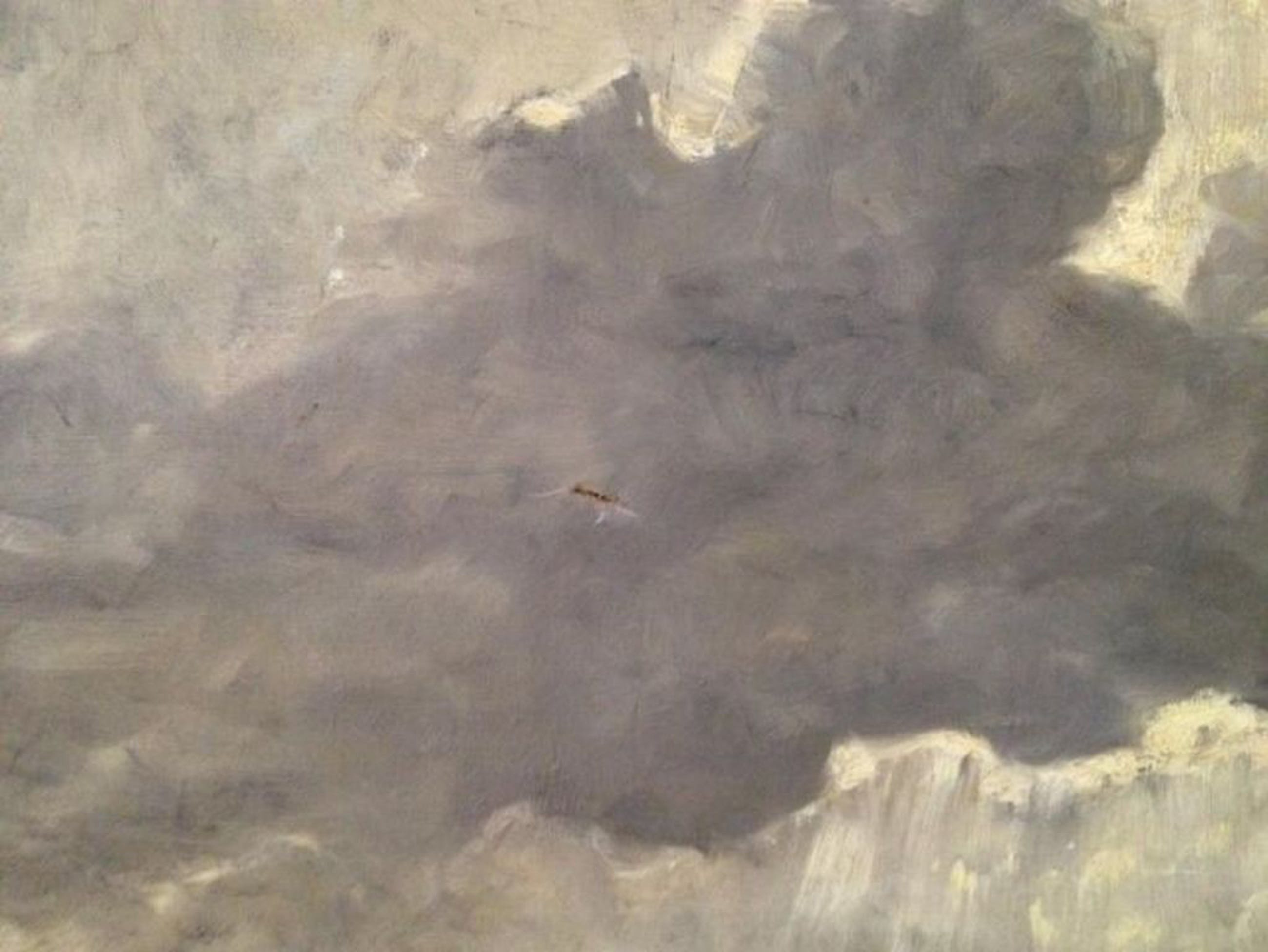 Het doek heeft een kleine beschadiging, zichtbaar in de tweede foto.