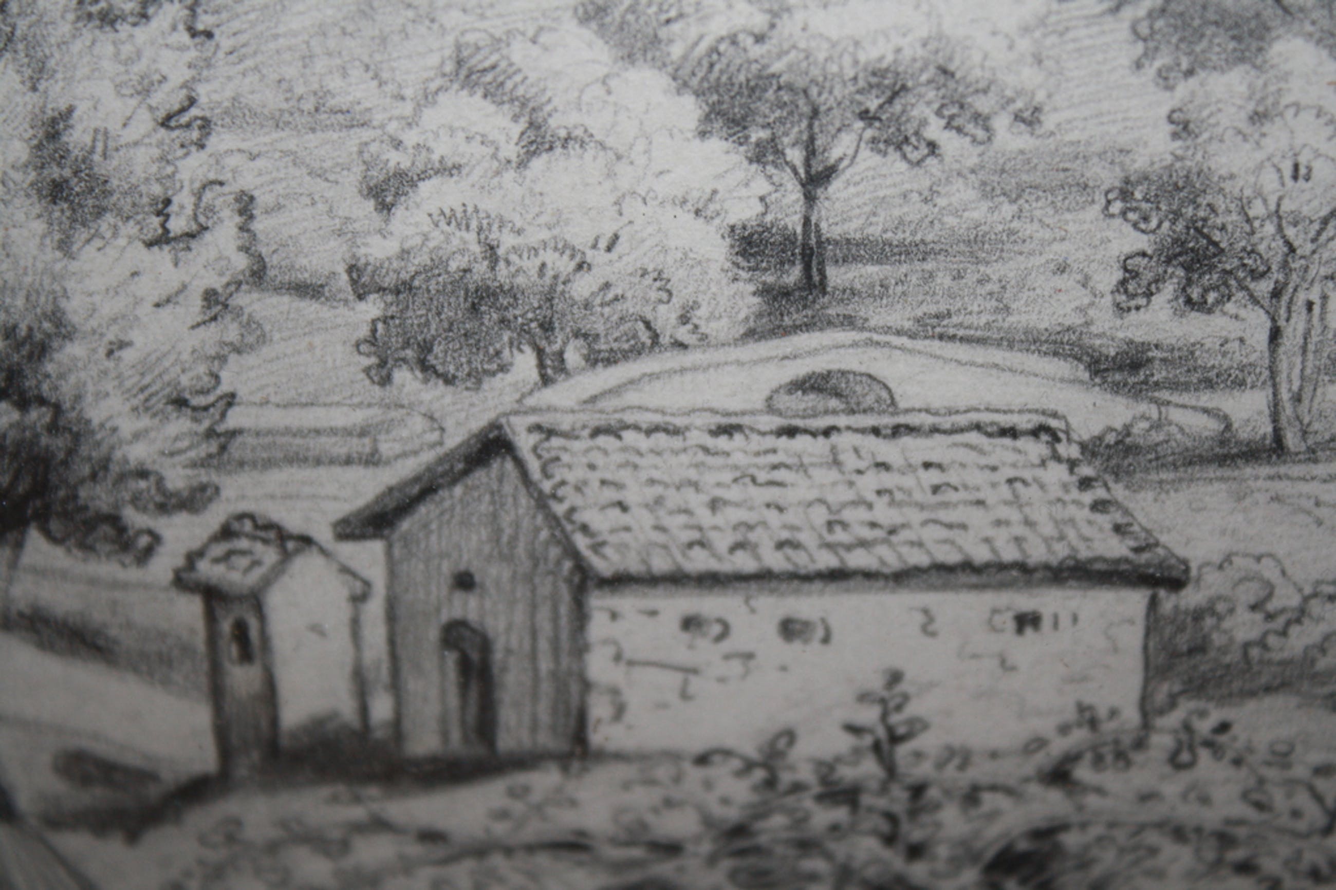 Zeer fraai gelijst in lijst met glas in de maat 30 x 33 cm.