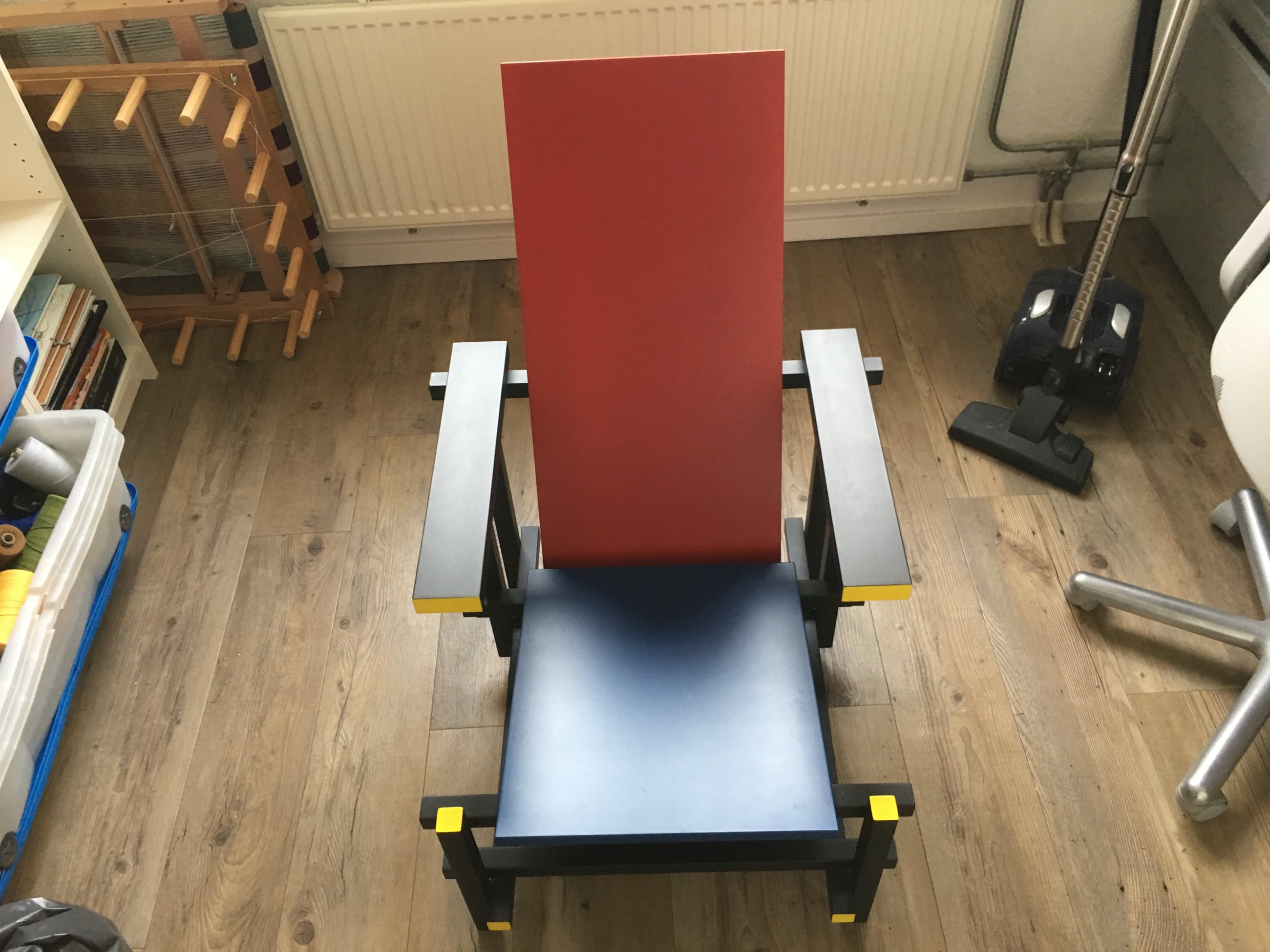 De stoel heeft 2 kleine plekjes aan achterzijde rugleuning. Voor de rest is de stoel nooit gebreukt om op te zitten maar diende als decorstuk in huis (woonkamer)