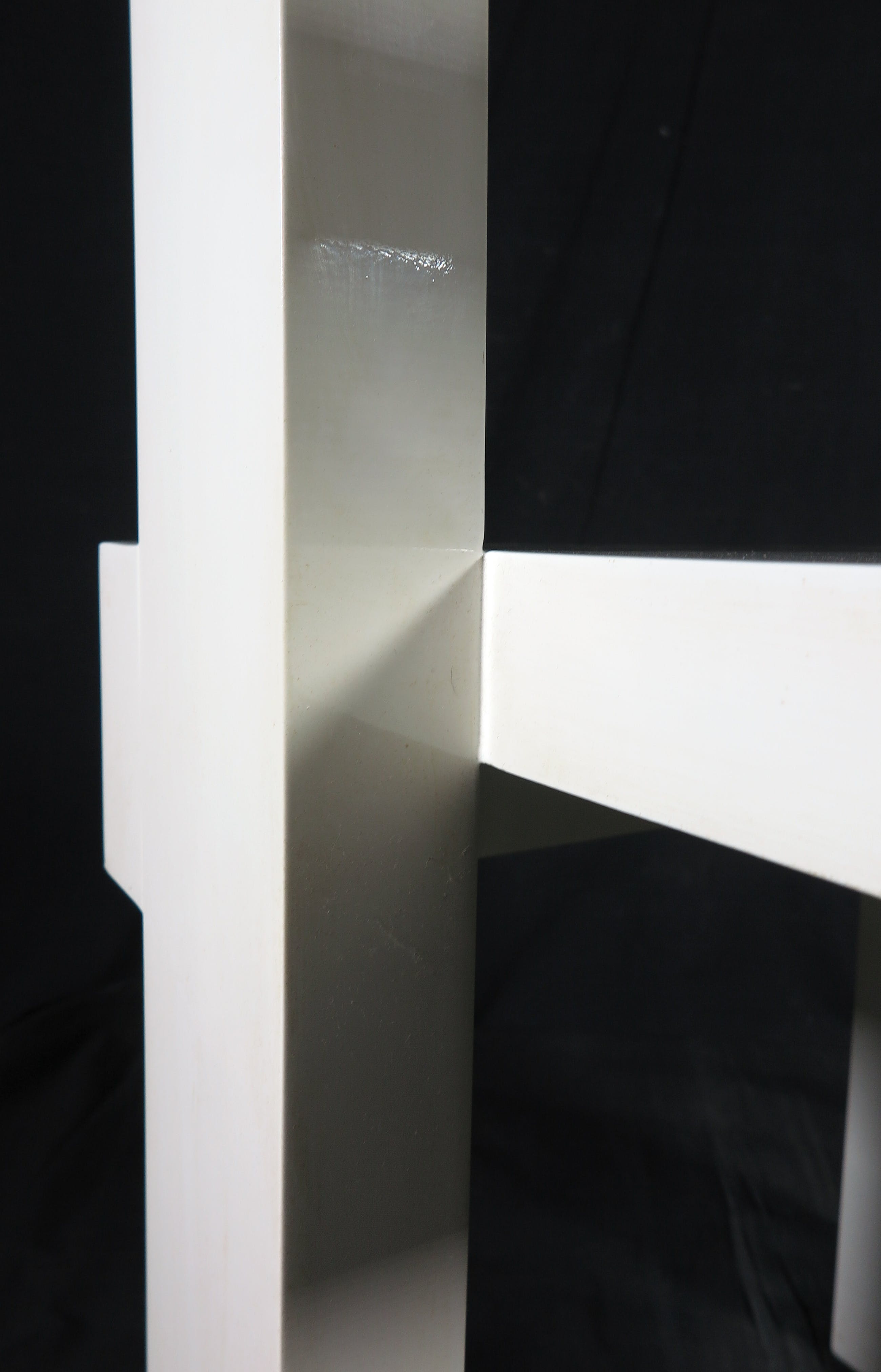Wit gelakte houten stoel, model Steltman, naar een ontwerp van Gerrit Rietveld. Rietveld heeft de stoel in 1963 ontwerpen in opdracht van de juwelier Steltman.