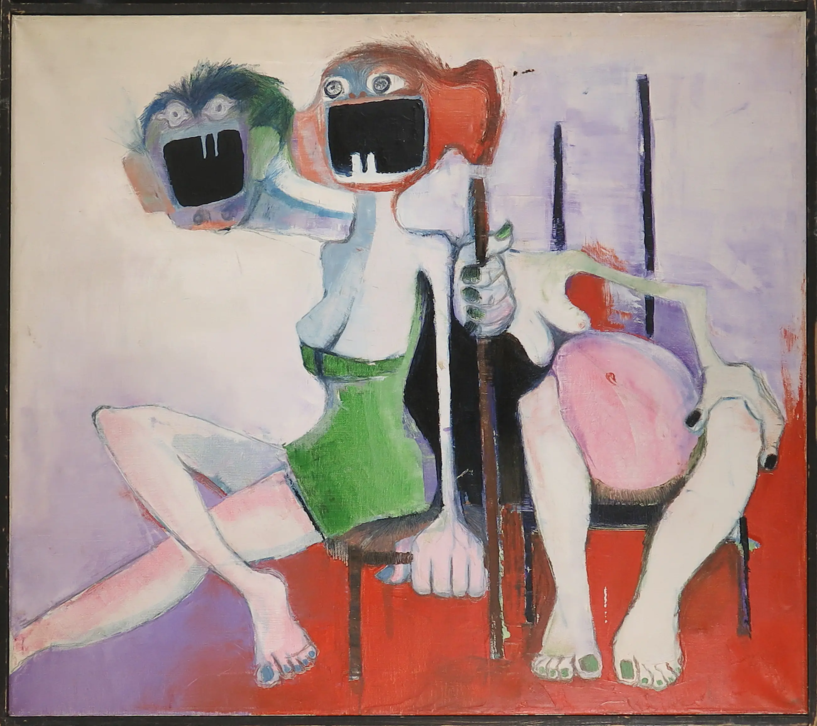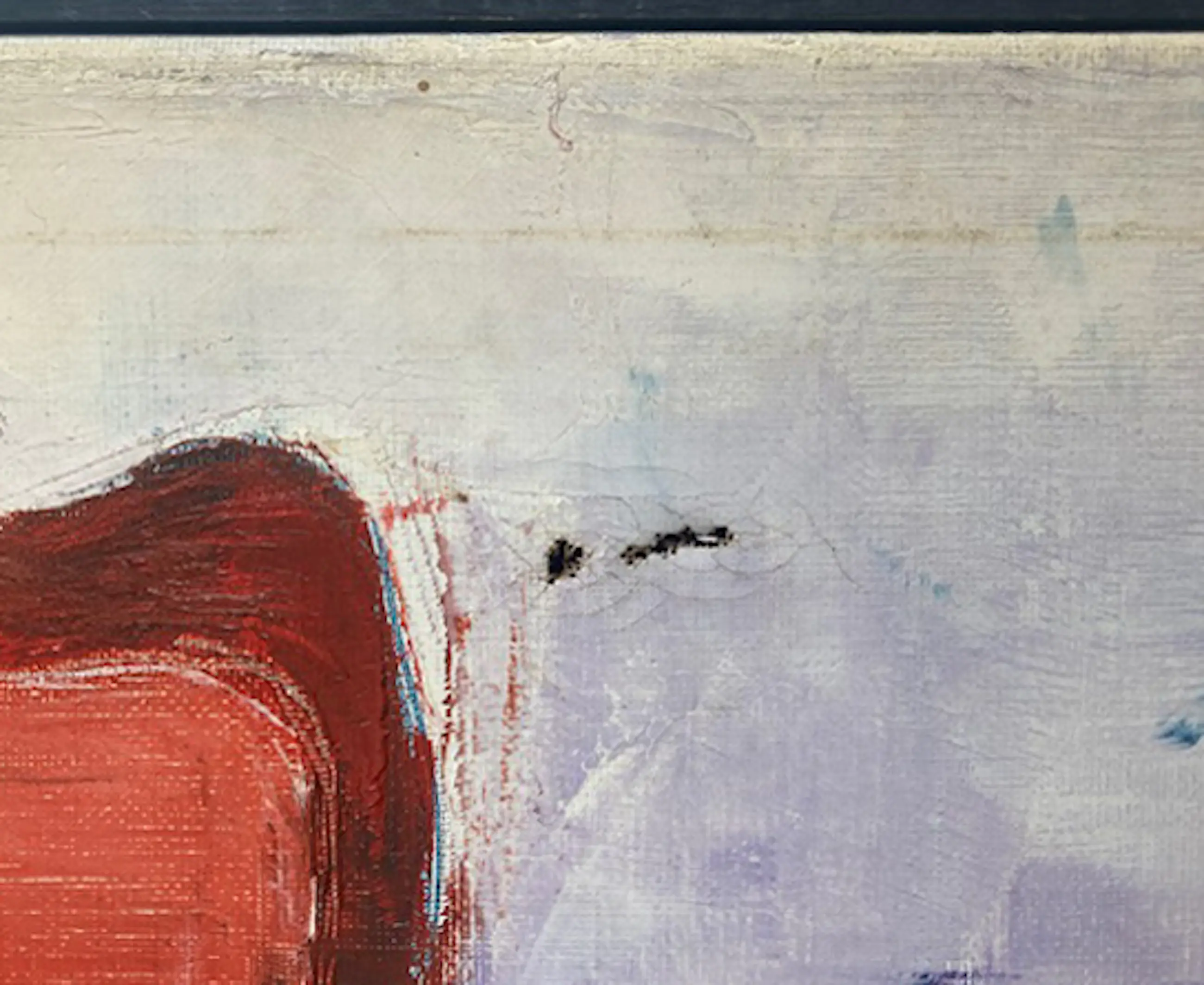 | Er zitten twee gaten in het doek, zoals is te zien op de detailfoto's. Verder wat vergeling, craquelé en vlekjes te zien. | |