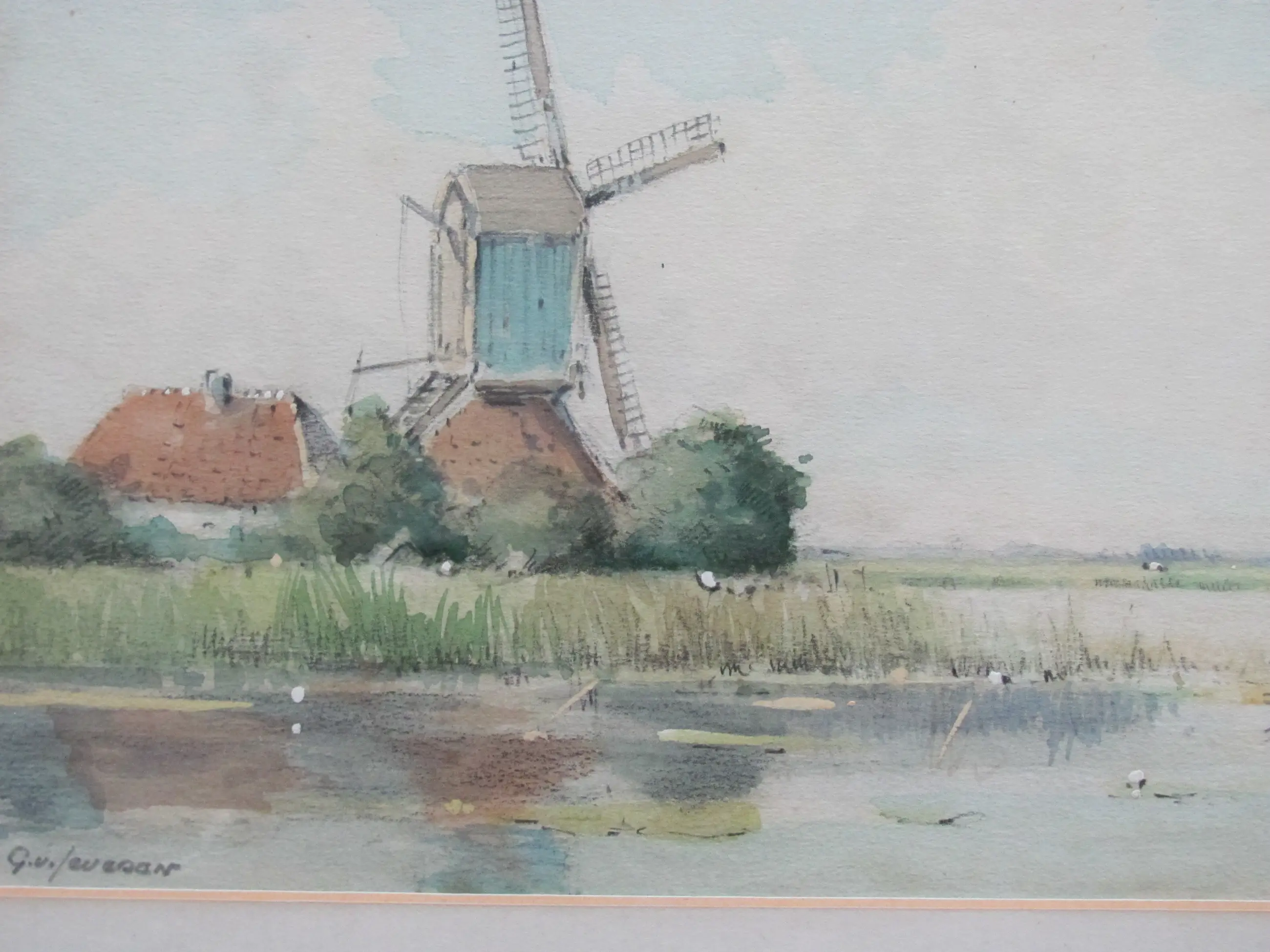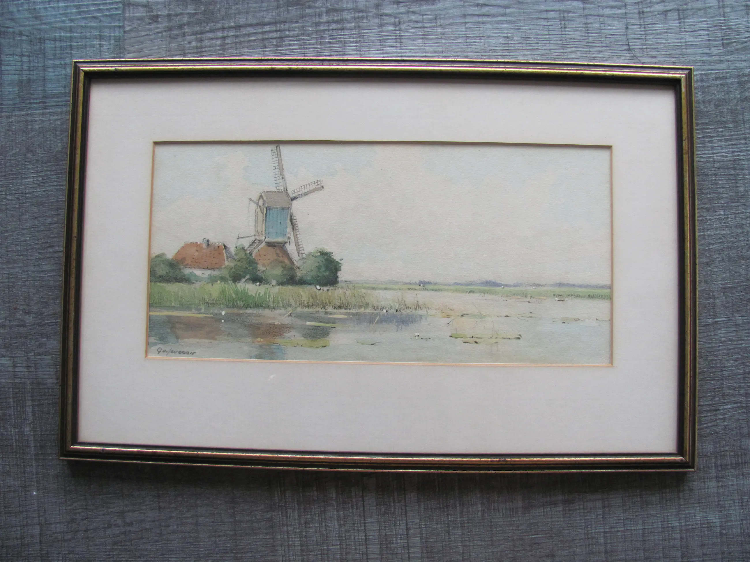 Aquarel van Gerrit van Jeveren. Linksonder gesigneerd.
