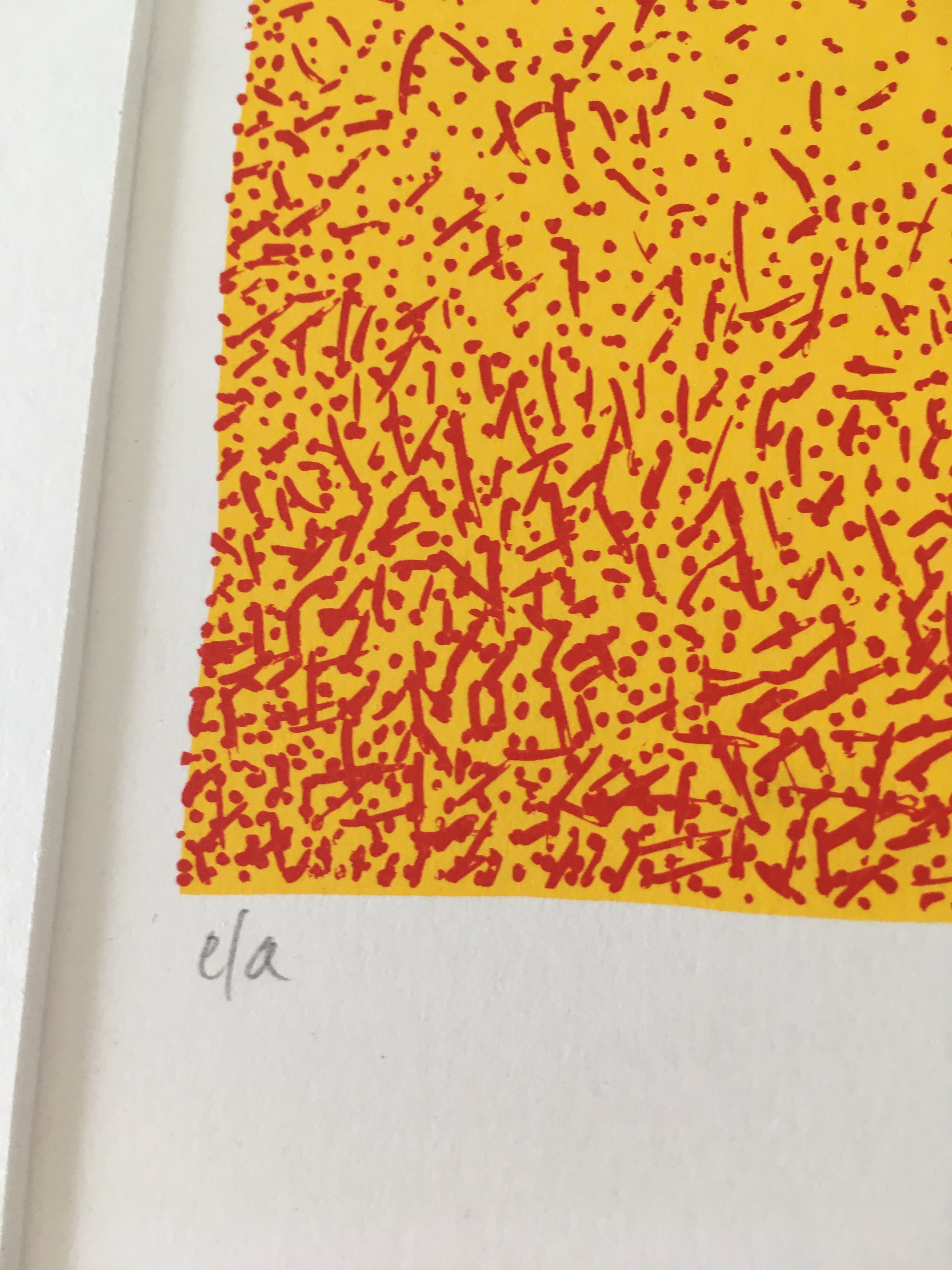 Mooie strakke kleurenzeefdruk met passe-partout. Met l.o.e/a en r.o.Gerrit Westerveld ‘87.