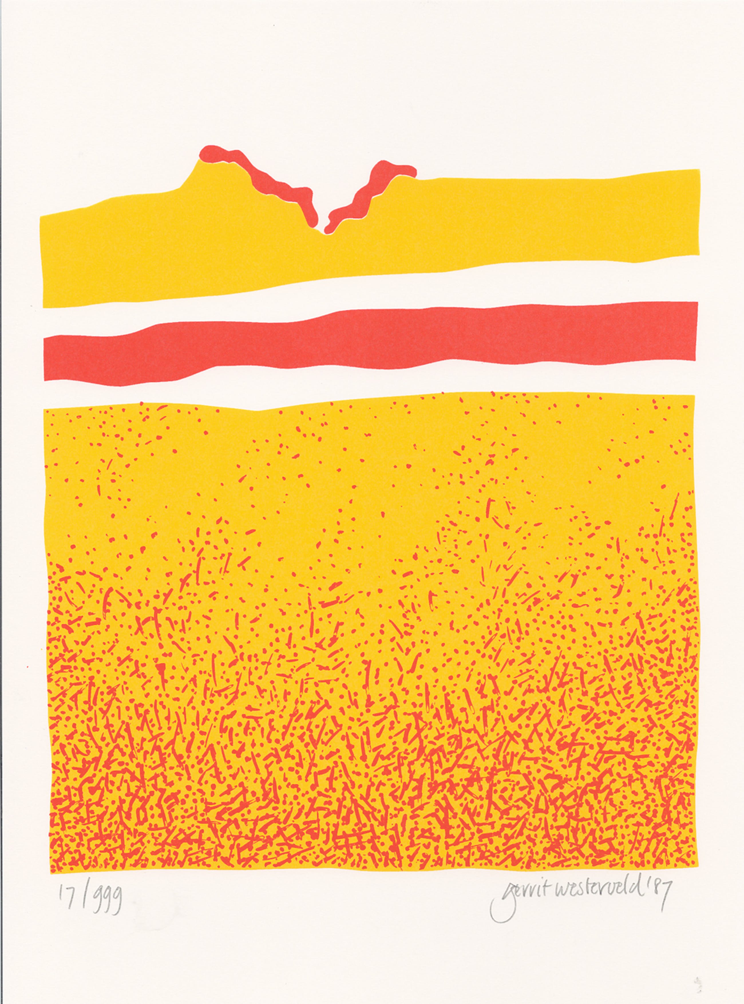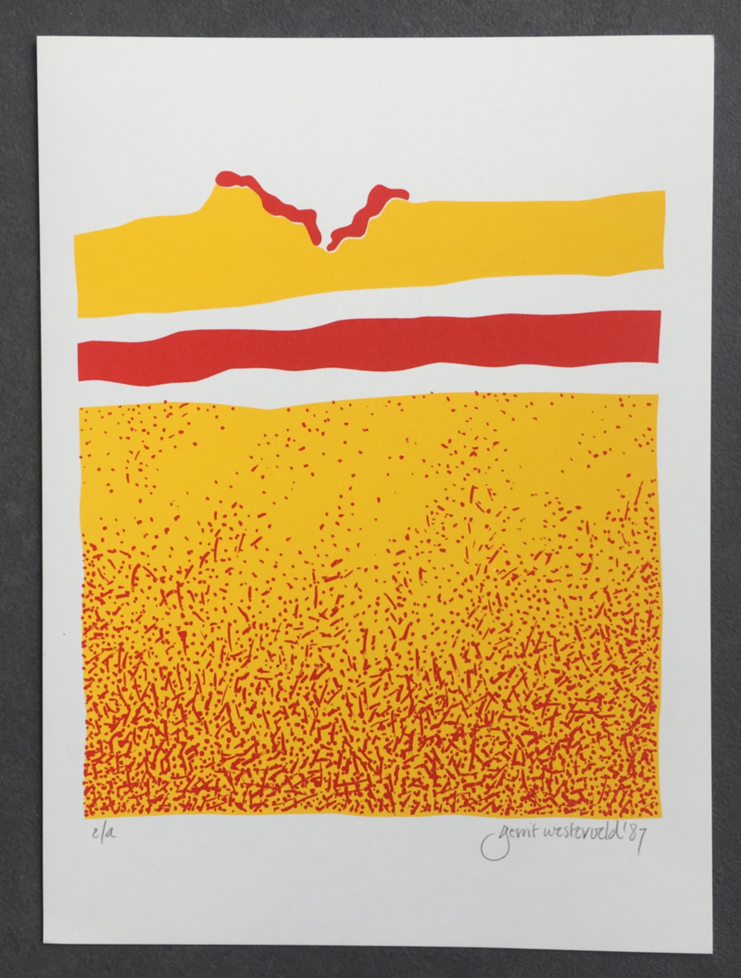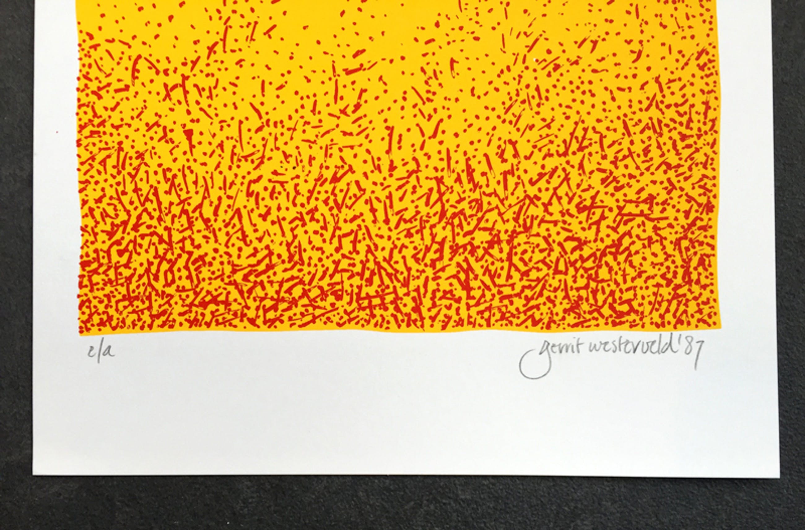 • Zeefdruk is door meesterzeefdrukker Wout van der Vet met de hand gedrukt