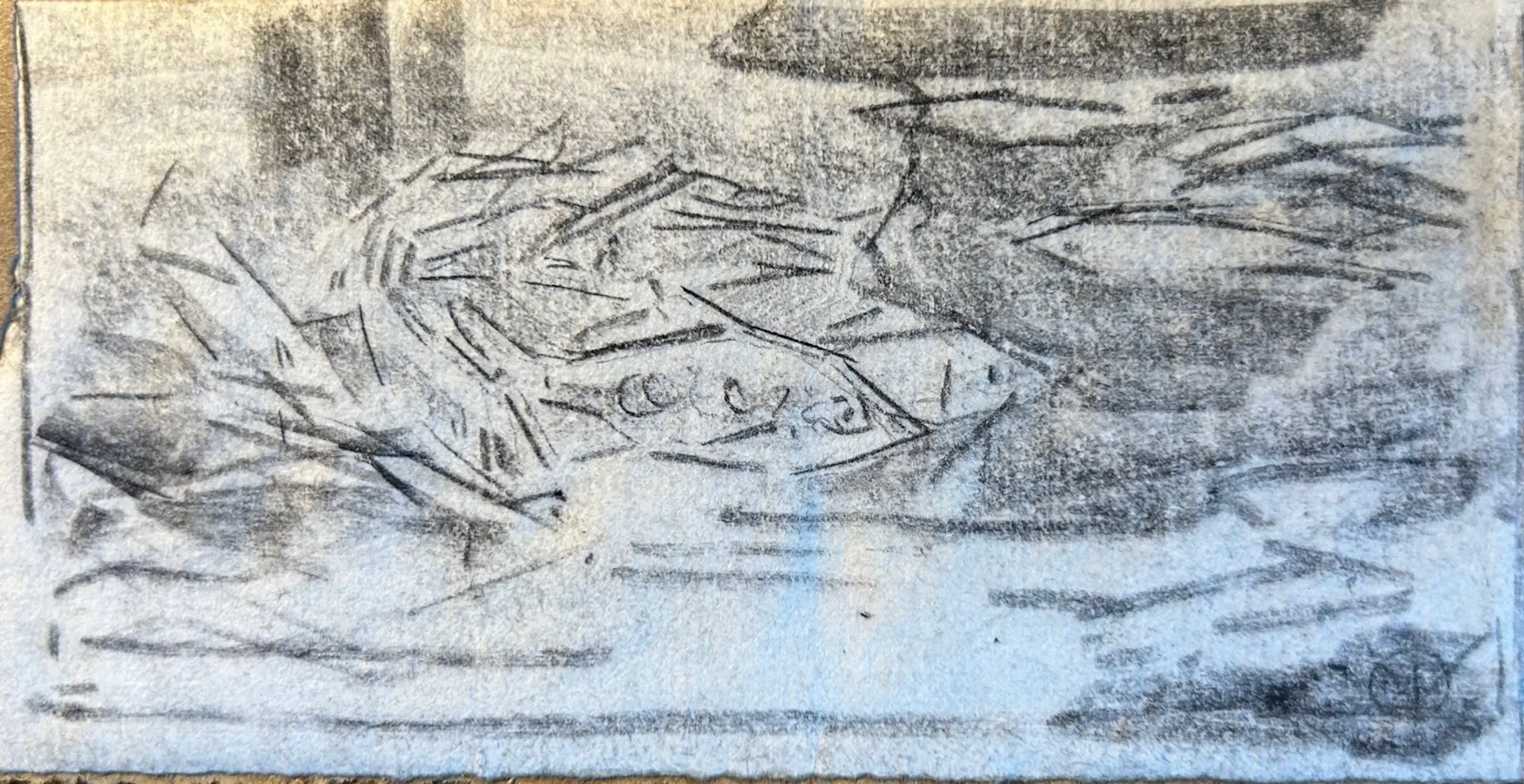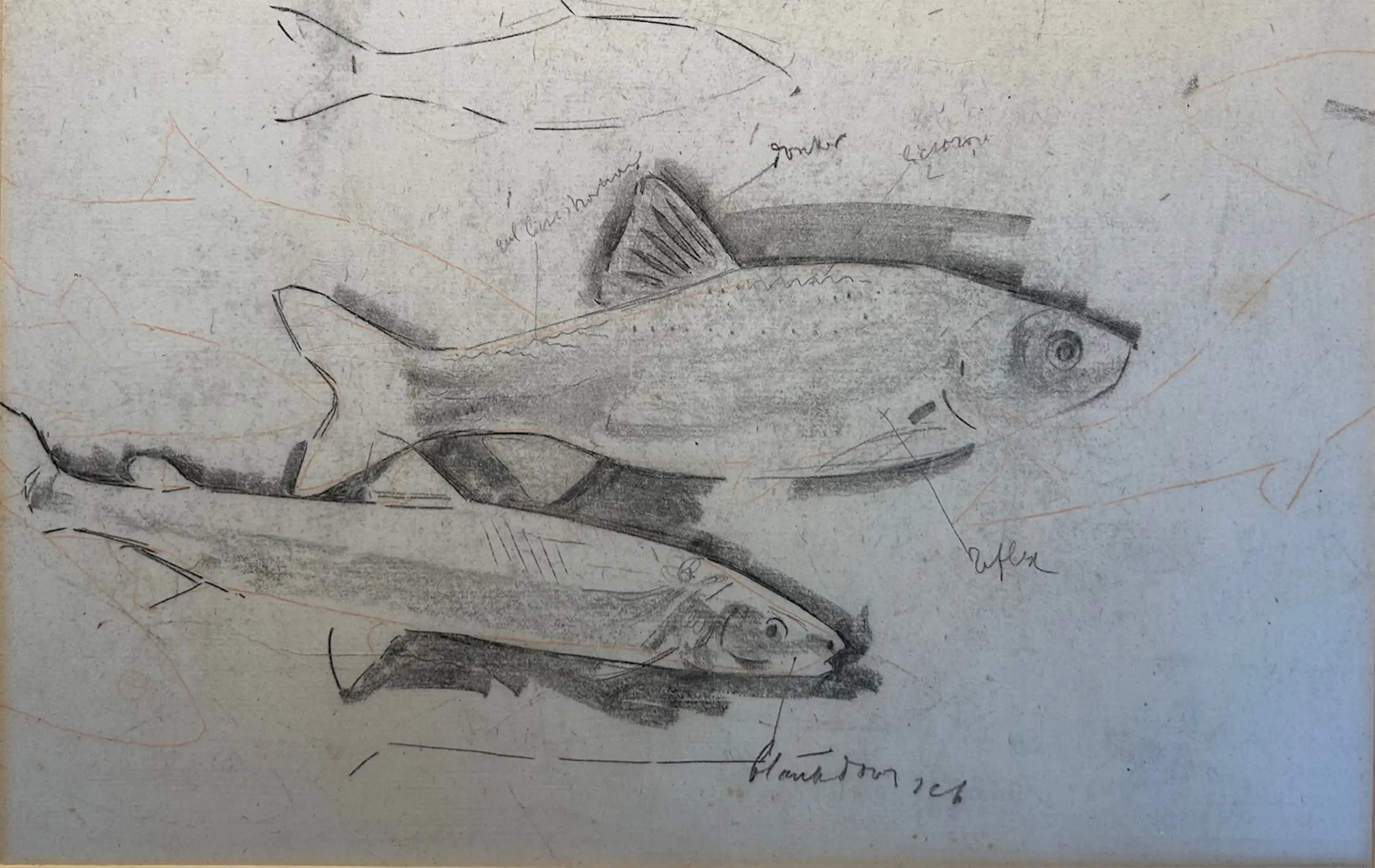 Niet gesigneerd, maar met al de vissen onmiskenbaar Dijsselhof. Op de achterzijde staat telkens in potlood G.W. Dijsselhof 1910. Respectievelijk: (1) Vissen. Zwart en rood potlood. 26,5 cm hoog, 29 cm breed. Papier op karton in passepartout (2) Visjes. Zwart potlood. 6cm hoog, 11.5 cm breed. Papier op karton (3) Onderwaterlandschap. 12,5 cm hoog, 18 cm breed. Papier
