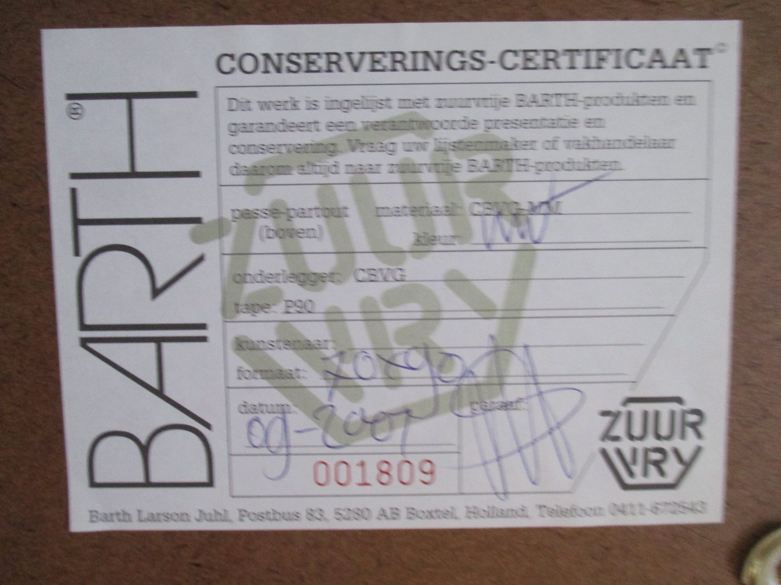 Stevin)' in potlood. Professioneel zuurvrij ingelijst achter passe-partout en glas in een Barth lijst. Het geheel verkeert in perfecte staat, afgezien van een miniscuul chipje in het glas, zie foto 3 en 4