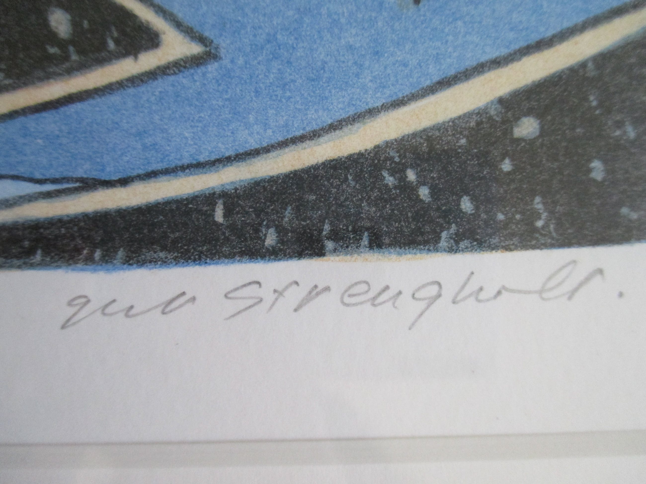 Grote litho van Gert Strengholt, gesigneerd, genummerd en getiteld 'Stercktenbouwing (door S.