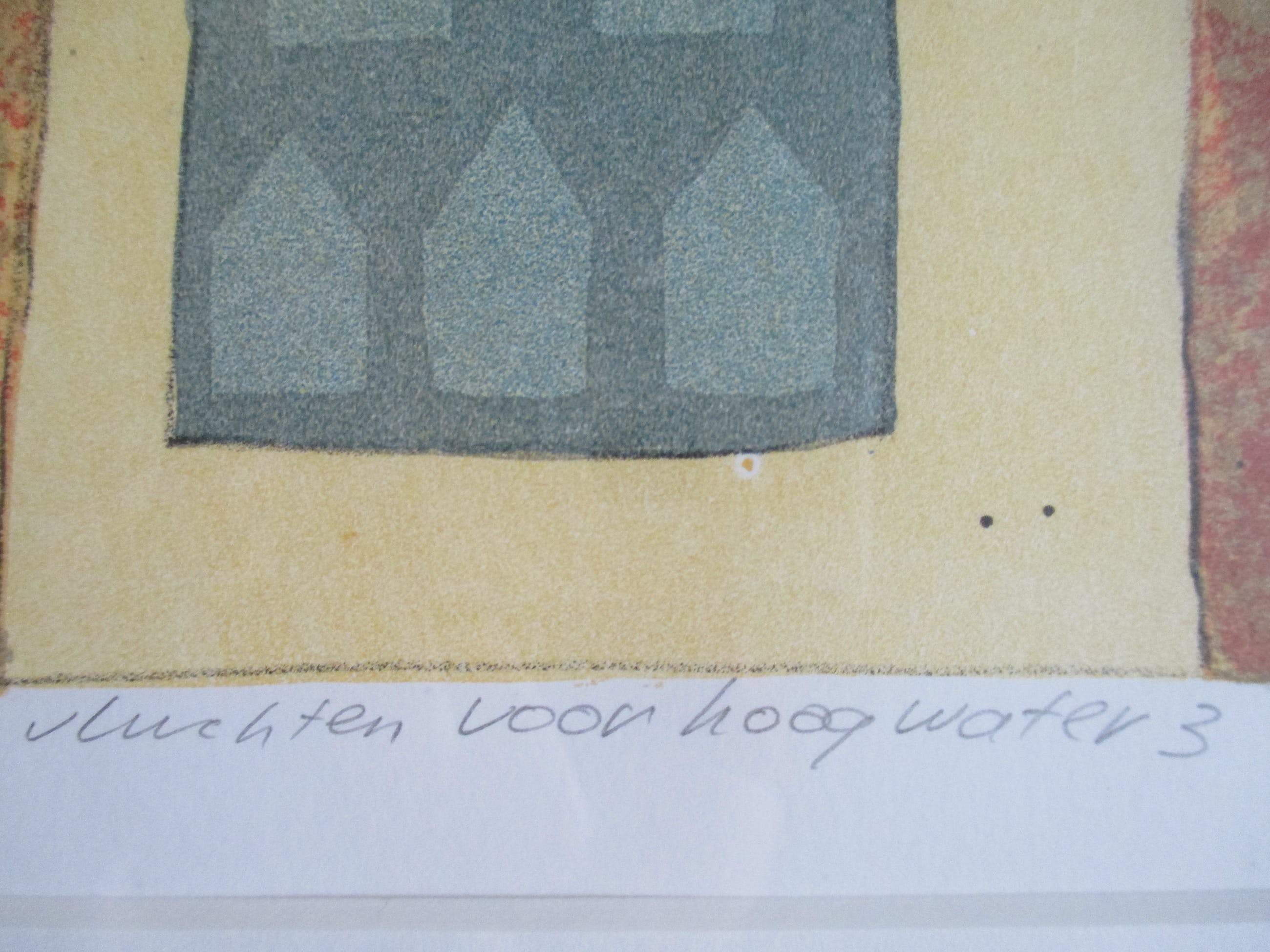 Litho van gert Strengholt getiteld 'Vluchten voor hoogwater 3'. Mooi professioneel zuurvrij ingelijst achter glas in een Barth lijst. In perfecte staat.