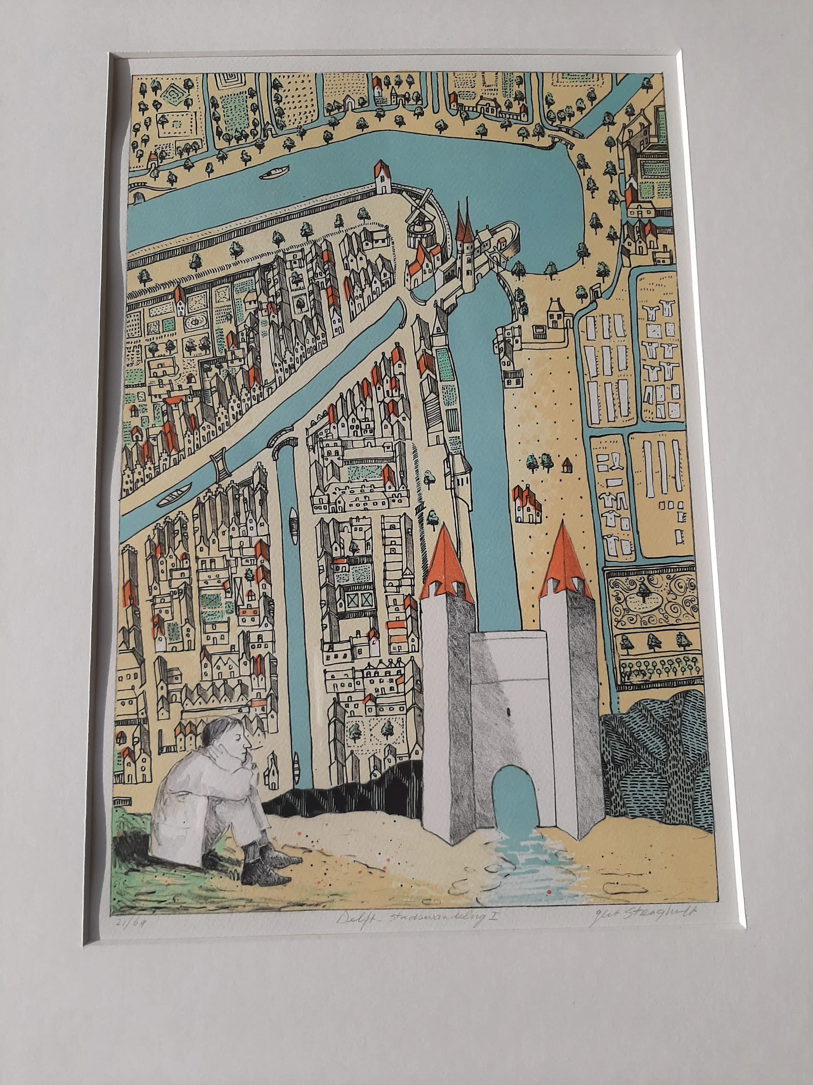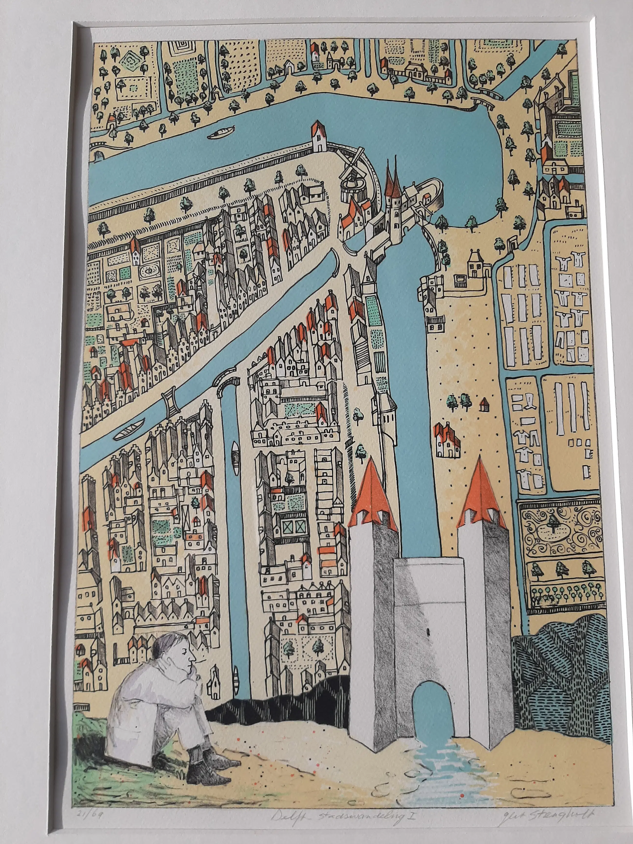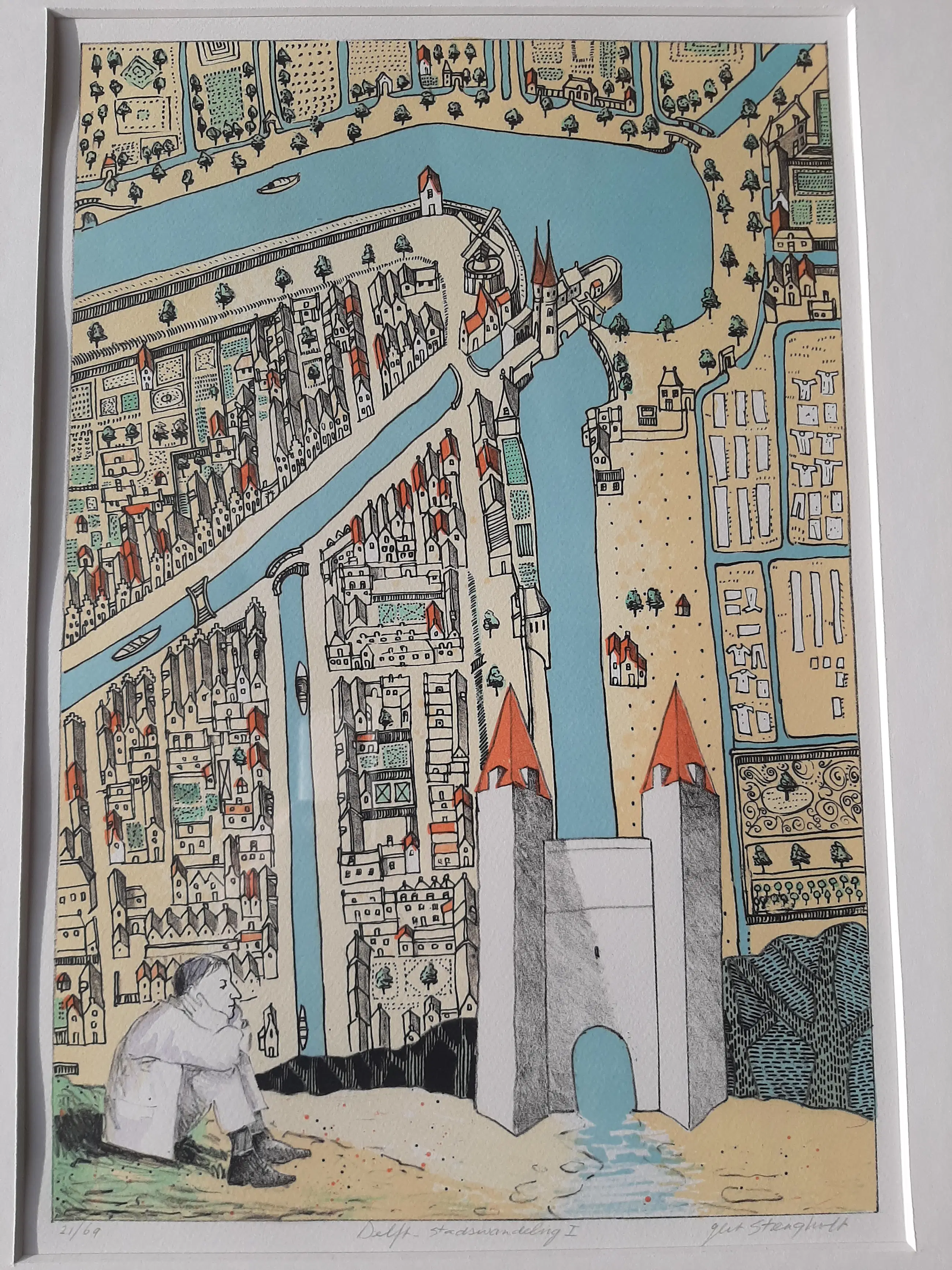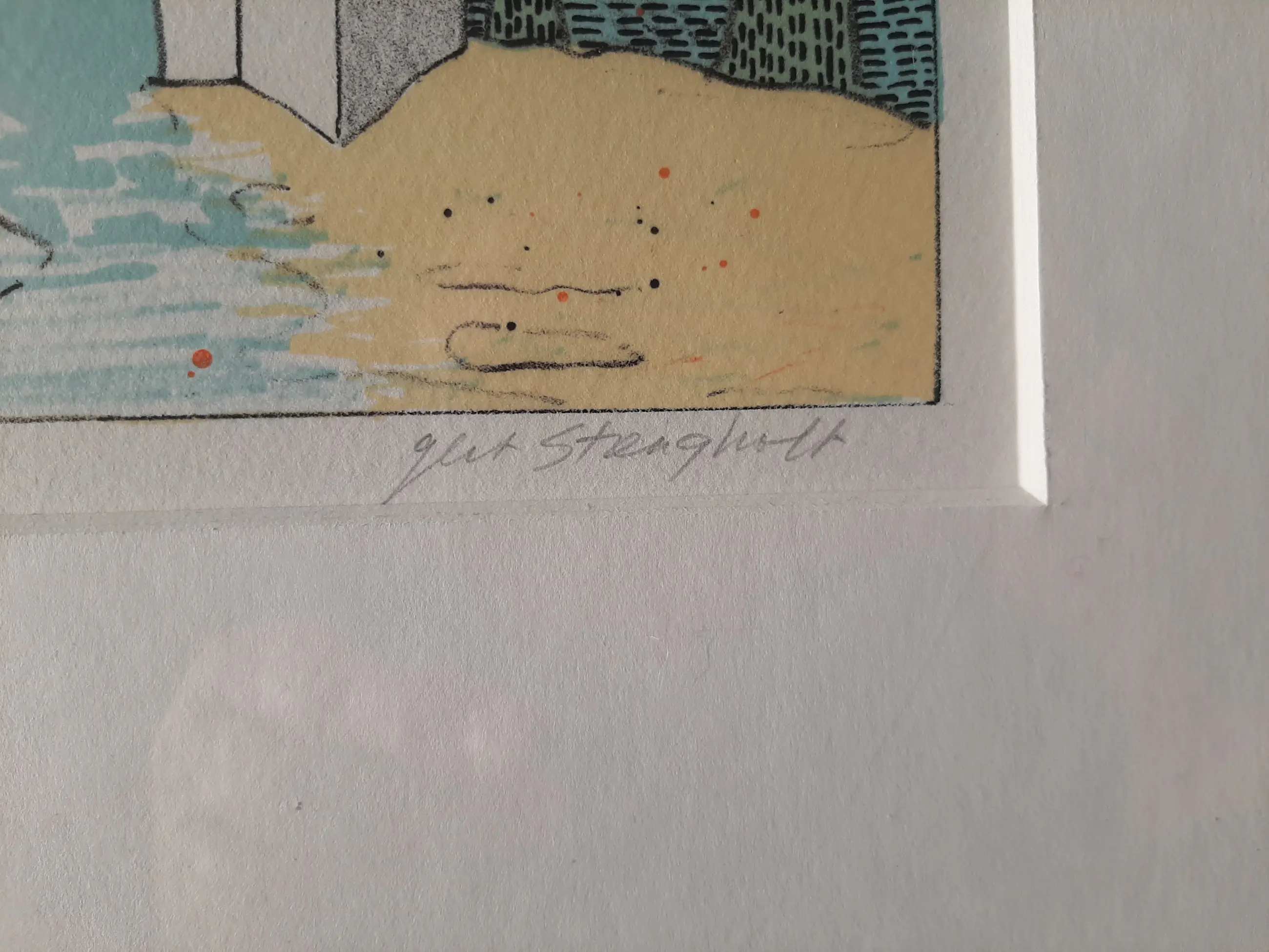 Gert Strengholt heeft zijn opleiding genoten aan de Academie voor Beeldende Kunsten te Utrecht (afdeling Monumentaal en Lithografie). Hij is bekend geworden door zijn litho's met figuratieve inslag. Het verhaal in de afbeeldingen is sprookjesachtig, en kenmerkt zich door een combinatie van architecturale tekens en andere symbolen, zoals die van hond, konijn, vogel, vis, water, lucht, etc. De composities zijn overzichtelijk en kleurrijk. In het grafische werk van Gert Strengholt is de aarde een mythische component, evenals het water, dat geldt als bron van alle levensvormen .Gert Strengholt maakt mysterieuze litho's met een combinatie van nauwkeurig afgebeelde en niet herkenbare abstracte vormen. Hij zoekt in zijn prenten een evenwicht tussen kleur en compositie. Hij speelt met de zwaartekracht. Zo laat hij dingen zweven die dit eigenlijk niet kunnen, en plaatst hij verschillende vlakken voor elkaar zodat de ruimte een vreemde vorm krijgt. De aarde met al haar verschillende levensvormen en de rol die de mens daarin speelt, is het hoofdthema dat in allerlei vormen terugkeert in zijn werk. Hij creëert een wereld waarin je binnentreedt wanneer je naar het werk kijkt. De mystieke component heeft hij overgenomen in zijn schilderijen. Het meer recente werk schuift meer op in de richting van alledaagse levenstaferelen, zoals we die kunnen aantreffen buitenshuis, bijvoorbeeld op de markt, of binnenshuis bij het samentreffen van familie. Met deze verschuiving zien we ook een verandering van stijl, van geabstraheerd figuratief - met een ingehouden, aards palet - naar een kleurrijk en naïeve benadering. Deze laatste stijlcomponent refereert in zekere zin aan een laat-middeleeuwse schilderstijl, die overgaat in de stijl van de schilders uit het vroeg-Renaissance tijdperk. Het is de tijd waarin schilders in het Westen, na lange tijd van Bijbelse motieven schilderen, over konden stappen naar het uitbeelden van wereldse motieven en figuren. Het perspectief was nog niet uitgevonden, zodat de prachtige schoonheid van een min of meer naïeve stijl kon worden bewaard. In de schilderijen van Strengholt vinden we precies deze mix van naïeve schoonheid zonder centraal perspectief en werelds zelfbewustzijn bij de afgebeelde personen, dat begon in de Renaissance. Het heldere kleurgebruik is een andere aanwijzing voor de knipoog van Strengholt naar die tijd van omwentelingen.
