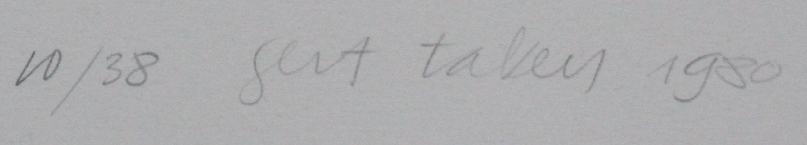 Litho van Gert Taken uit 1980. Nummer: 3/11. Afmetingen blad: H45.5 x b45cm. Afmetingen voorstelling: H30 x b29.5cm. Het werk is middenonder, met potlood, gesigneerd door de kunstenaar. De authenticiteit van het aangeboden werk wordt volledig gegarandeerd. Een certificaat van echtheid kan, op aanvraag, worden gemaild.