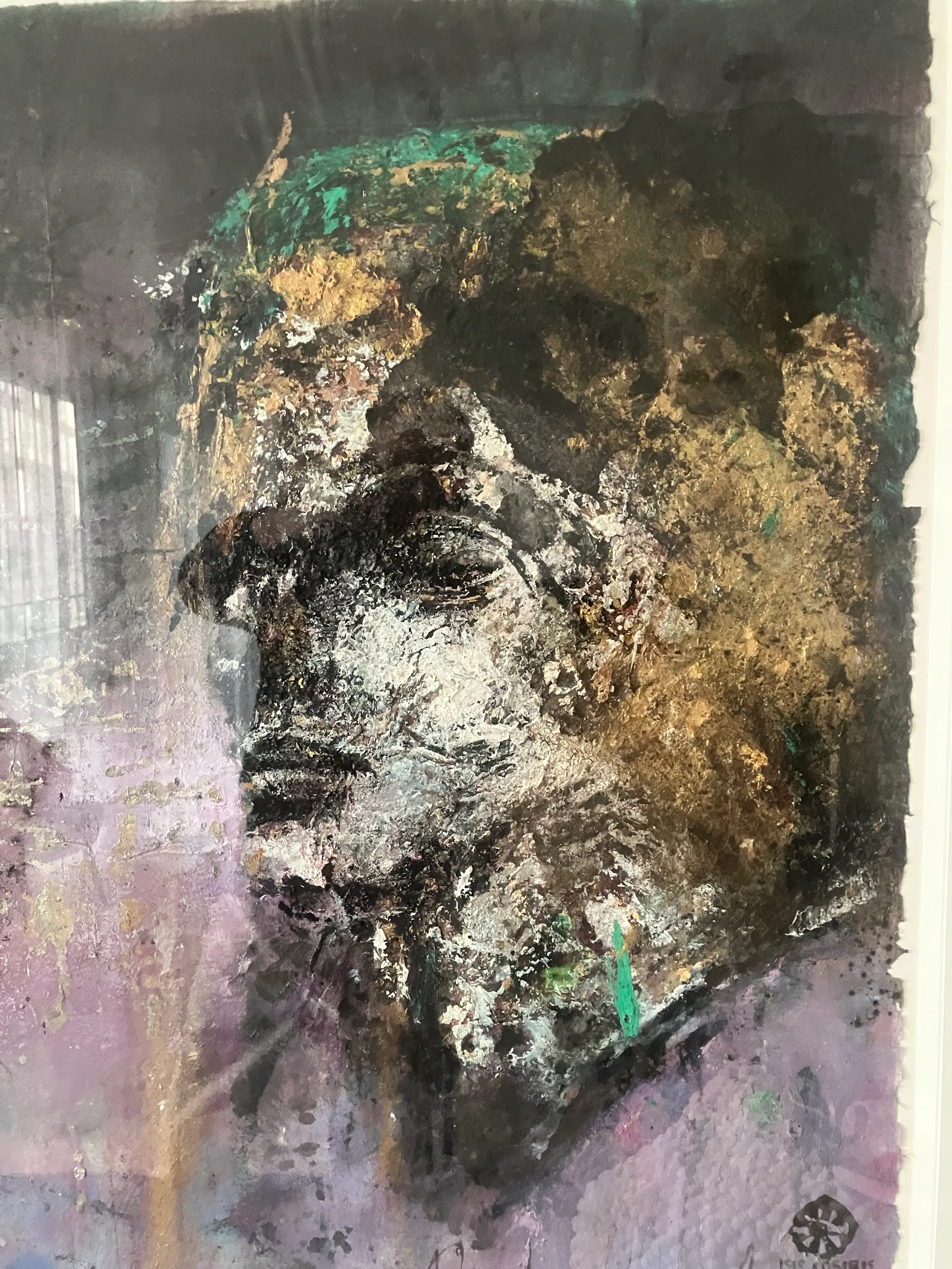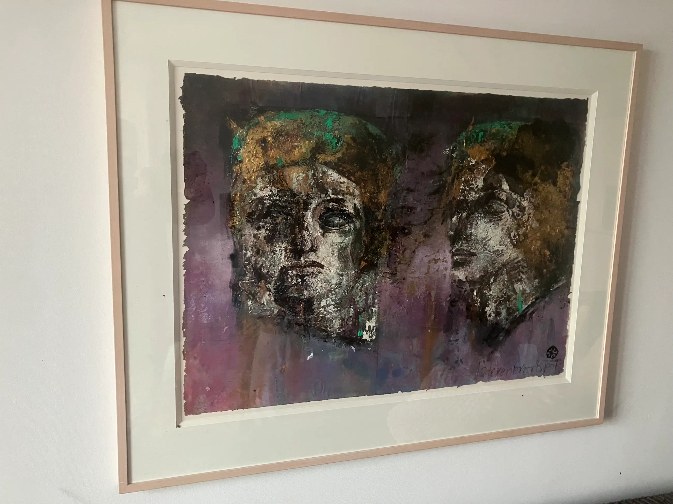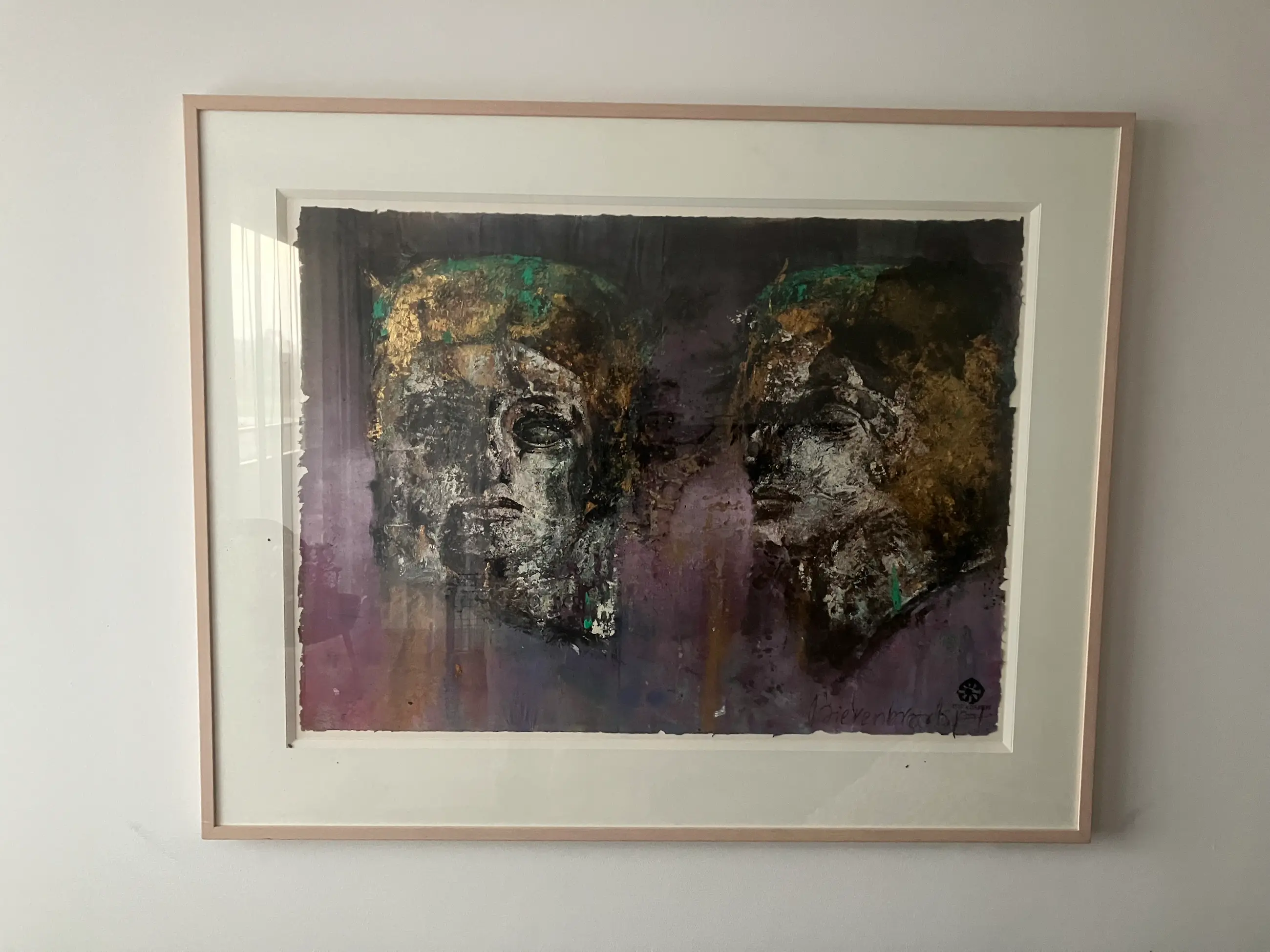 Unicum. Gemengde techniek op rijstpapier. Afmeting: Doek: 72 x 98 cm Lijst: 99 x 123 cm