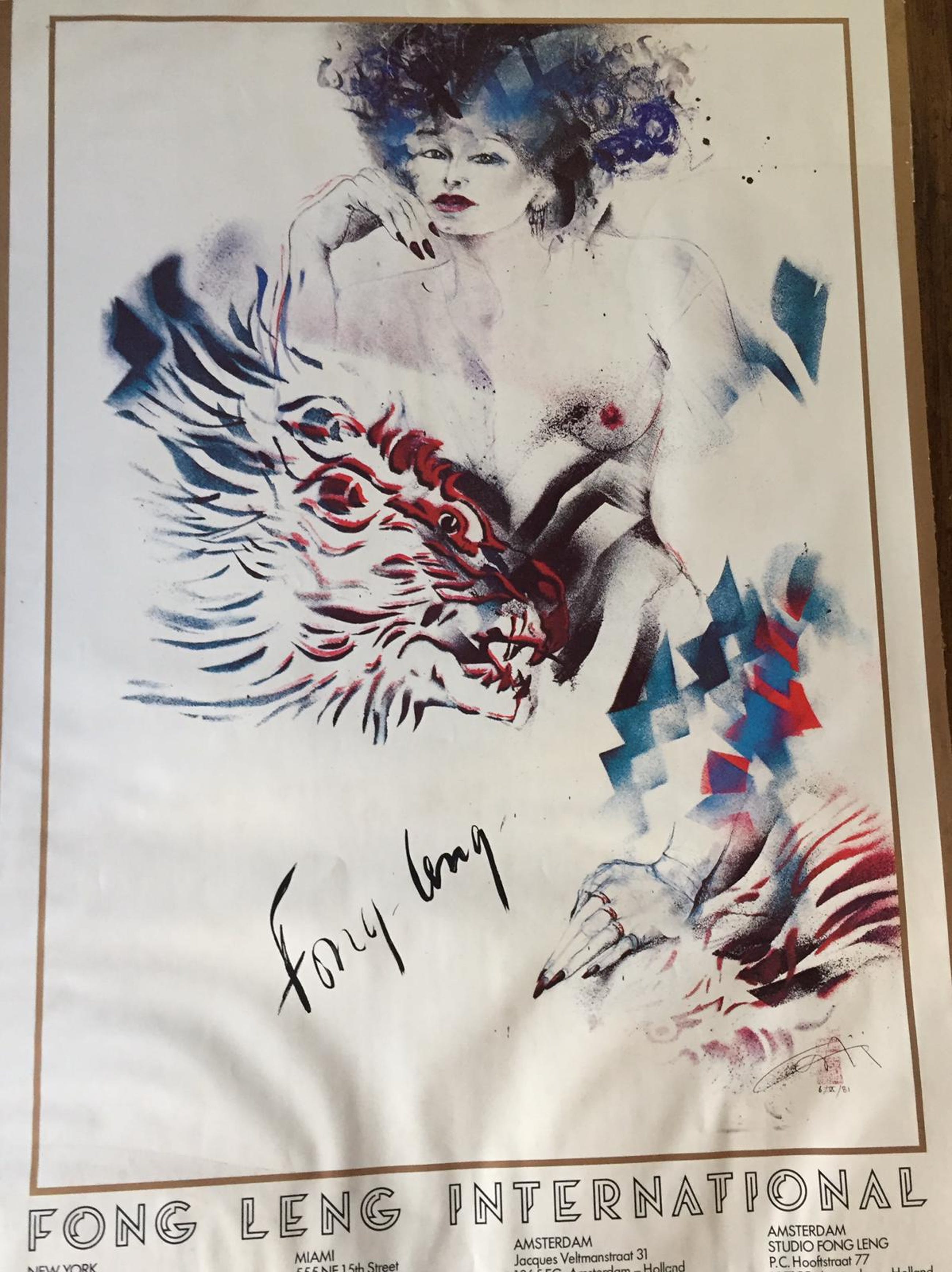 Vintage gesigneerde litho (grafiek) gemaakt door Gerti Bierenbroodspot in samenwerking met mode icoon Fong Leng.