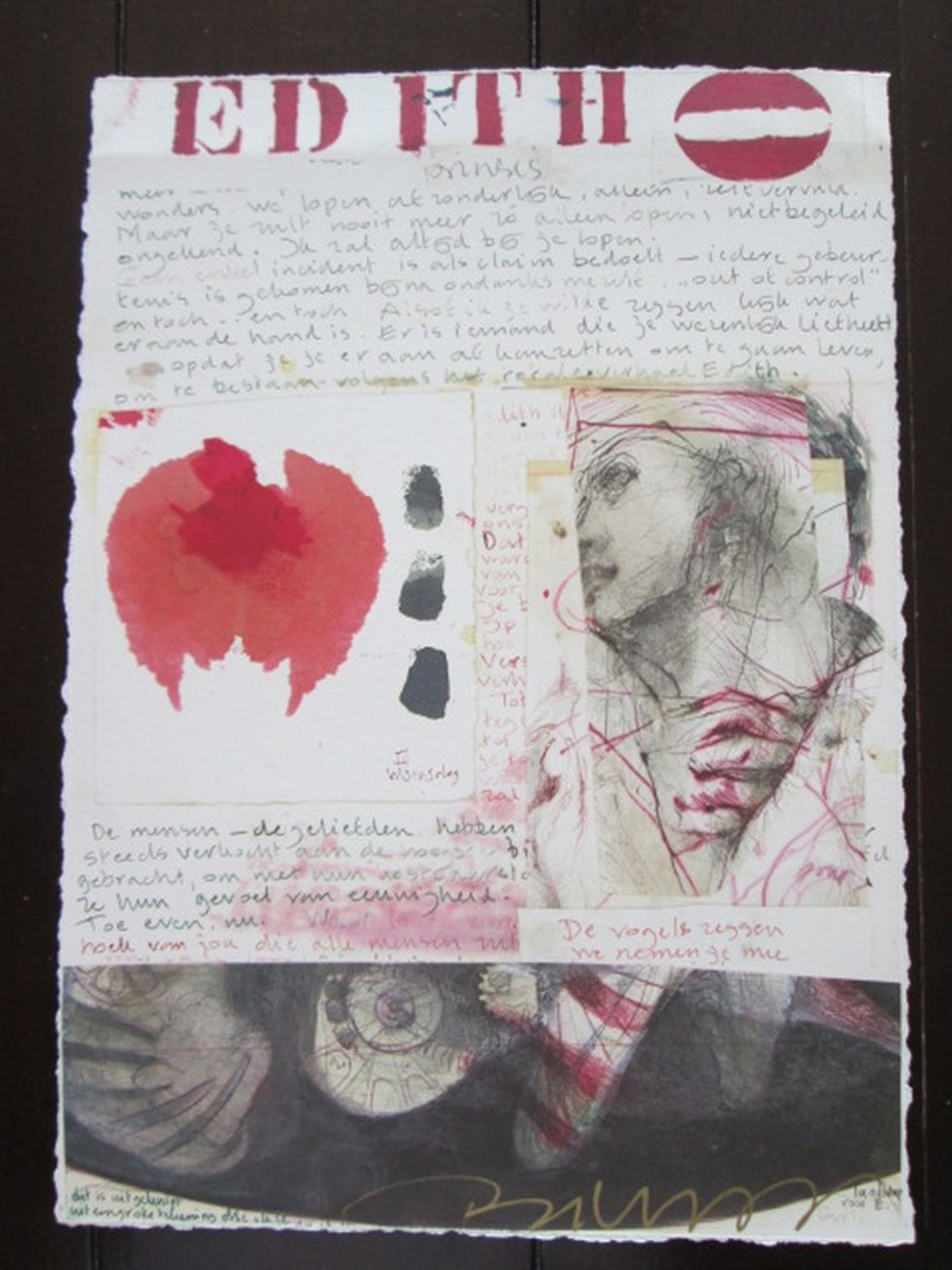 MOOIE LITHO MET DE TITEL : EDITH. FORMAAT 35 X 25 CM. GESIGNEERD MET GOUDEN MARKER.