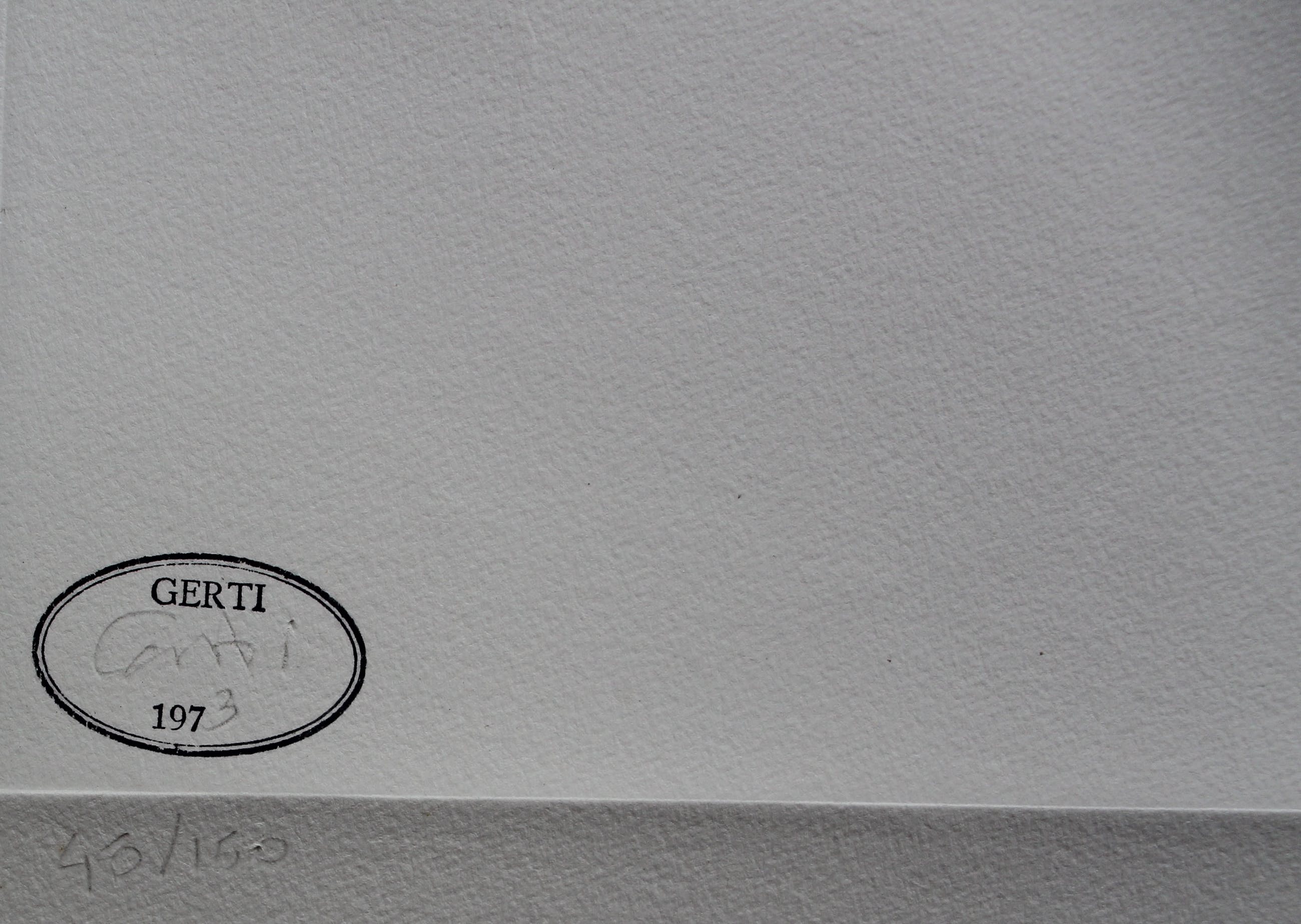 kleurenets van Gerti Bierenbroodspot uit 1973. Nummer: 45/150. De authenticiteit van het aangeboden werk wordt voor 100% gegarandeerd. Een certificaat van echtheid kan, op aanvraag, worden meegestuurd. Het werk is in goede staat.