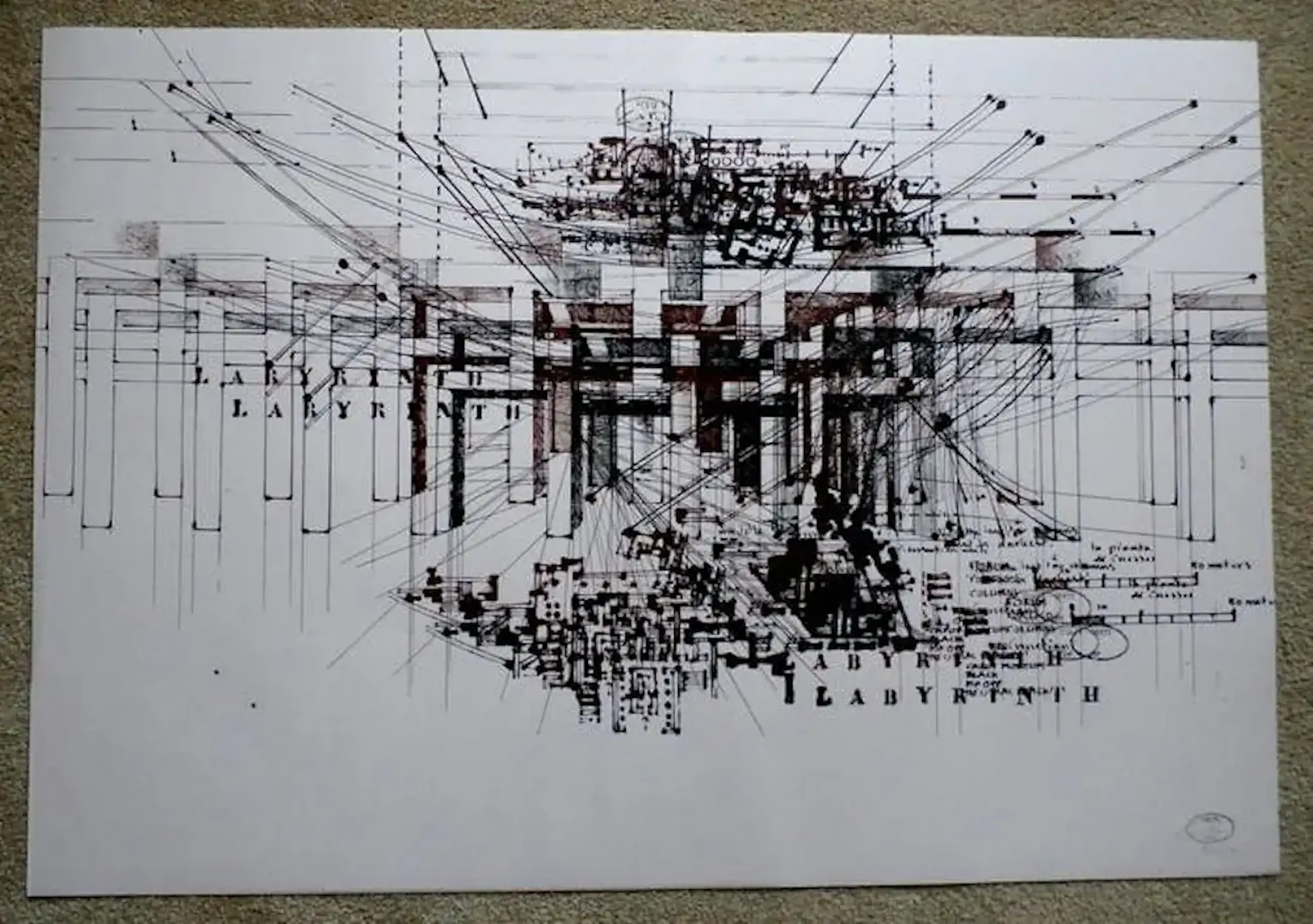 LItho van Gerti Bierenbroodspot uit 1975. Titel: Labyrinth. Oplage: 121/150 (nummer kan afwijken i.v.m. het in bezit hebben gehad van meerdere exemplaren). Afmetingen blad: H75,5 x b105cm. Het werk is met de hand gesigneerd in potlood tevens atelier stempel "gerti 1975". De authenticiteit van het aangeboden werk wordt volledig gegarandeerd. Een certificaat van echtheid kan, op aanvraag, worden gemaild.