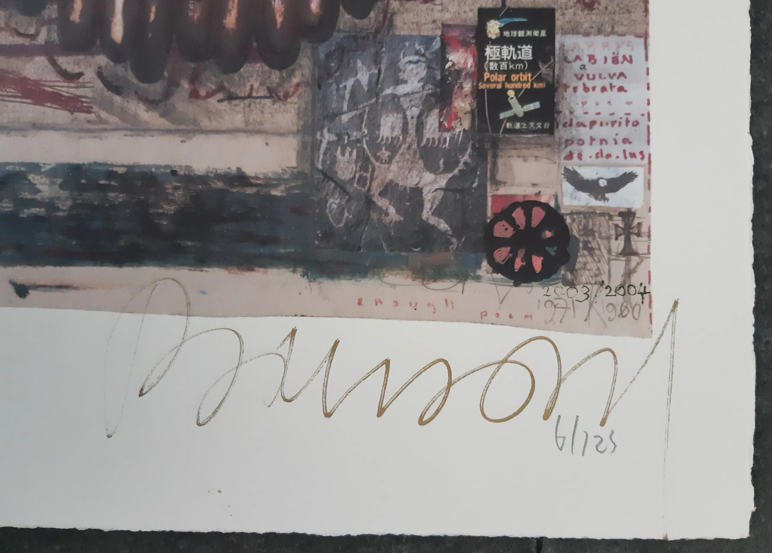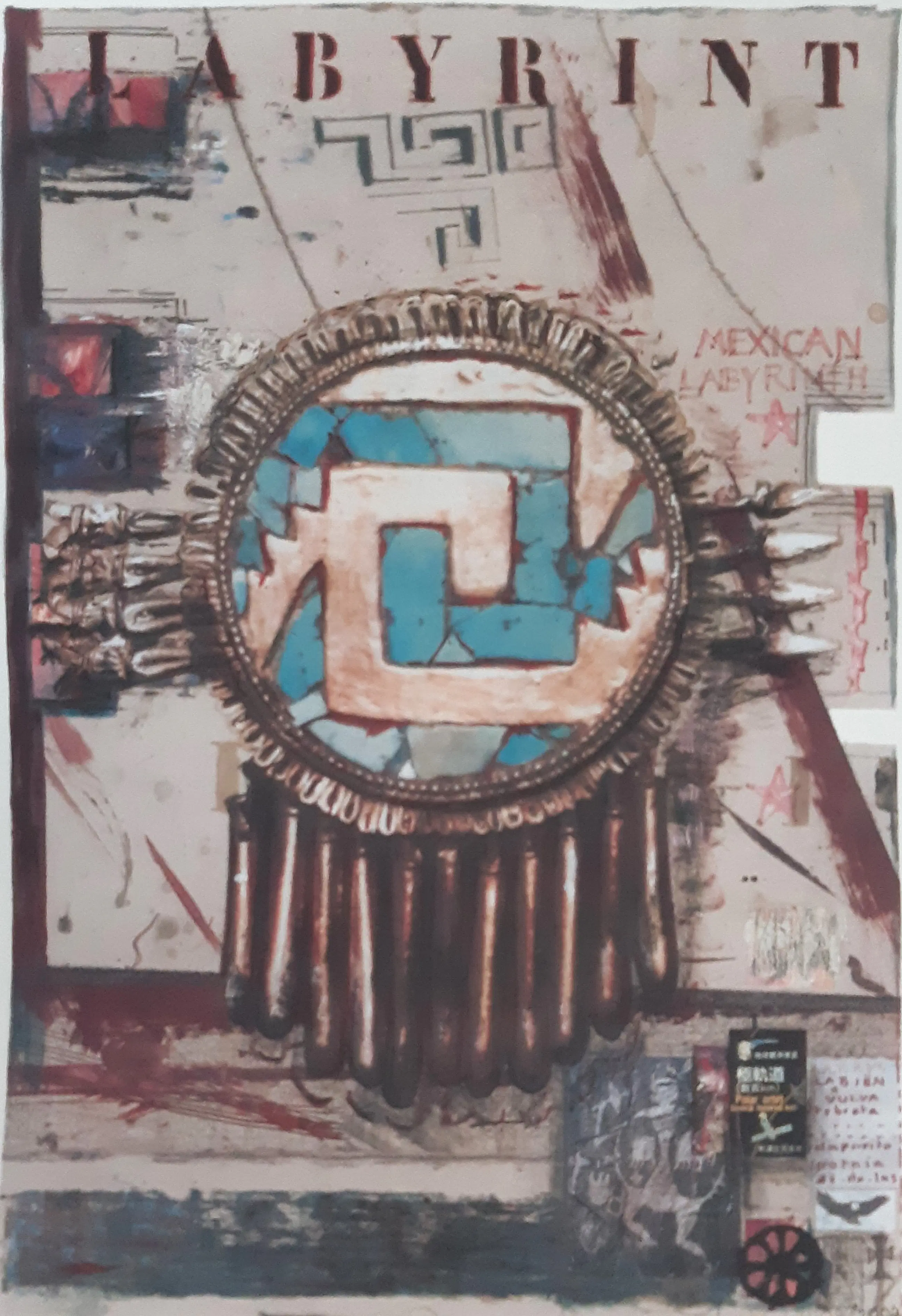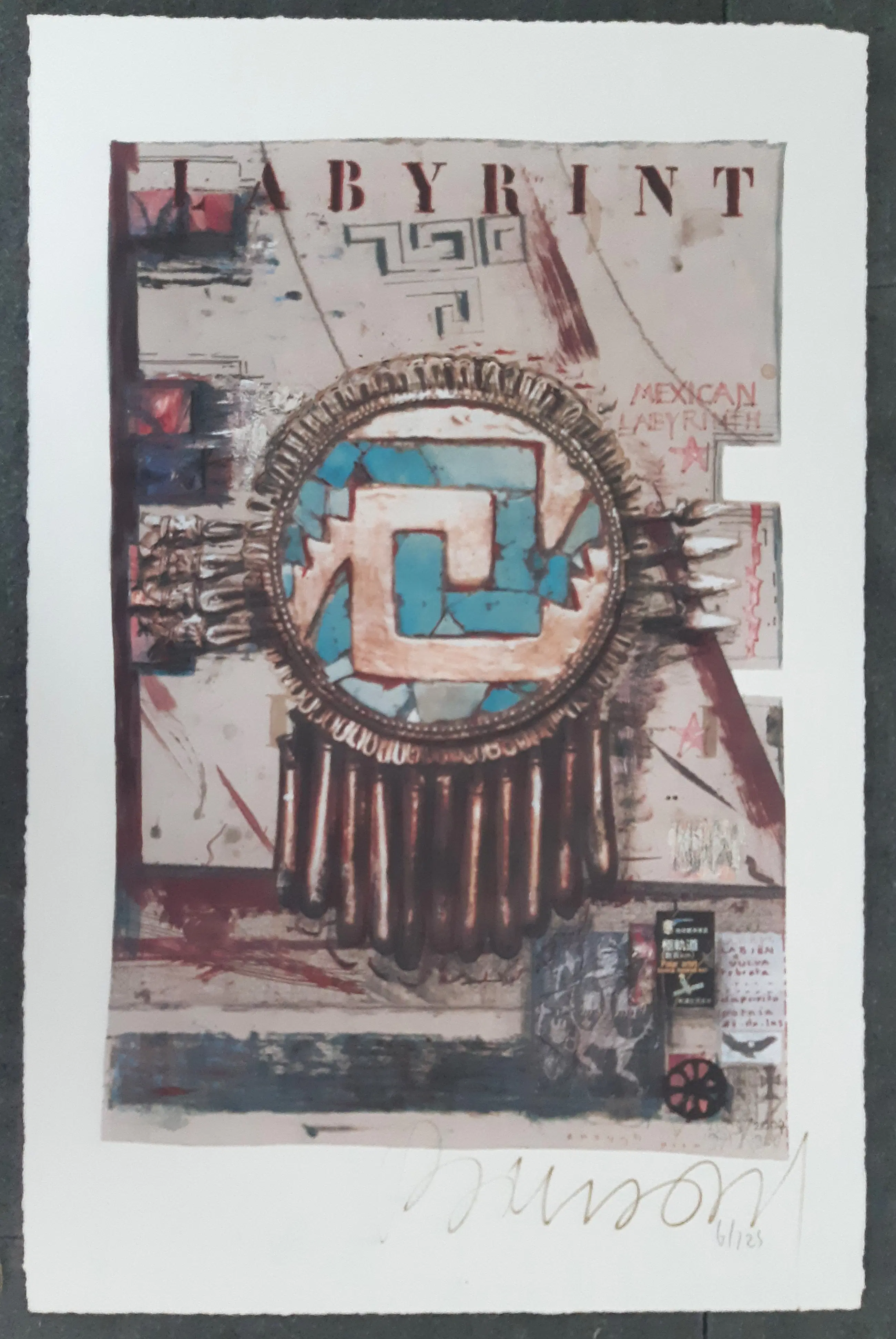 Uit de serie Twelve Labyrinths of Travel de zeefdruk Mexican Labyrinth. Met goudmarker gesigneerd, met potlood genummerd en in druk gedateerd. De afbeelding is 50 x 33 cm. De zeefdruk is in nieuwstaat.