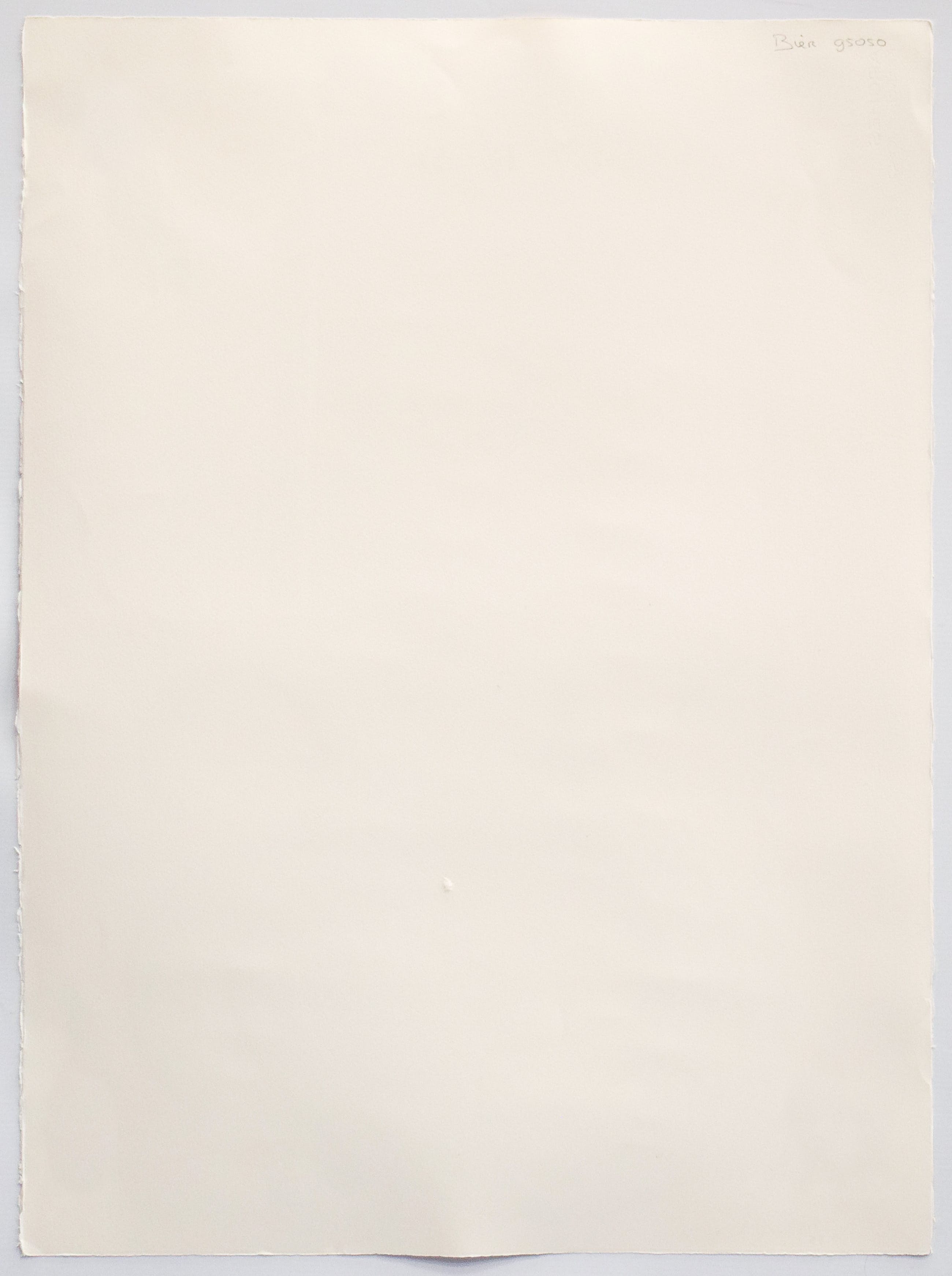 Bierbroodspot loopt altijd blootsvoets, of het nu over de ruige, onaangetaste gronden van archeologische ruïnes is of wanneer ze over de stenen van tempelvloeren loopt. En ze is altijd op blote voeten als ze schildert, binnen of buiten. Dus maakte ze letterlijk los contact met albast, de oude steen bij uitstek voor tempelverhardingen, die zachte, doorschijnende steen met verrassende kleuraders in het hart ervan. Net zoals ze schilderen op onaangeroerd papier of een leeg canvas verafschuwt, maar de witheid ervan altijd wegstrijkt met een toeval van kleur en structuur, zo suggereren de strepen van minerale tonen van Alabaster haar een innerlijke vitaliteit in de steen. Alsof de steen wacht om zijn gezicht te veranderen.