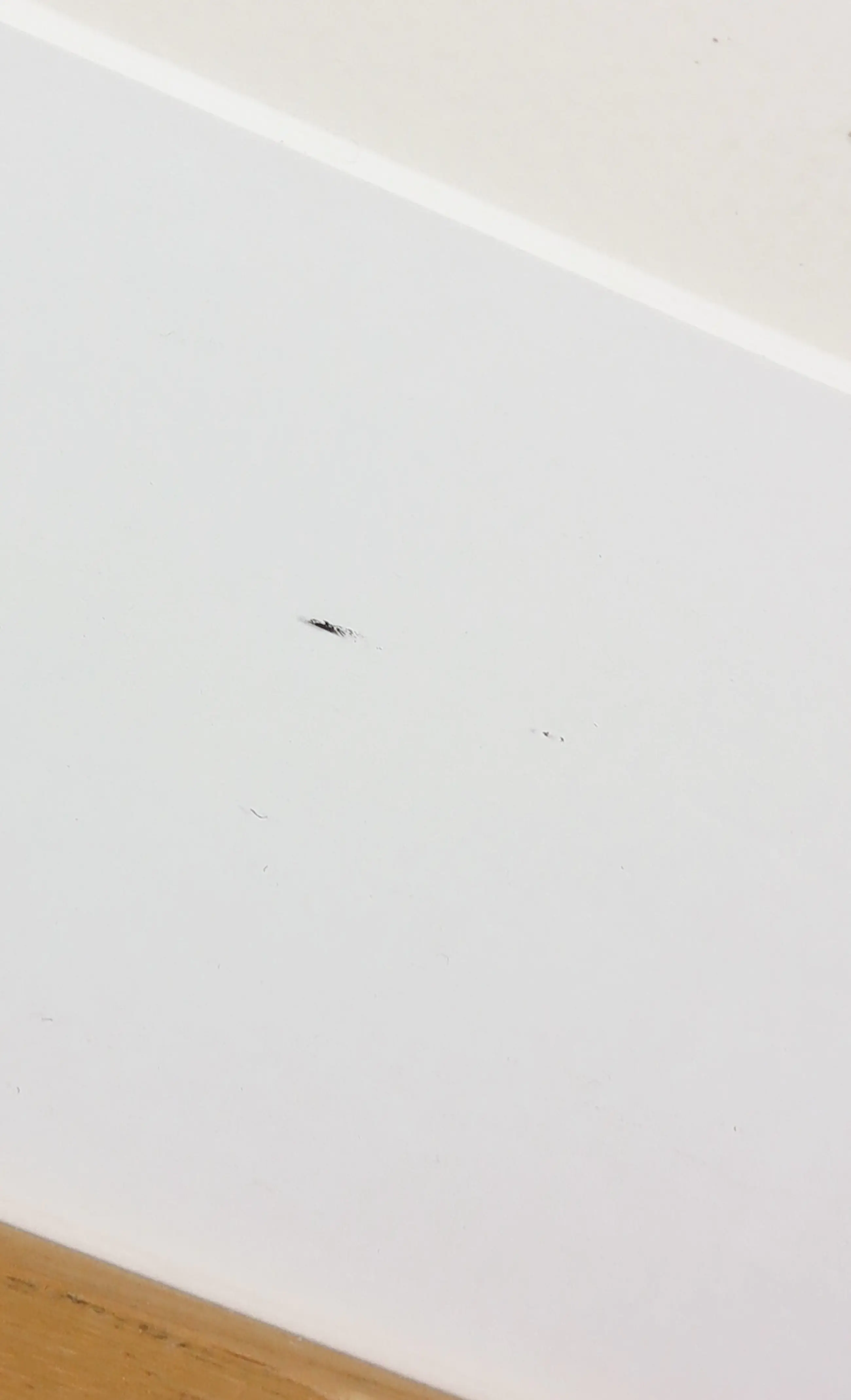 | Restanten van sticker op de (plexi)glasplaat. Daarnaast enkele stofdeeltjes achter de glasplaat. | |