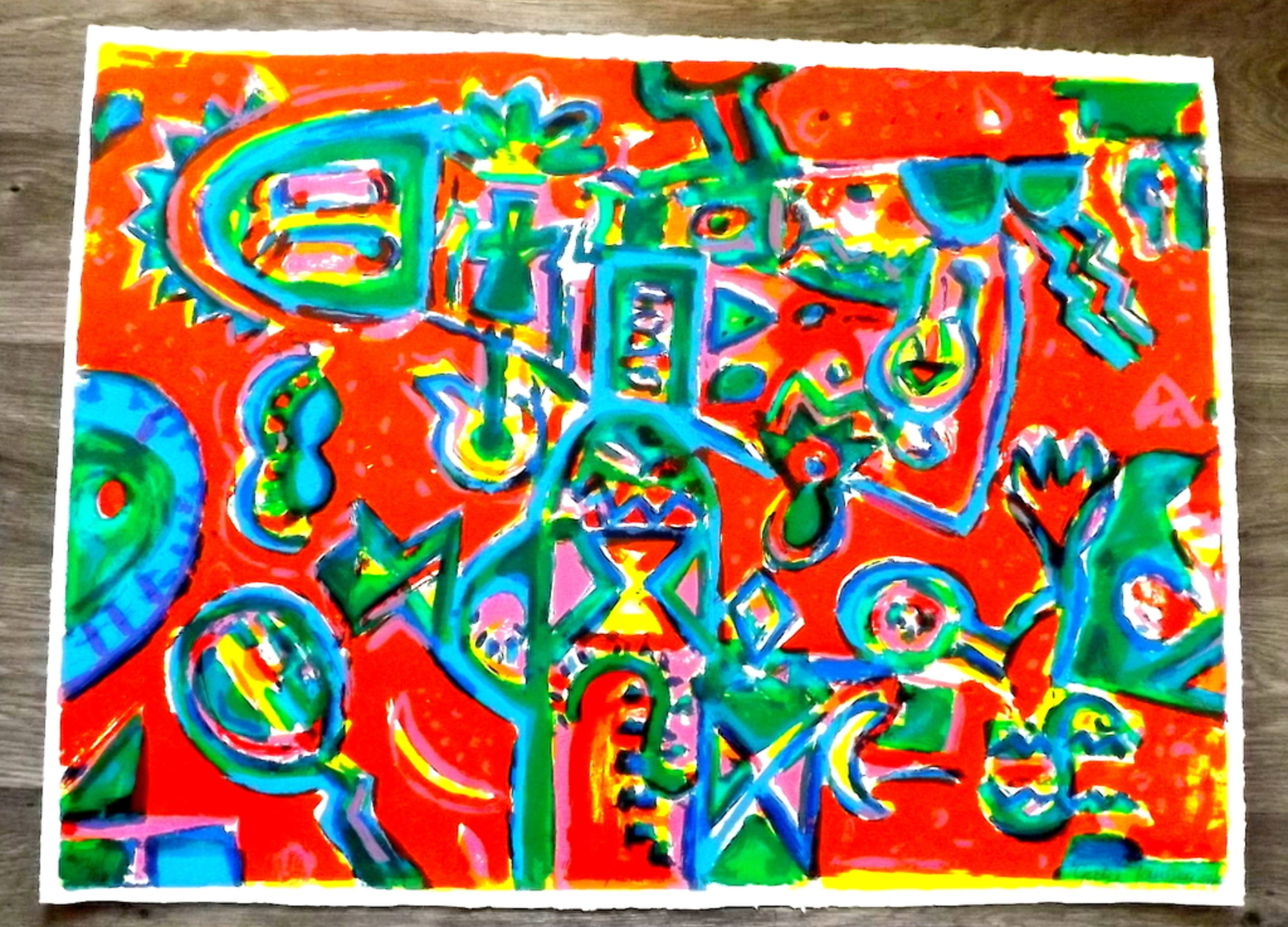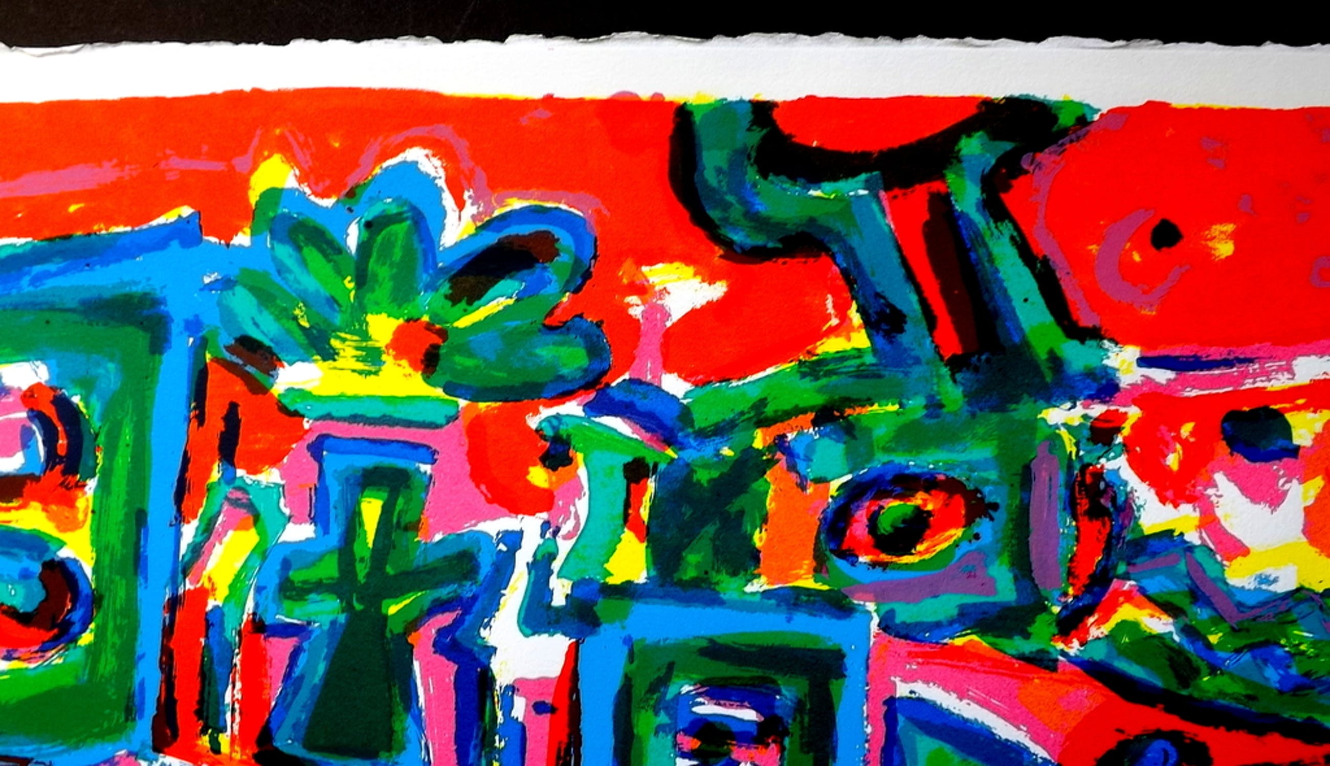 Moderne compositie afgedrukt op Arches in heldere kleuren.