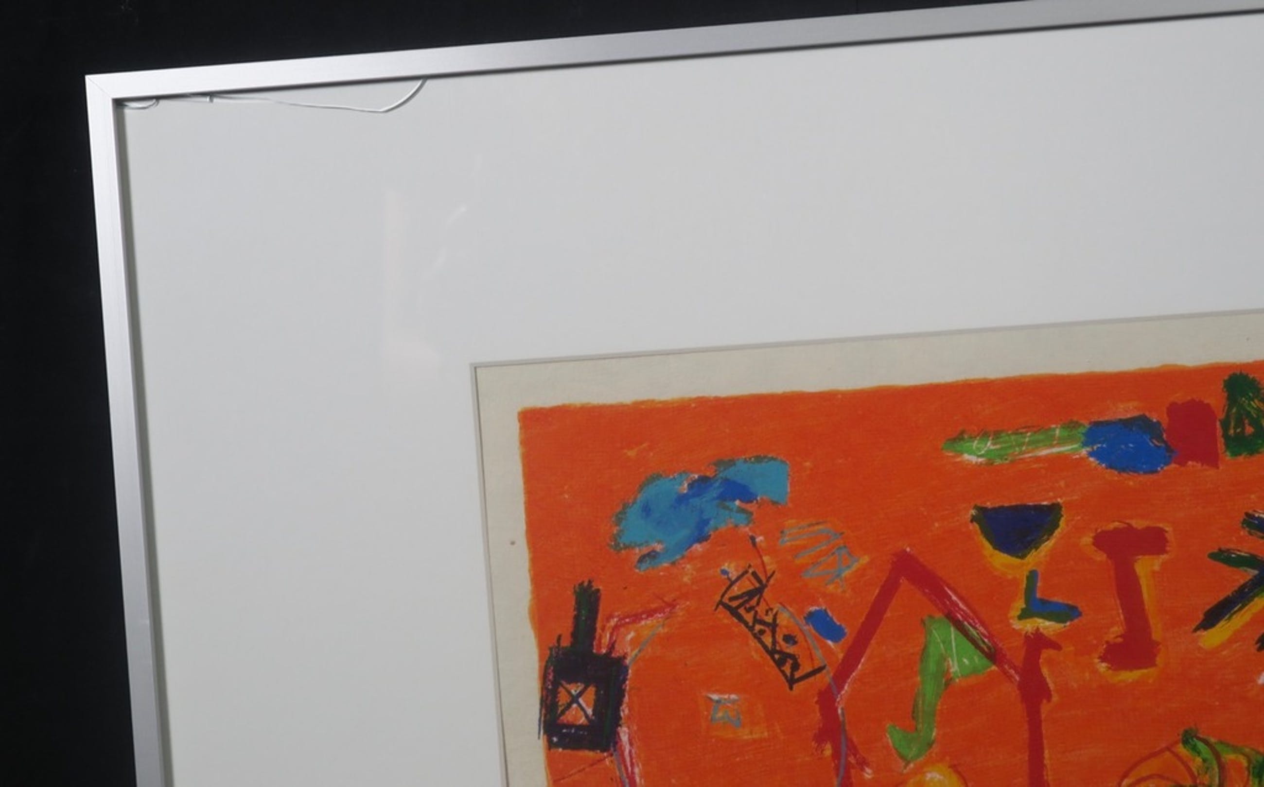 Ingelijst: Ja, in aluminium lijst, scheur in het glas linksboven