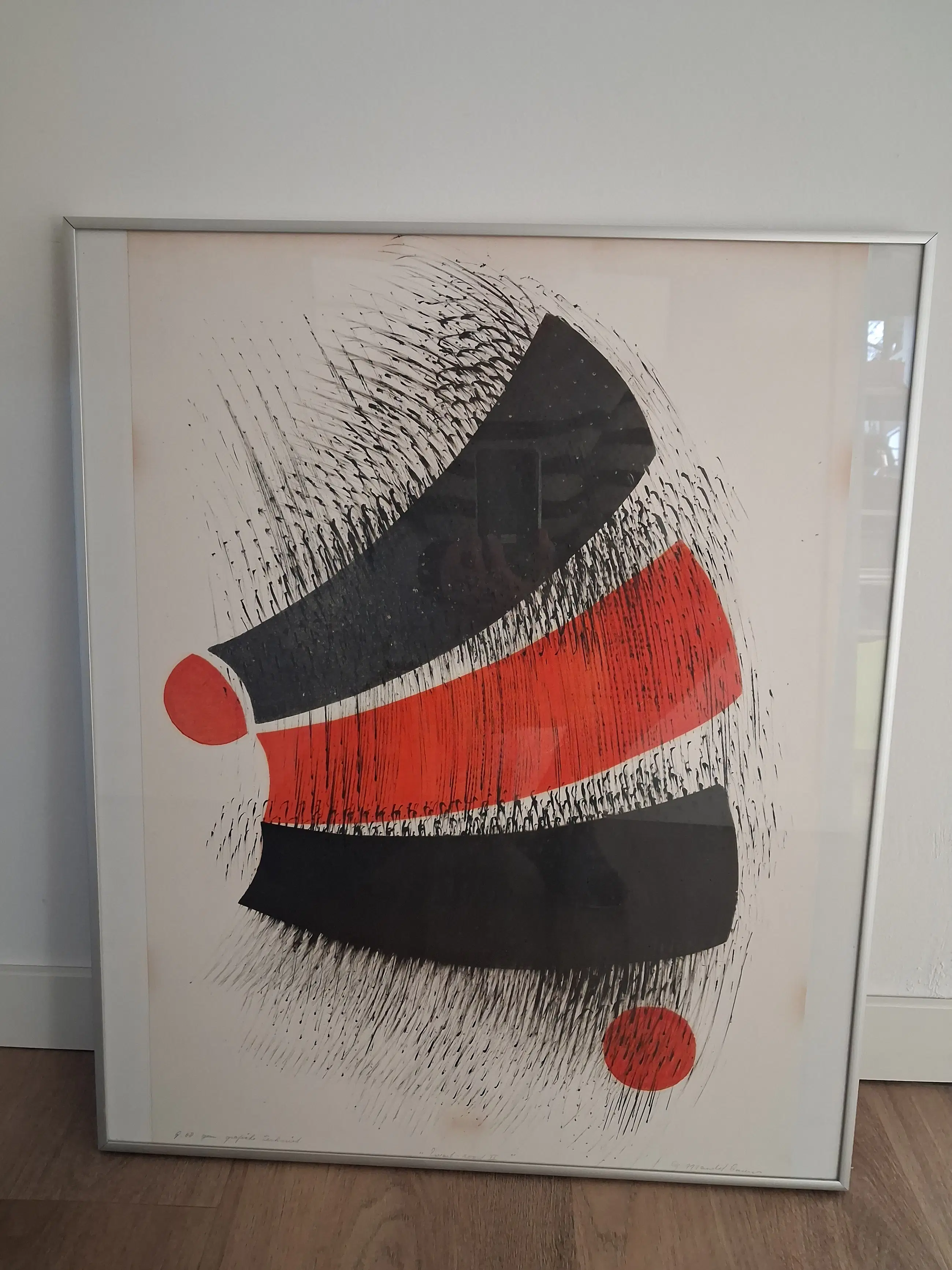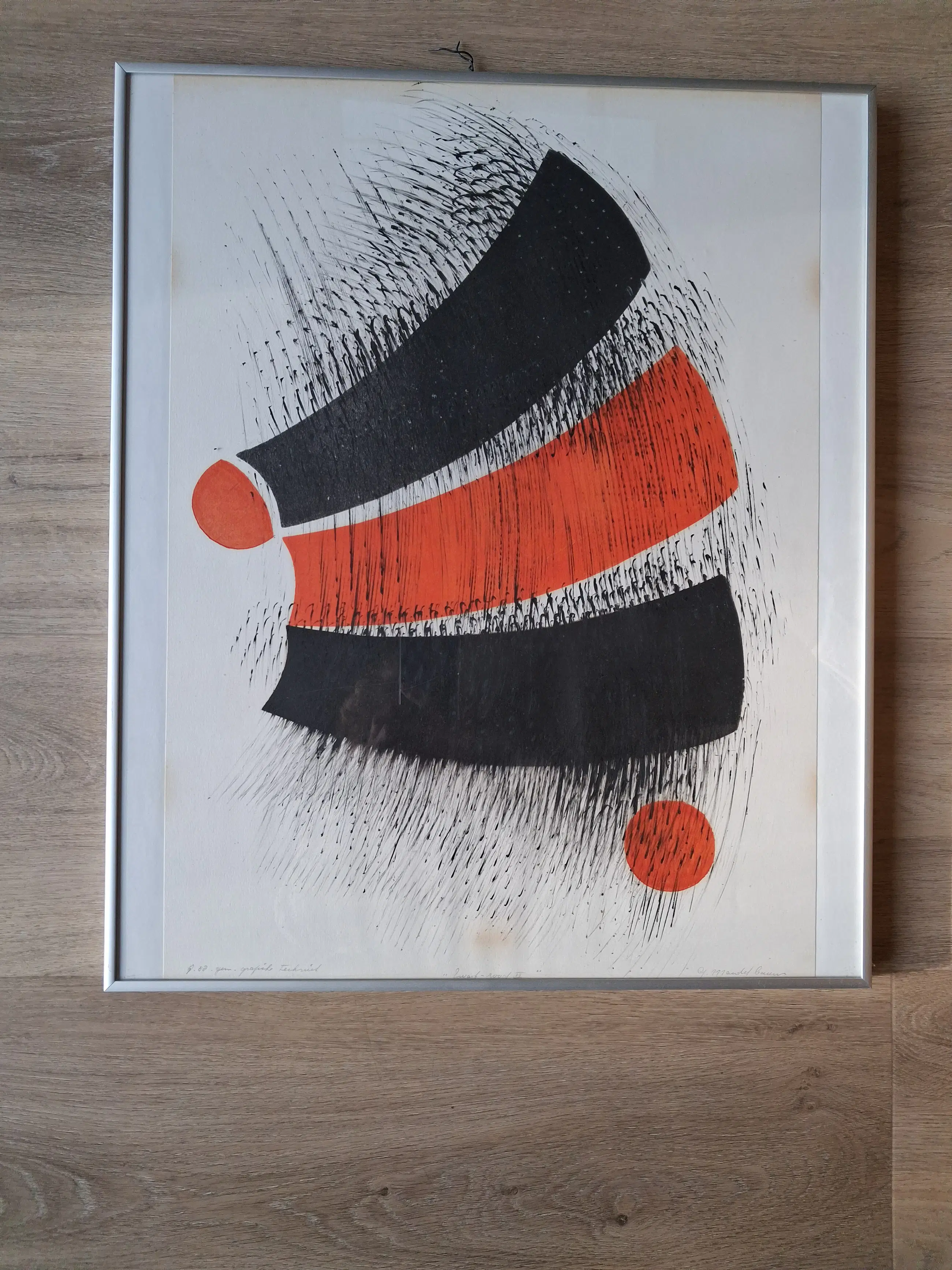 Werk achter glas, ingelijst. Gekocht rechtstreeks van de kunstenares, Gertrud Mandelbaum in de jaren-85-'90, in Amsterdam. Het is een werk in oplage: nr. 88 staat vermeld