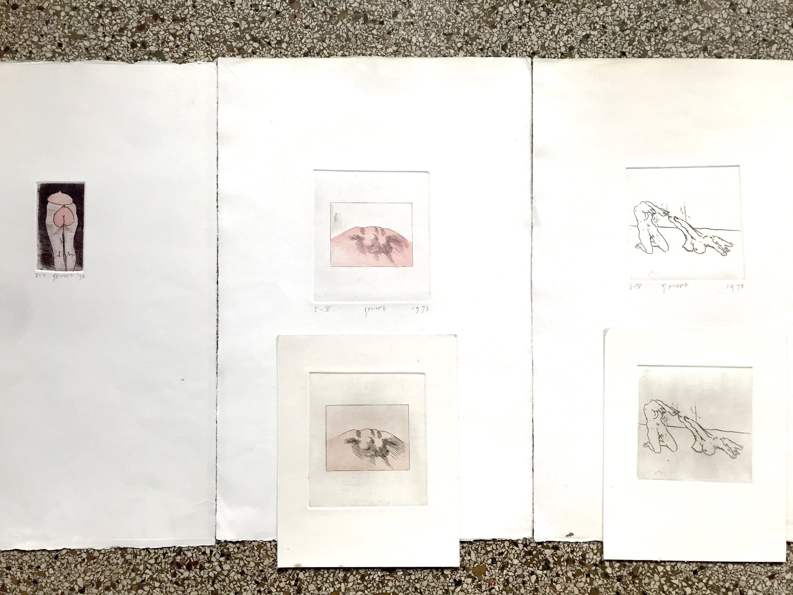 De werken zijn nooit ingelijst geweest, papier heeft wel wat miniscule vlekjes