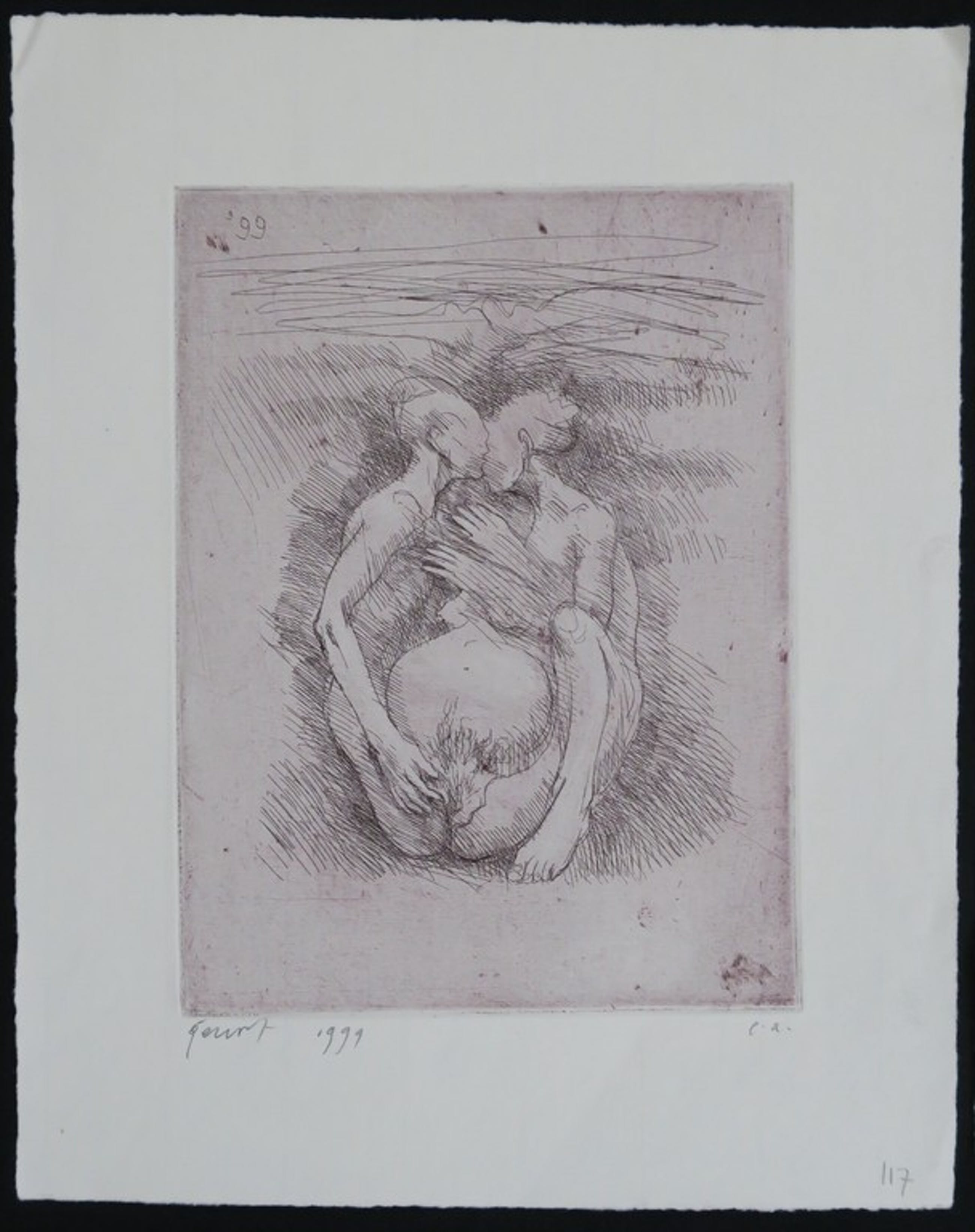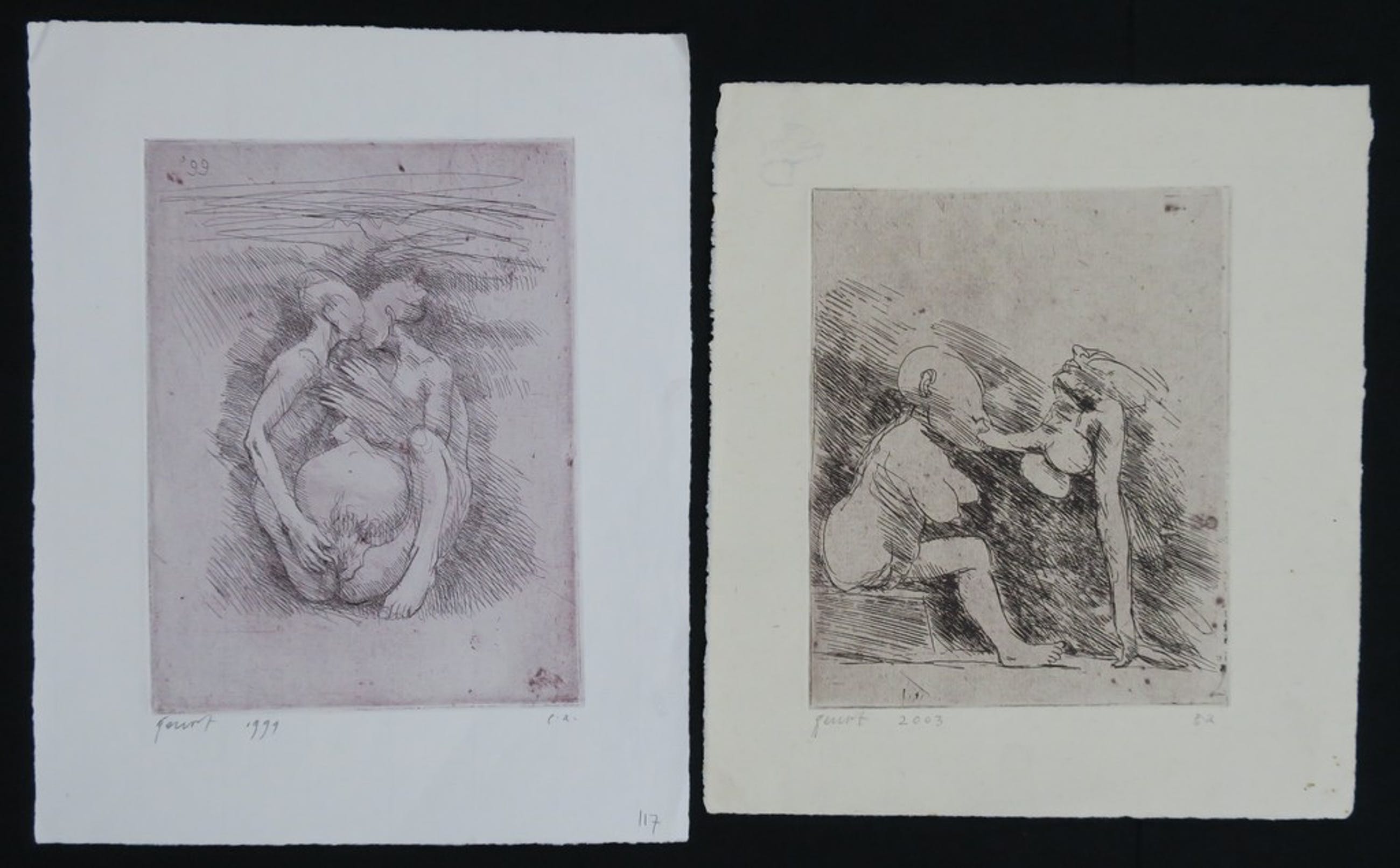 Conditie: Beeld in zeer goede staat. Beide met wat lichte kreuk in de witranden. Ingelijst achter passe-partout niet zichtbaar.