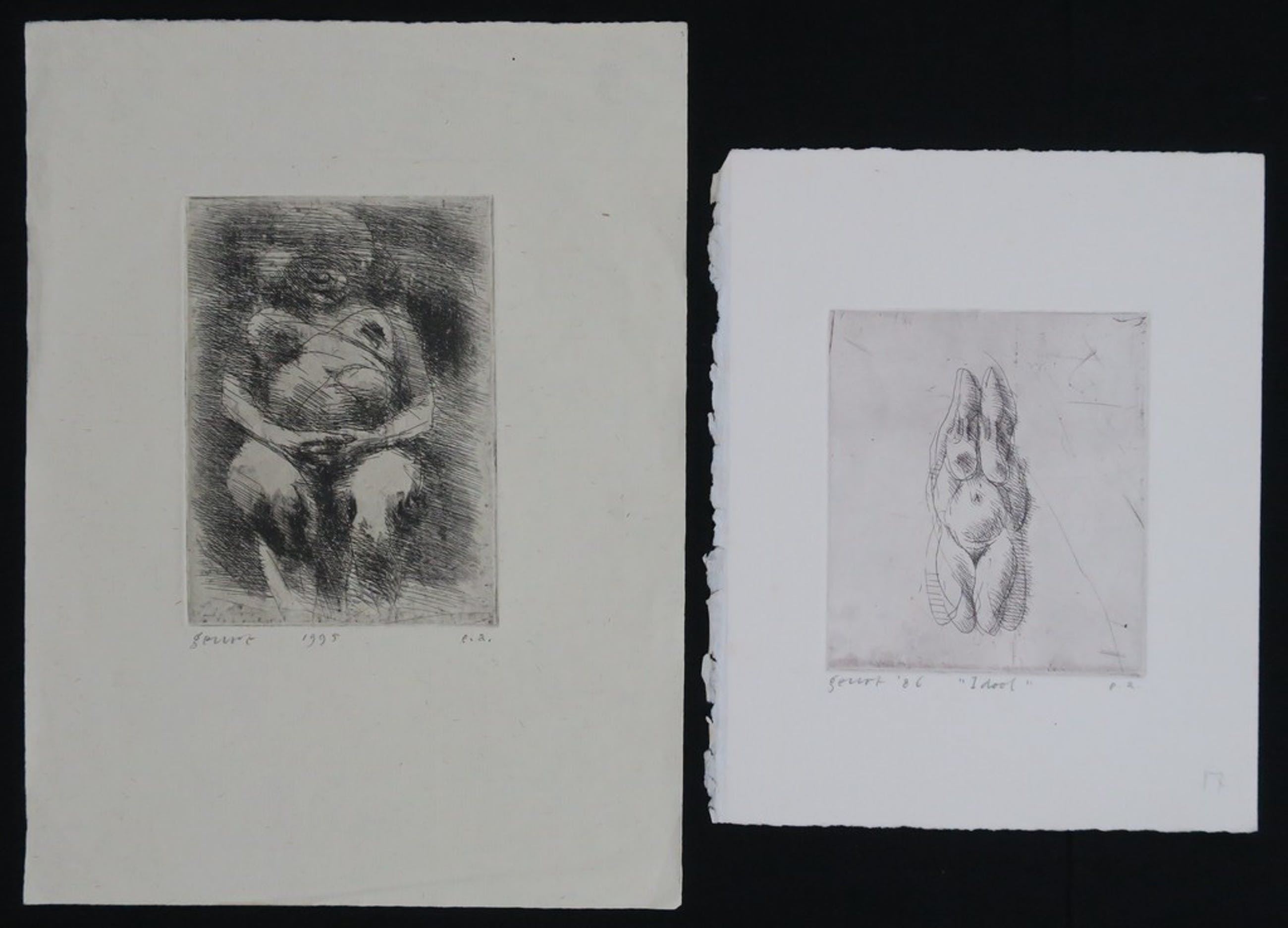 Conditie: Van beide het beeld in zeer goede staat. De ets links op de hoofdfoto is gedrukt op fragiel papier, daardoor zit er in de witranden van het blad wat lichte kreuk.