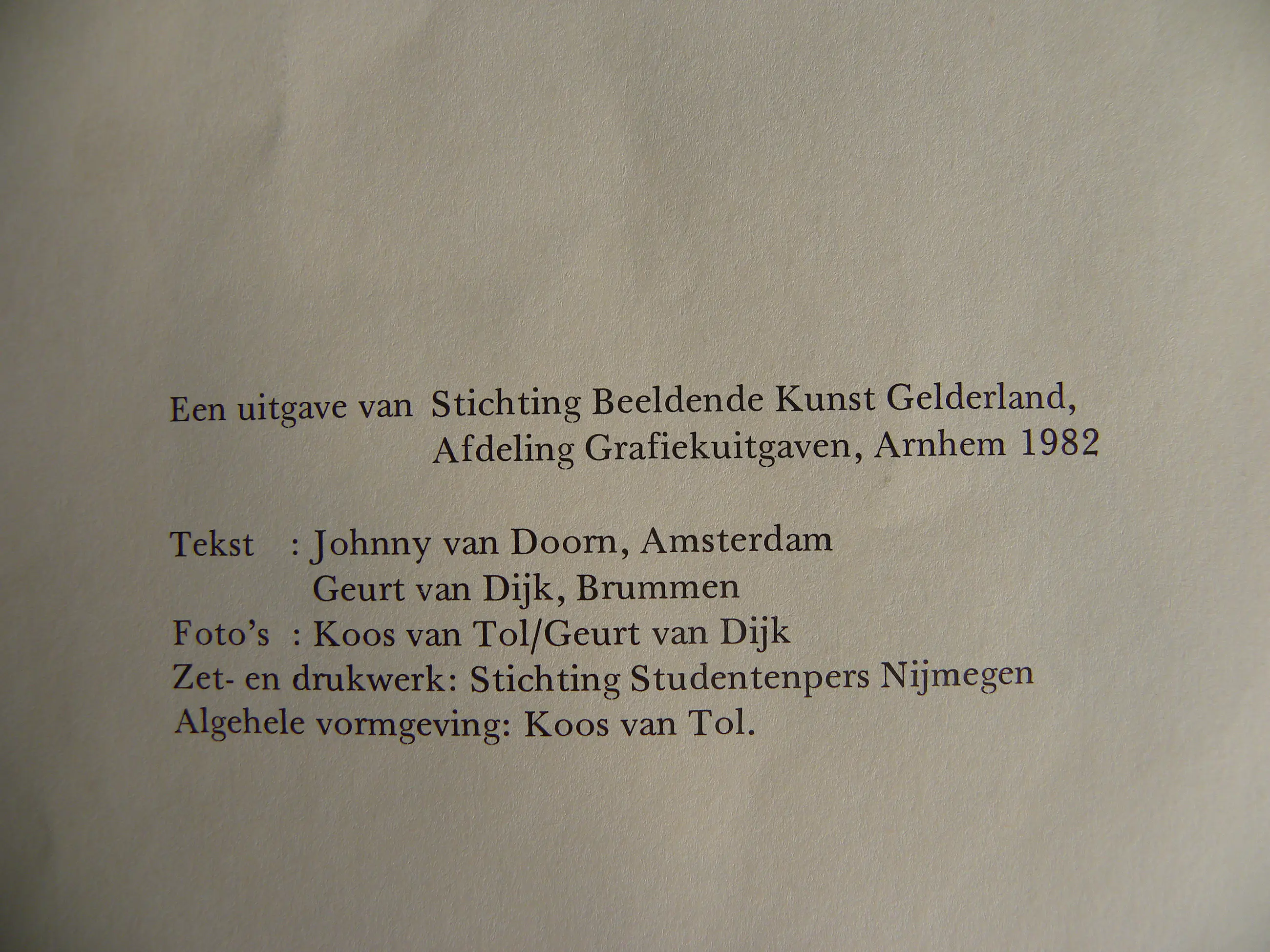 Uitgave Stichting Beeldende Kunst Gelderland, afdeling Grafiekuitgaven; Arnhem 1982. Oplage 40 stuks. De hier aangeboden grafiekmap heeft nr 9 (in de reeks van 40) .