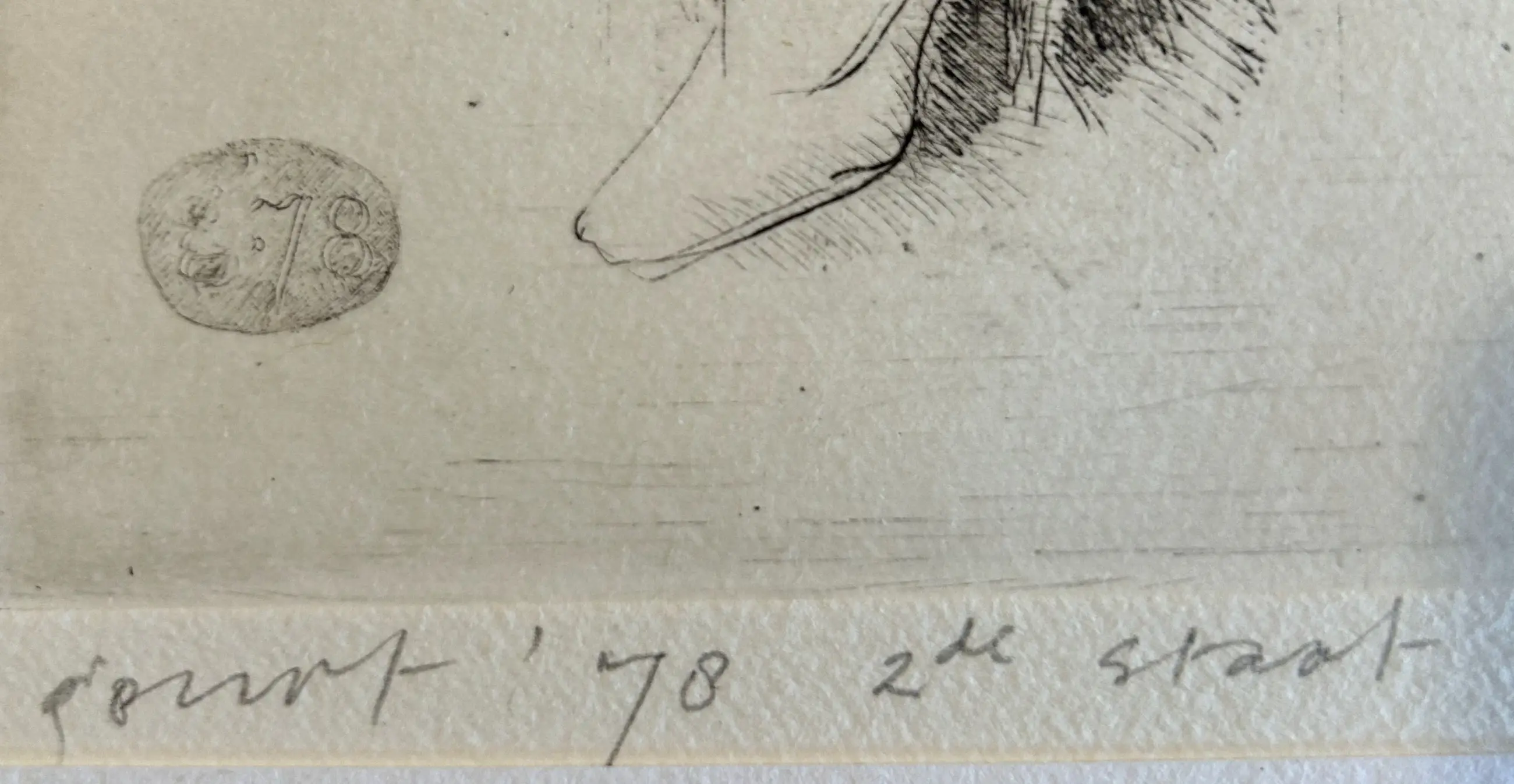 Gesigneerd en gedateerd: Geurt 1978. Zie volgende item; daar is de eerste staat getiteld: De Venus van Rhienderen