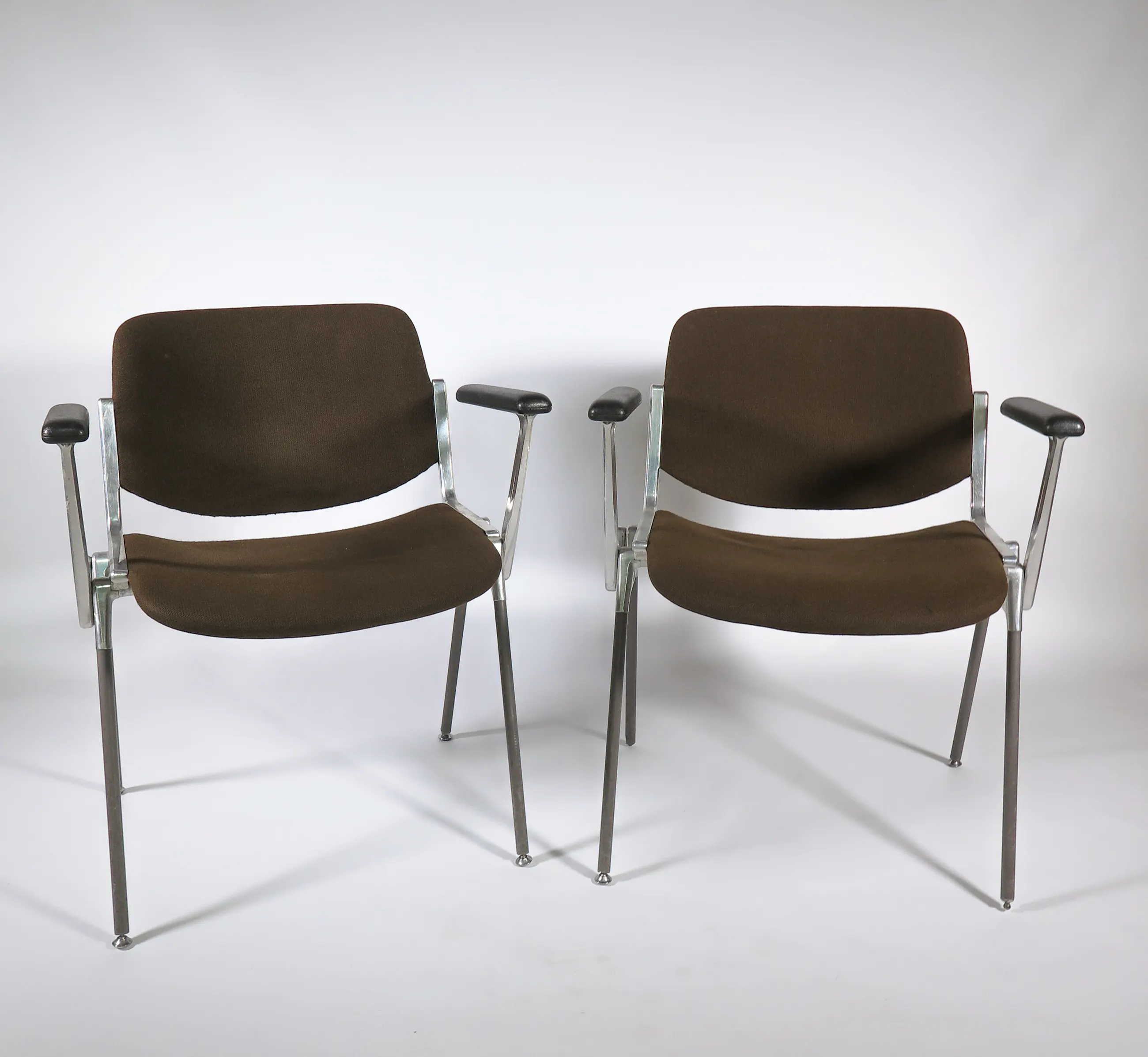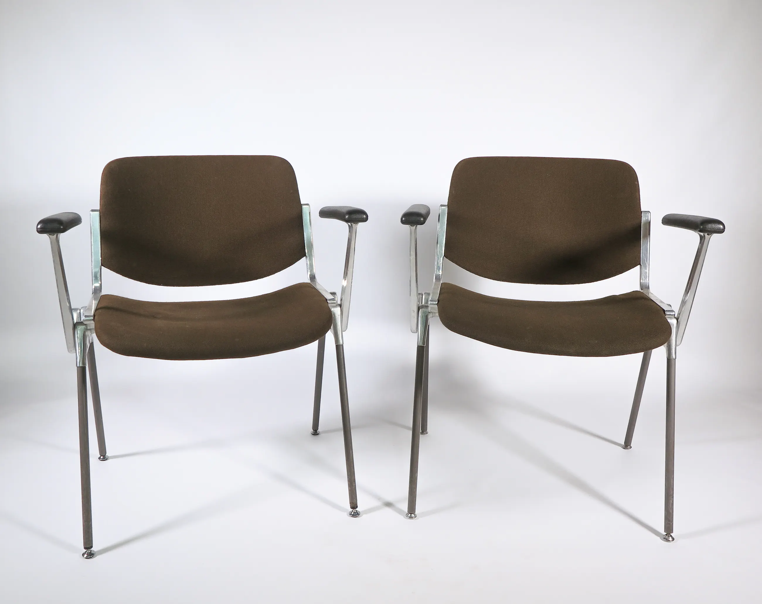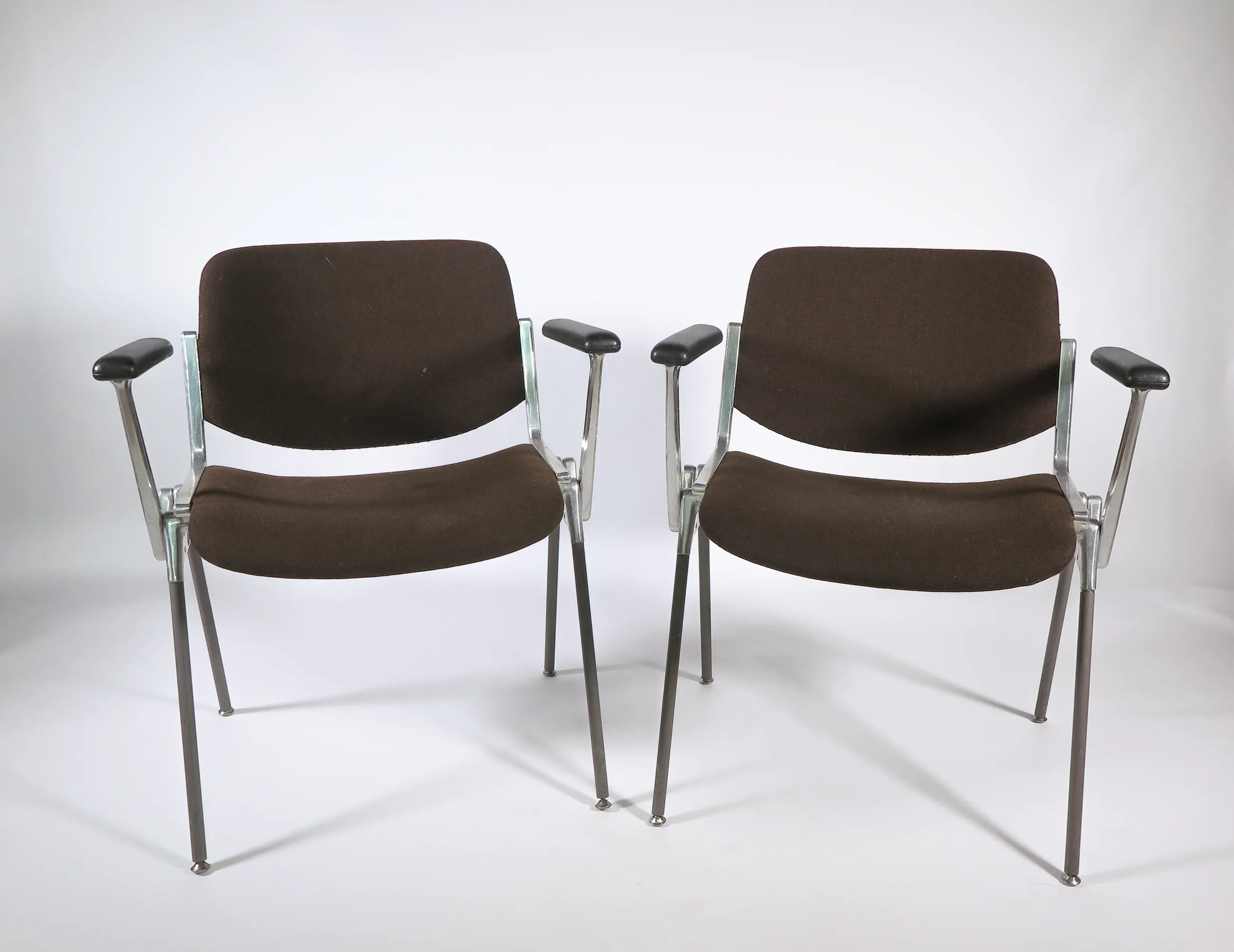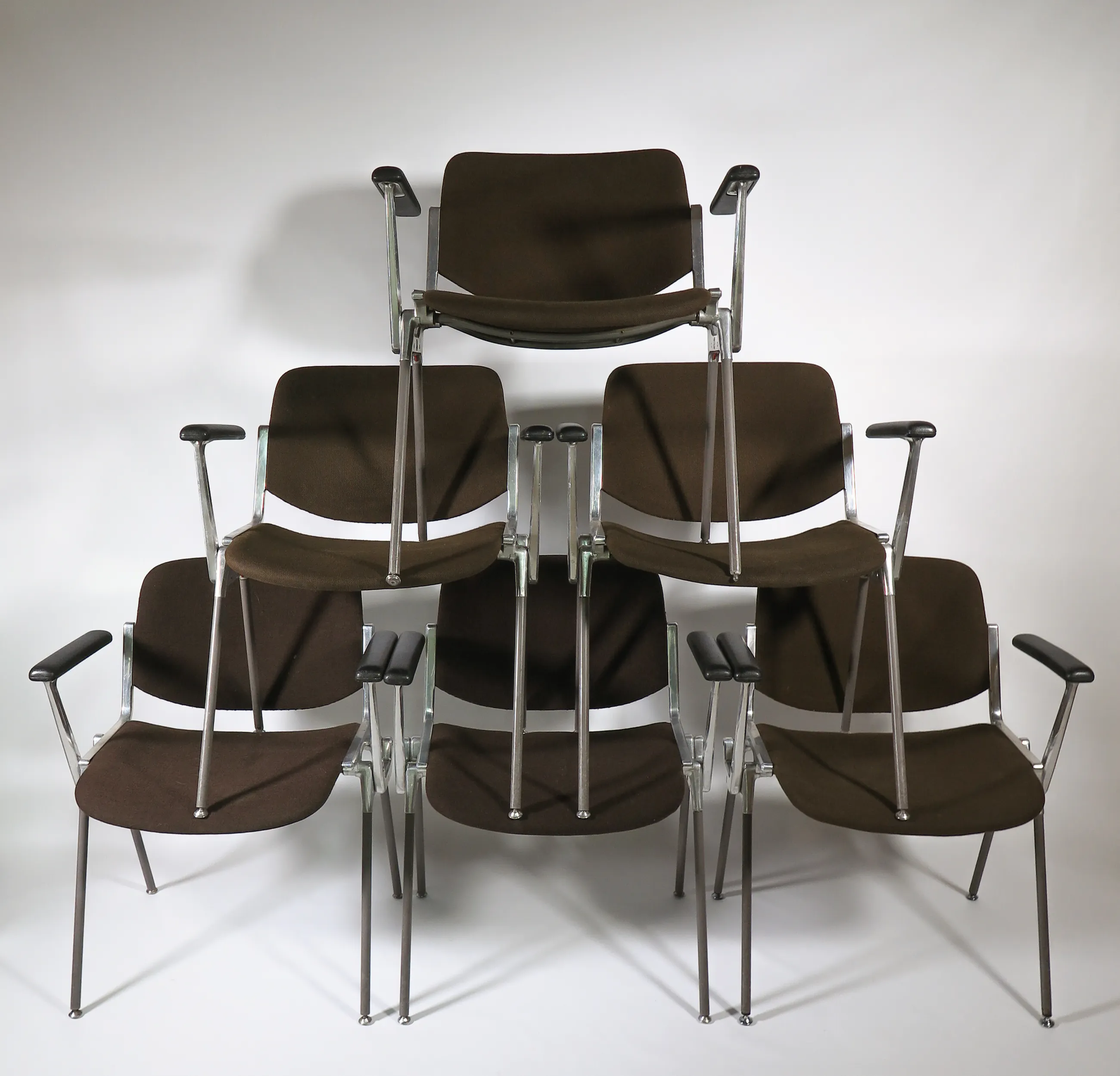 Lot van zes vintage DSC 106 stoelen, ontworpen door Giancarlo Piretti voor Castelli. Niet alle stoelen hebben dezelfde kleur bekleding.