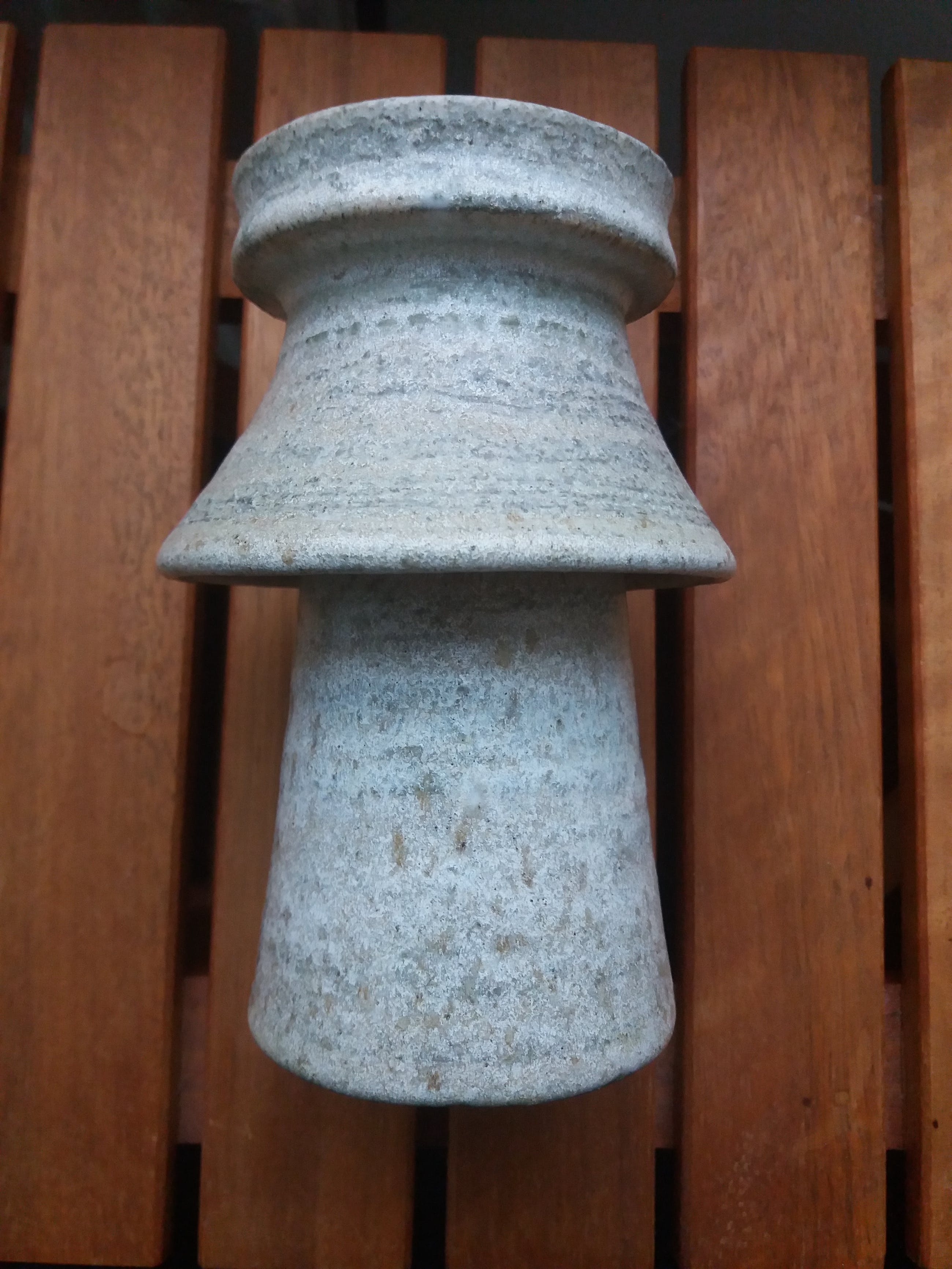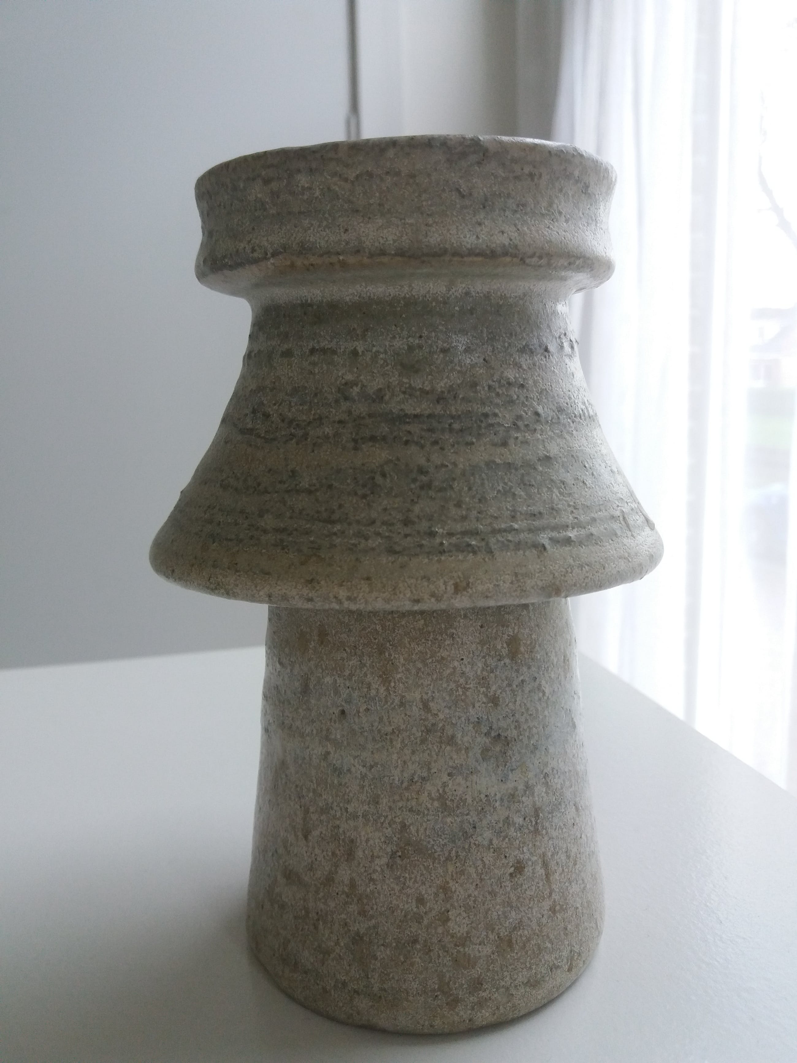 Vaas uit de jaren 60 van steengoed, hooggebakken met gebruik van glazuren en engobes.