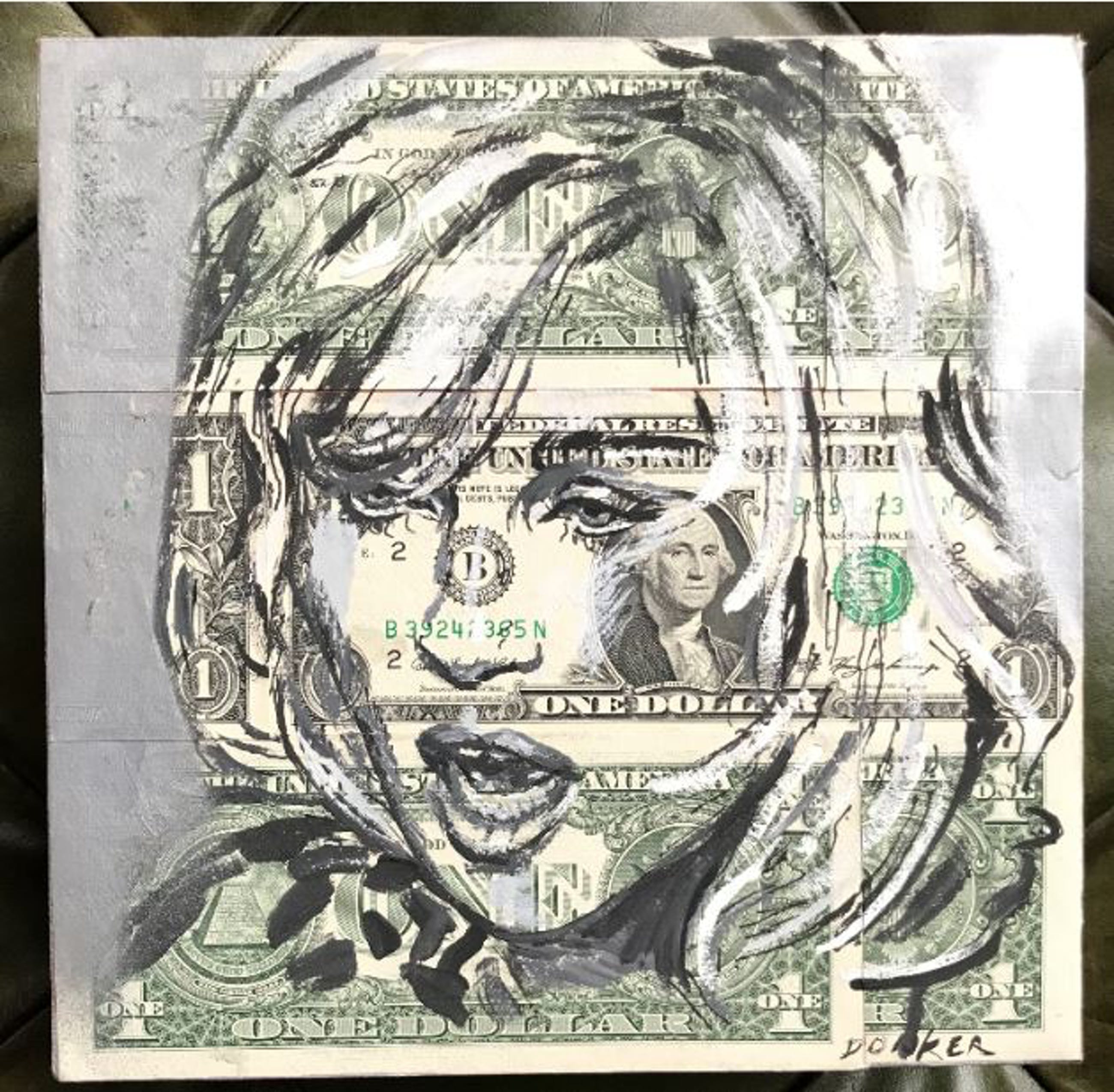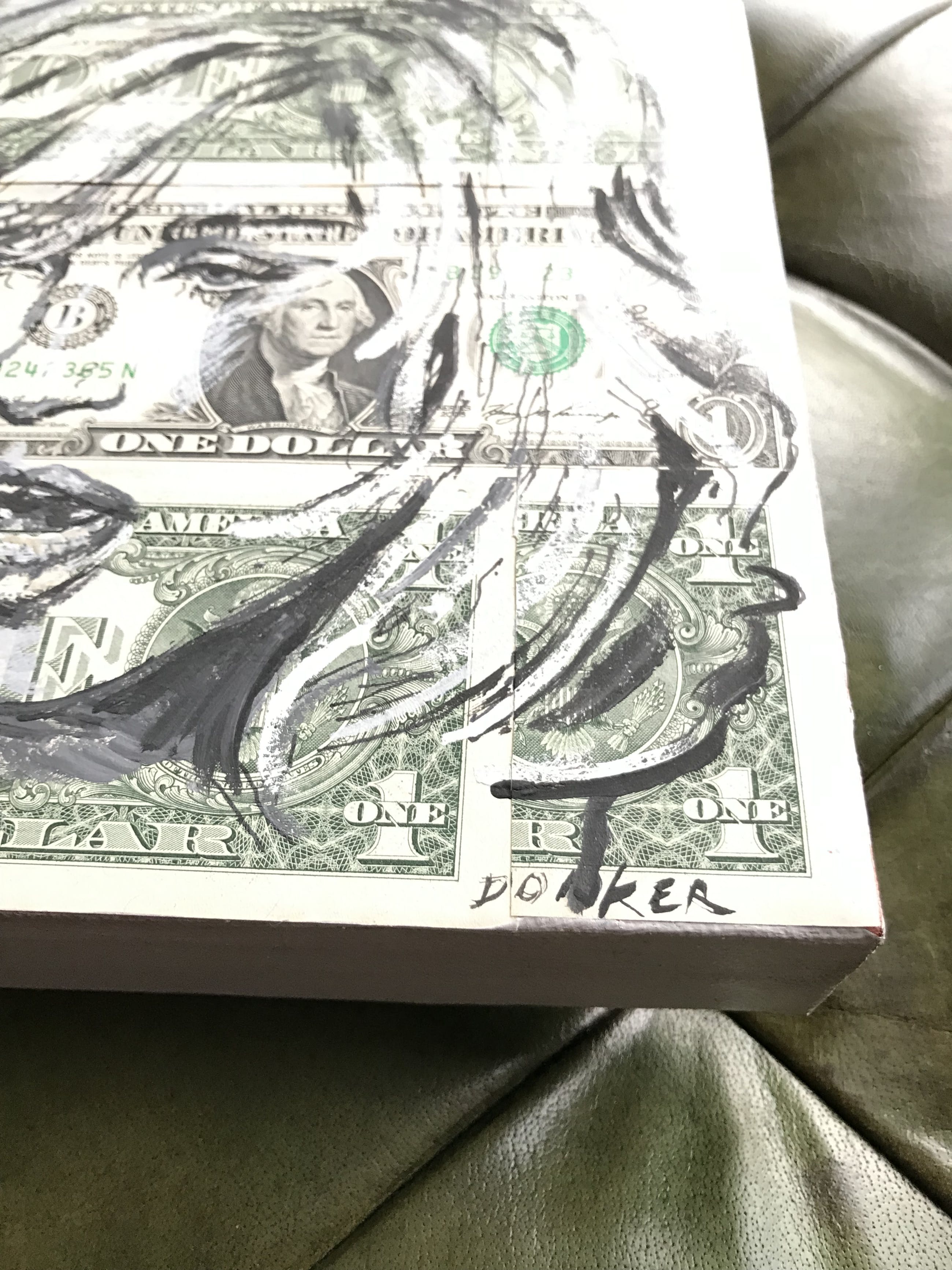 - Gemengde techniek op dollar biljetten op 3d-doek.