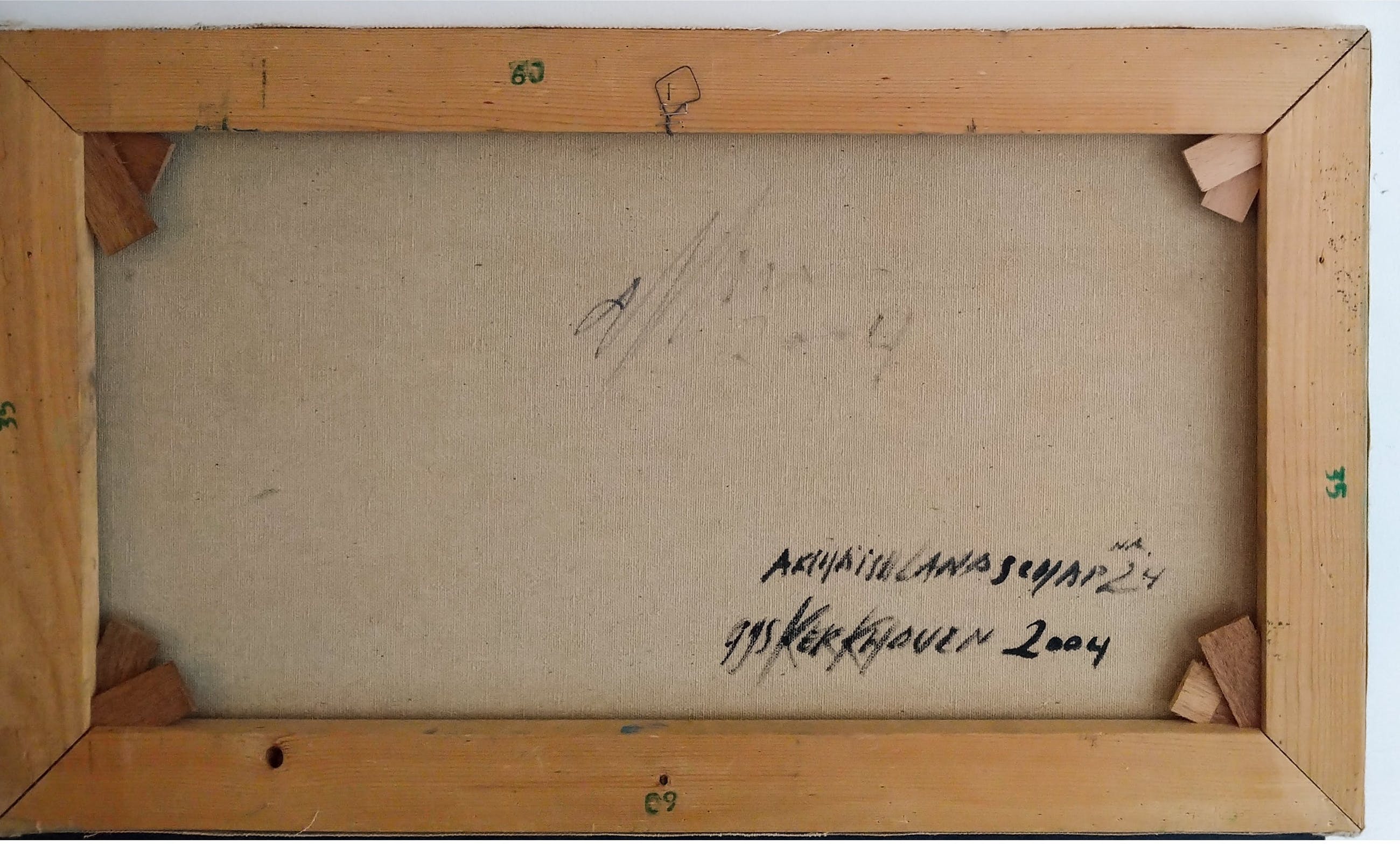 Schilderij is 35 x 60 cm. Olieverf op doek. Gesigneerd aan de achterkant.