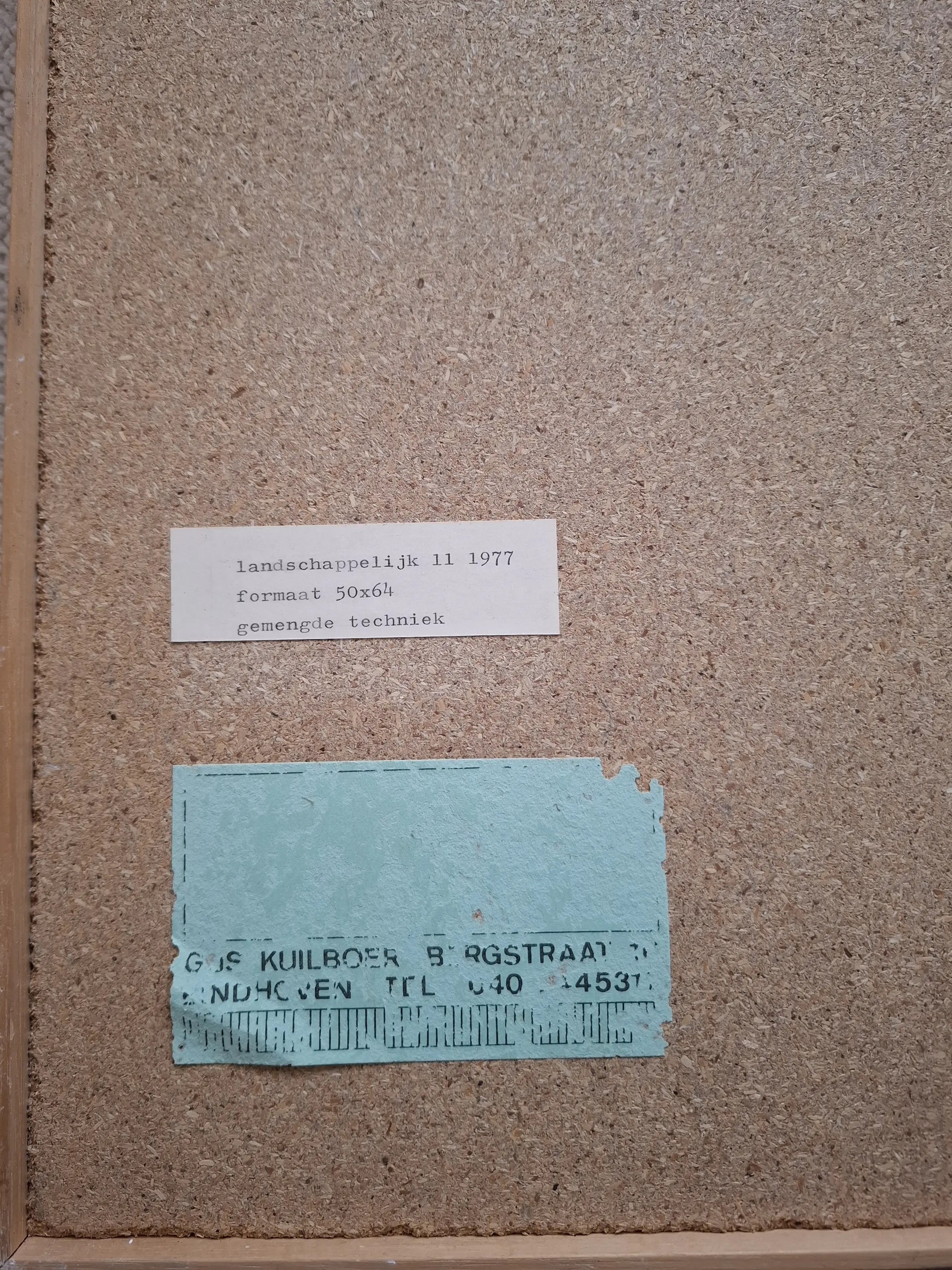 Uniek kunstwerk in gemengde techniek van de kunstenaar Gijs Kuilboer. In een mooie lijst gezet en in uitstekende staat.