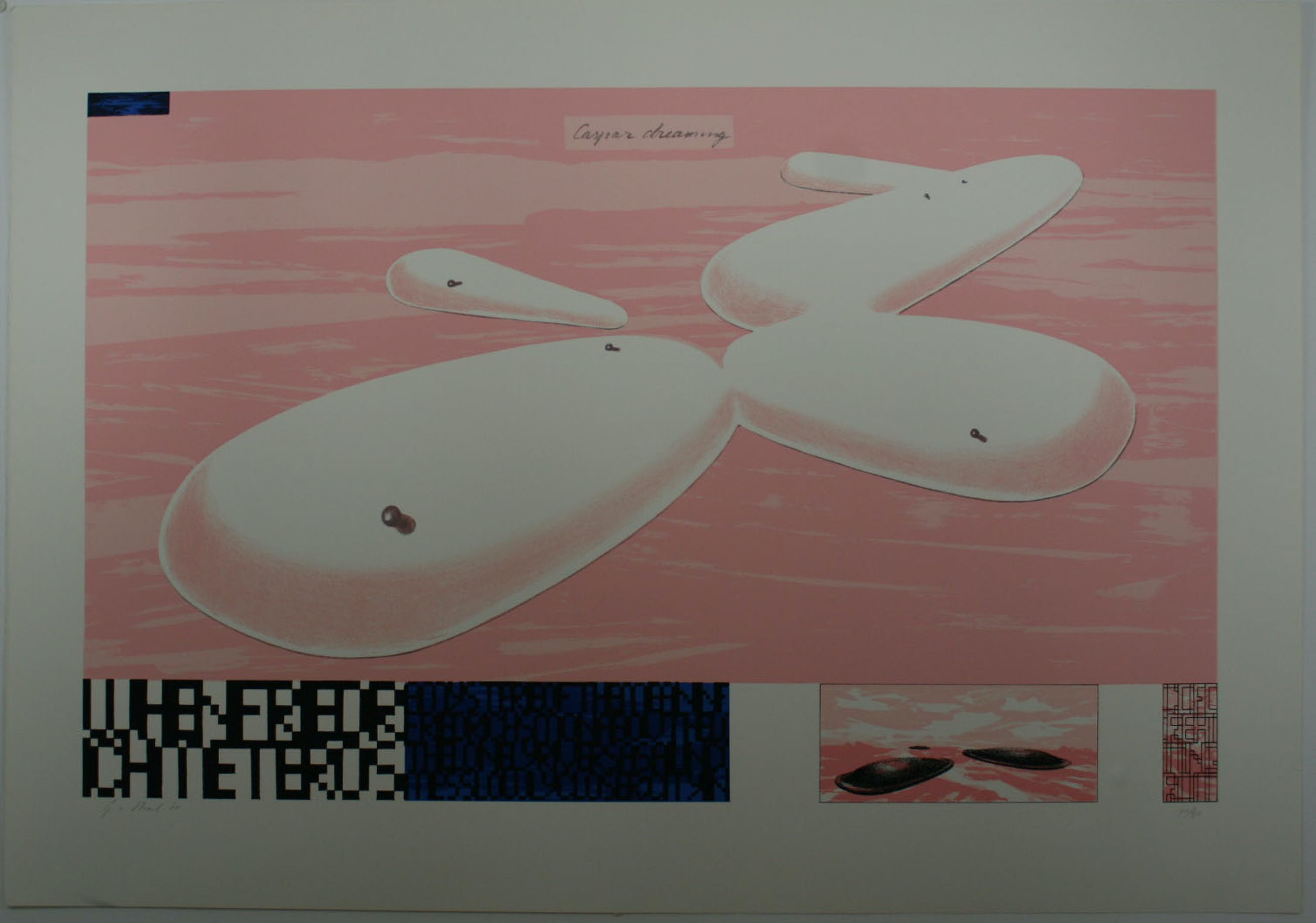 Zeefdruk op hand geschept papier.