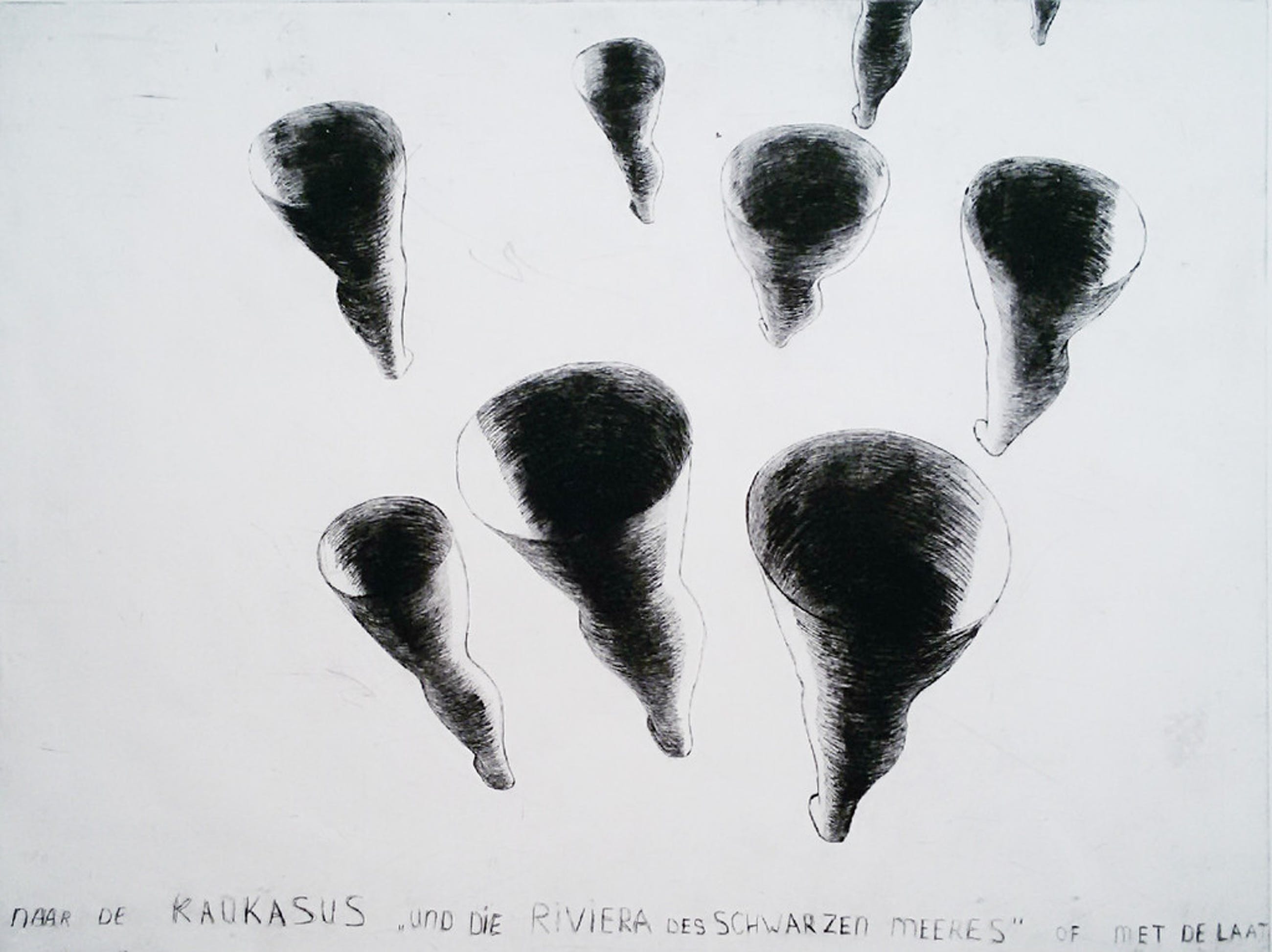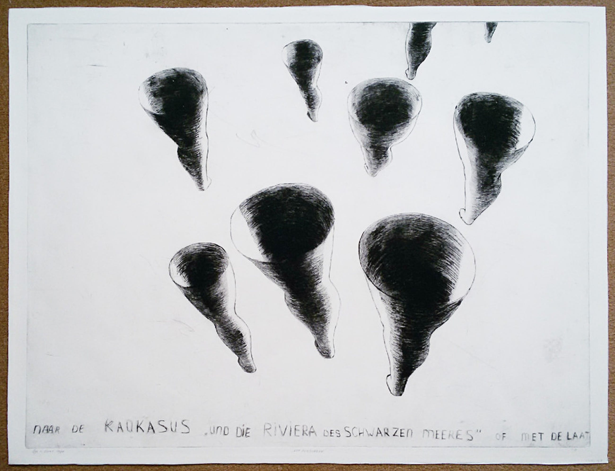 Groot, apart werk van Gijs van Noort uit 1994. Ets op Arches papier, met potlood gesigneerd, gedateerd, getiteld en genummerd (5/8). Afkomstig uit de kunstcollectie van ABNAMRO; in zeer goede conditie. Het werk is ingelijst geweest want er zitten taperesten langs de randen aan de achterkant van het blad. Ingelijst met nieuw passe-partout is het werk uitstekend.