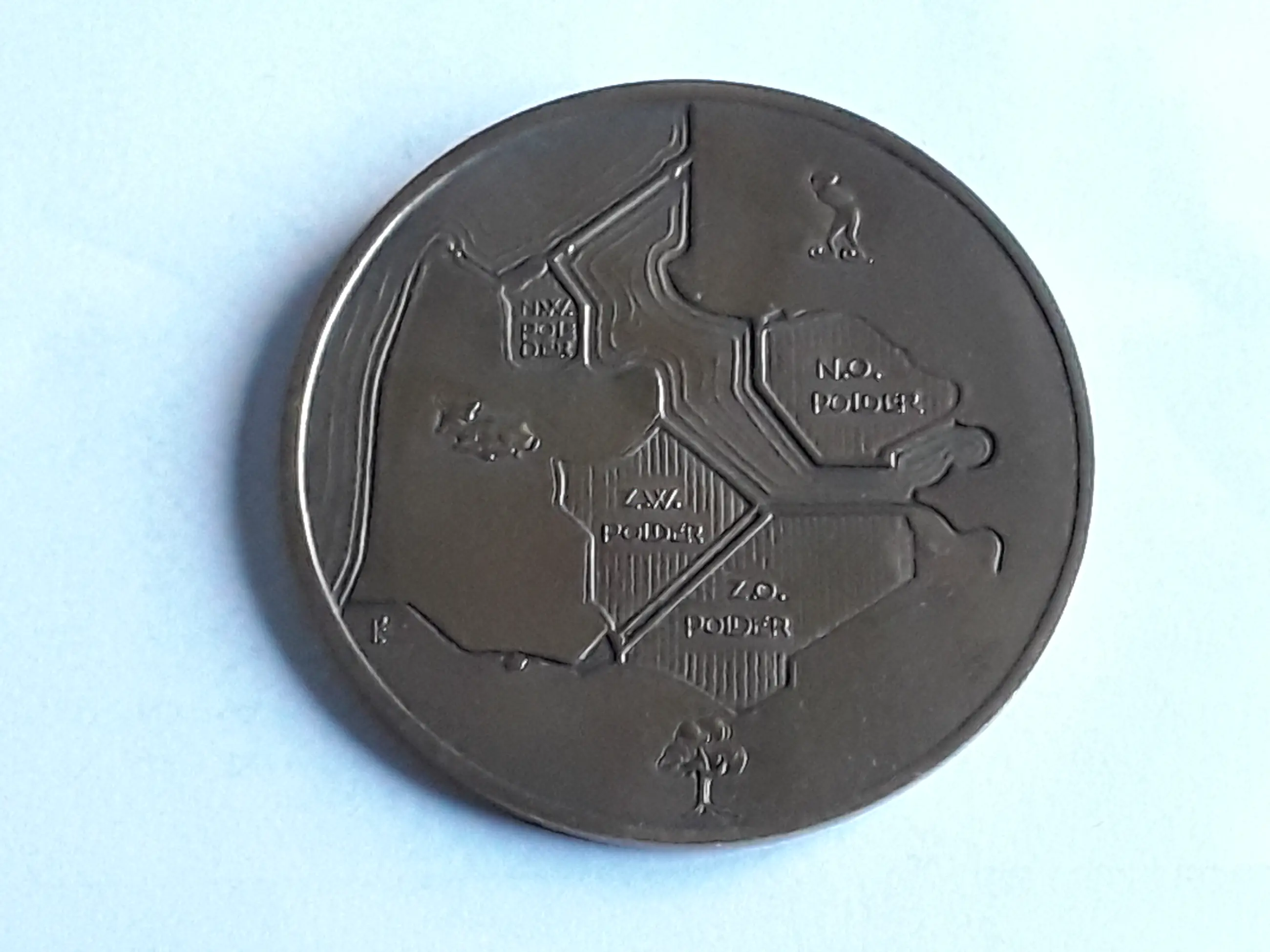 zeespiegel. De keerzijde geeft sterk grafisch en vlak de vier pol-ders die droog