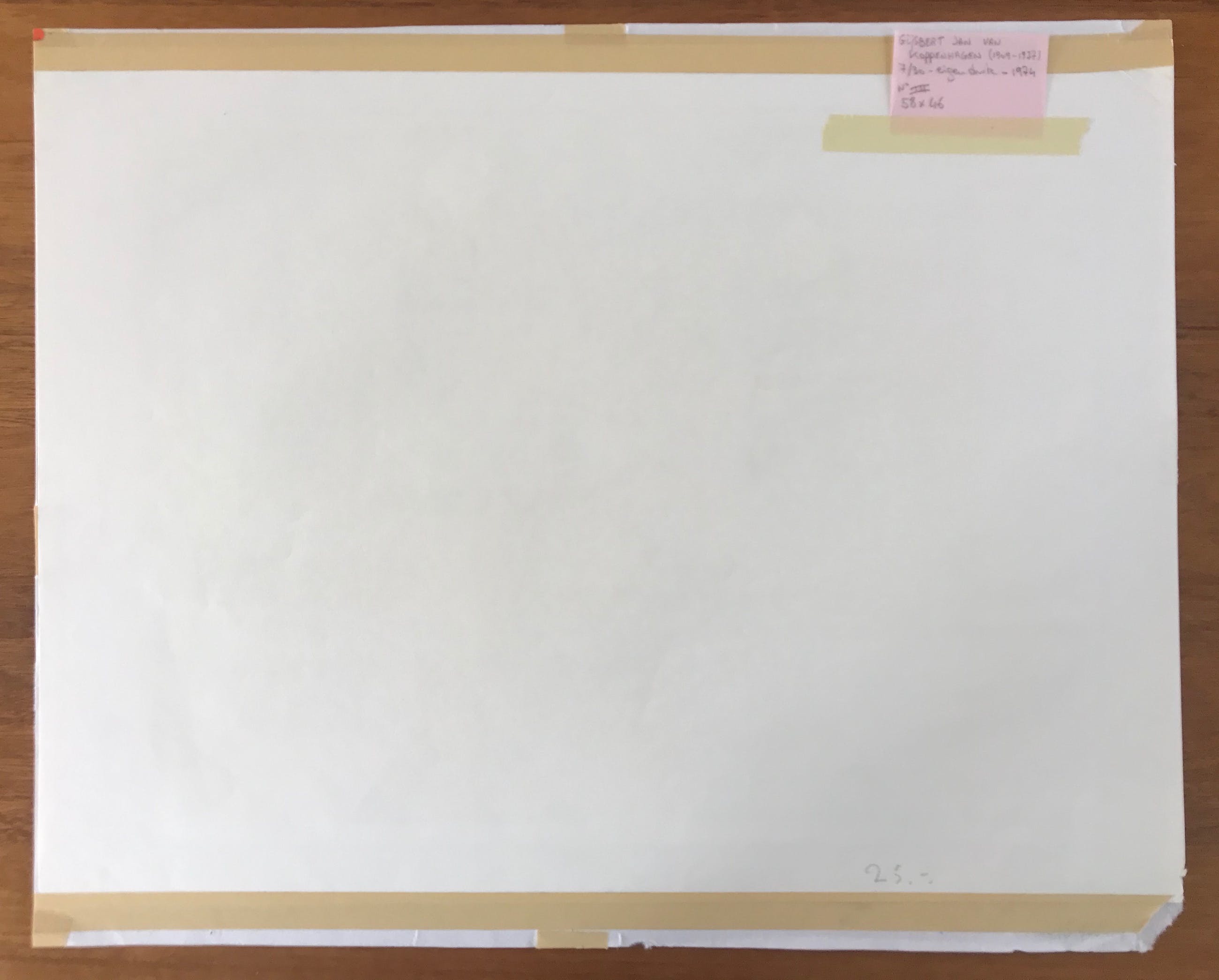 Werk is in goede staat. Kleefresten aan achterzijde van vorige inlijsting. Randen hier en daar gekarteld. Op te lossen met een passepartout.