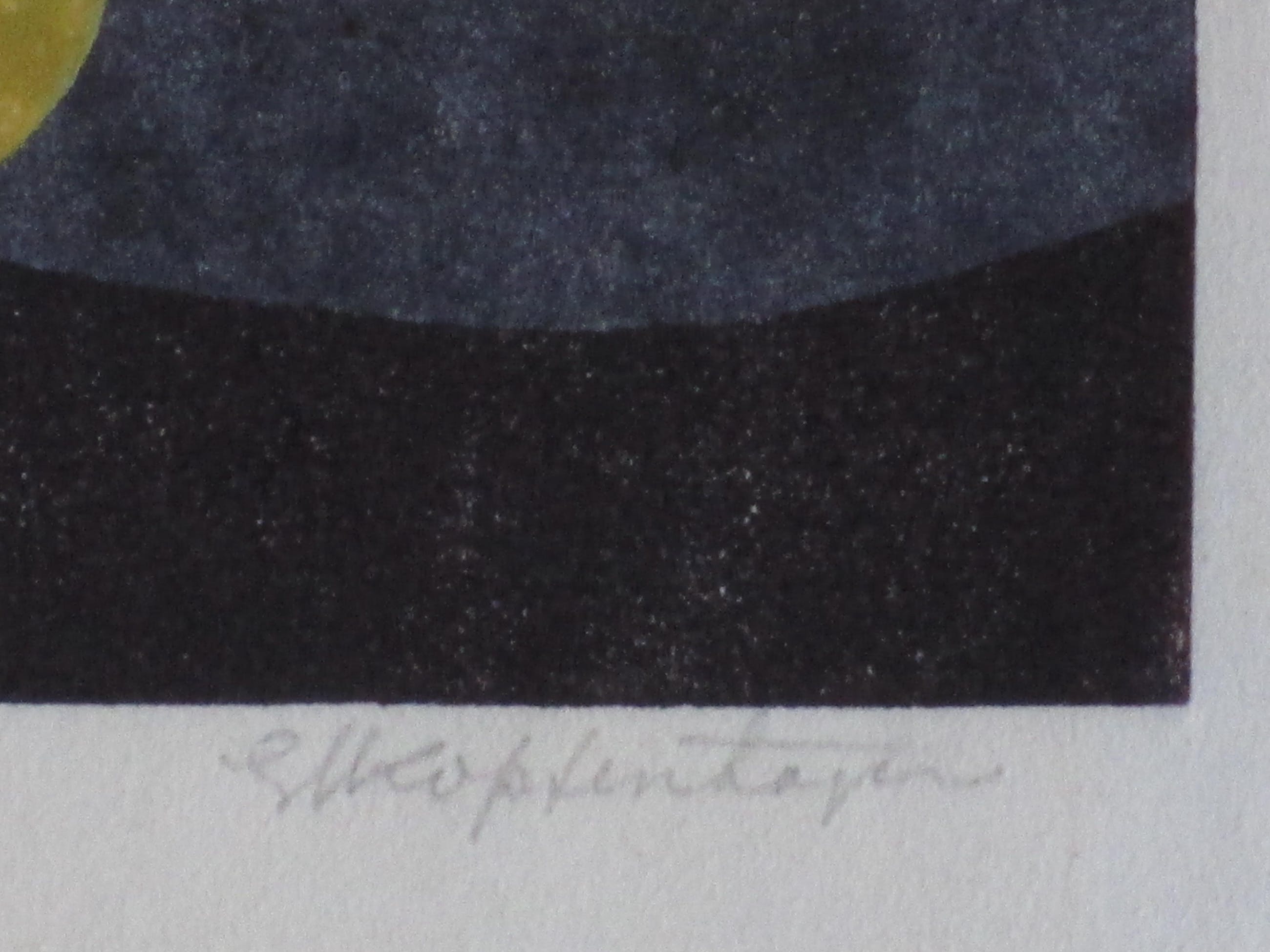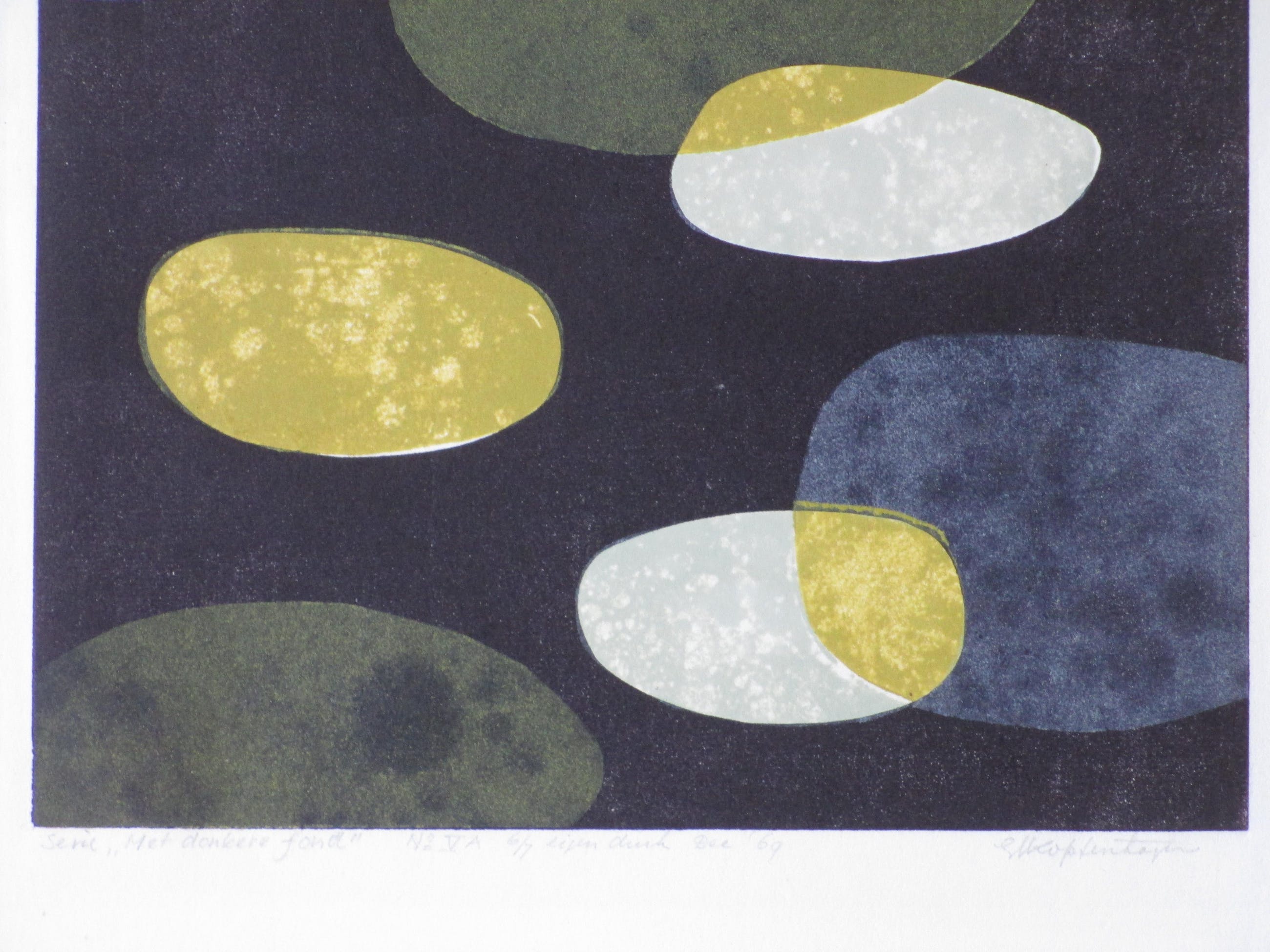 Kleurenhoutsnede door G.J. van KoppenhagenVoorstelling van een ruimtelijke compositieLosbladig, beeldmaat 24x24, bladmaat 34x26Gesigneerd in potlood r.o. 'GJ Koppenhagen'Annotatie en nummering l.o. en m.o. 'Serie "Met donkere fond" No VA 6/7 eigen druk'Datering m.o. 'Dec '69'Authenticiteit volledig gegarandeerd
