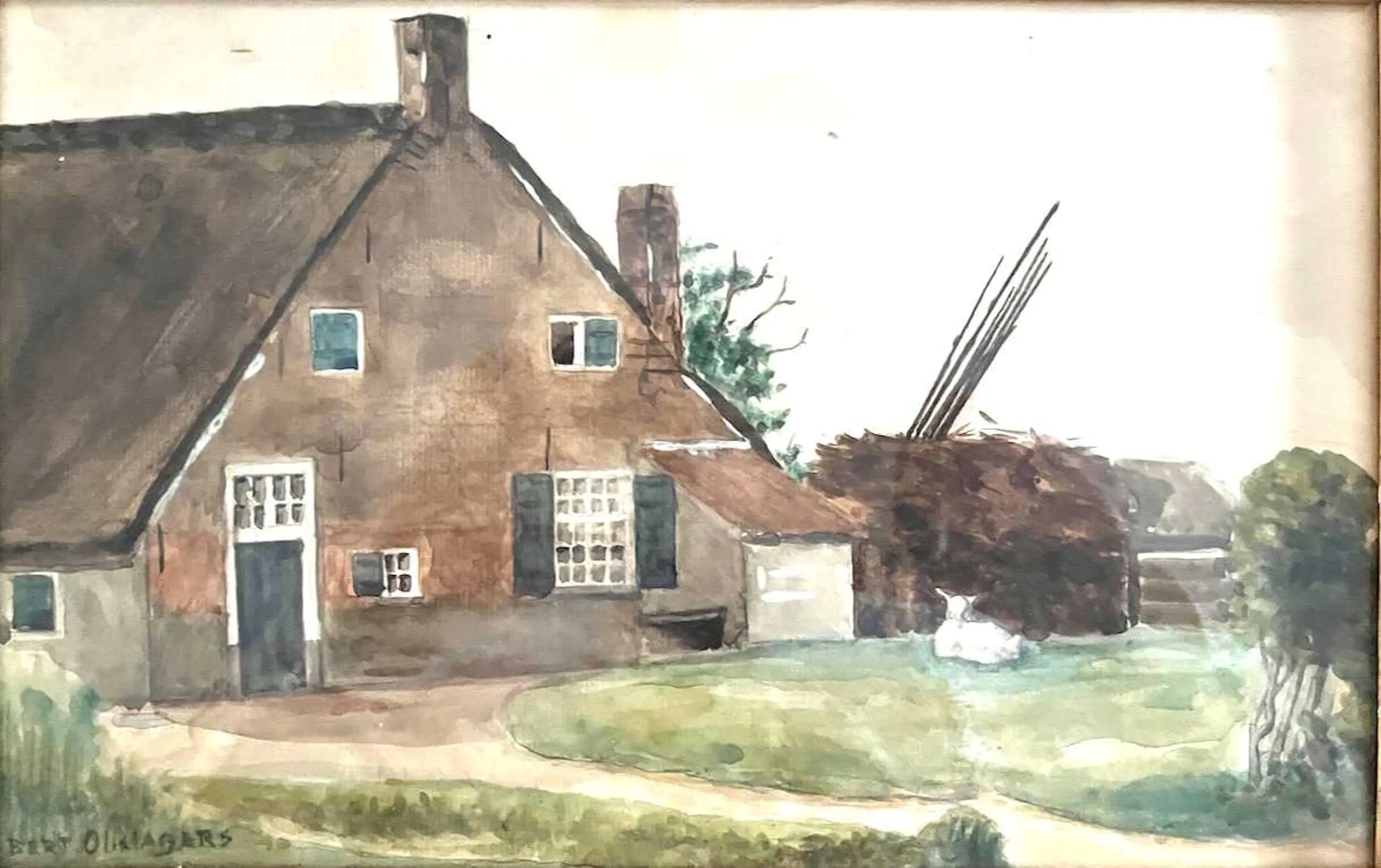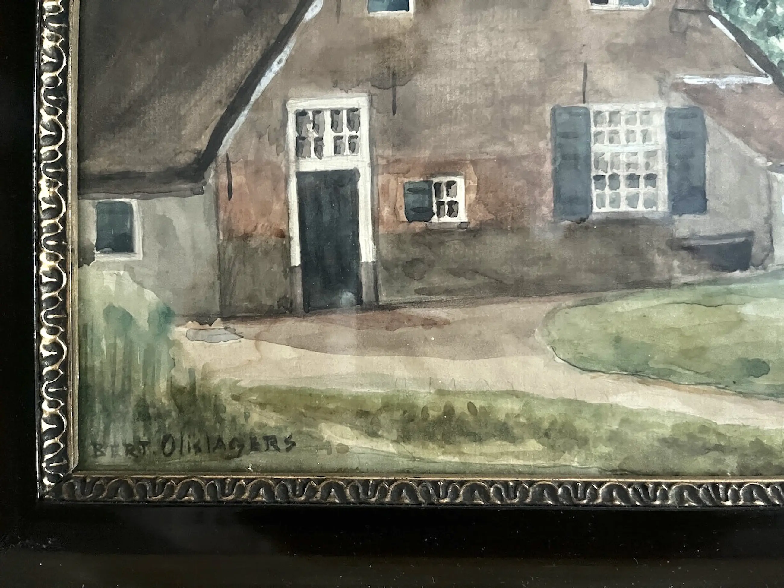 A7 50 Gijsbertus Bernardus Olislagers Boerenerf Aquarel 20 x 31 cm 30 x 41 cm