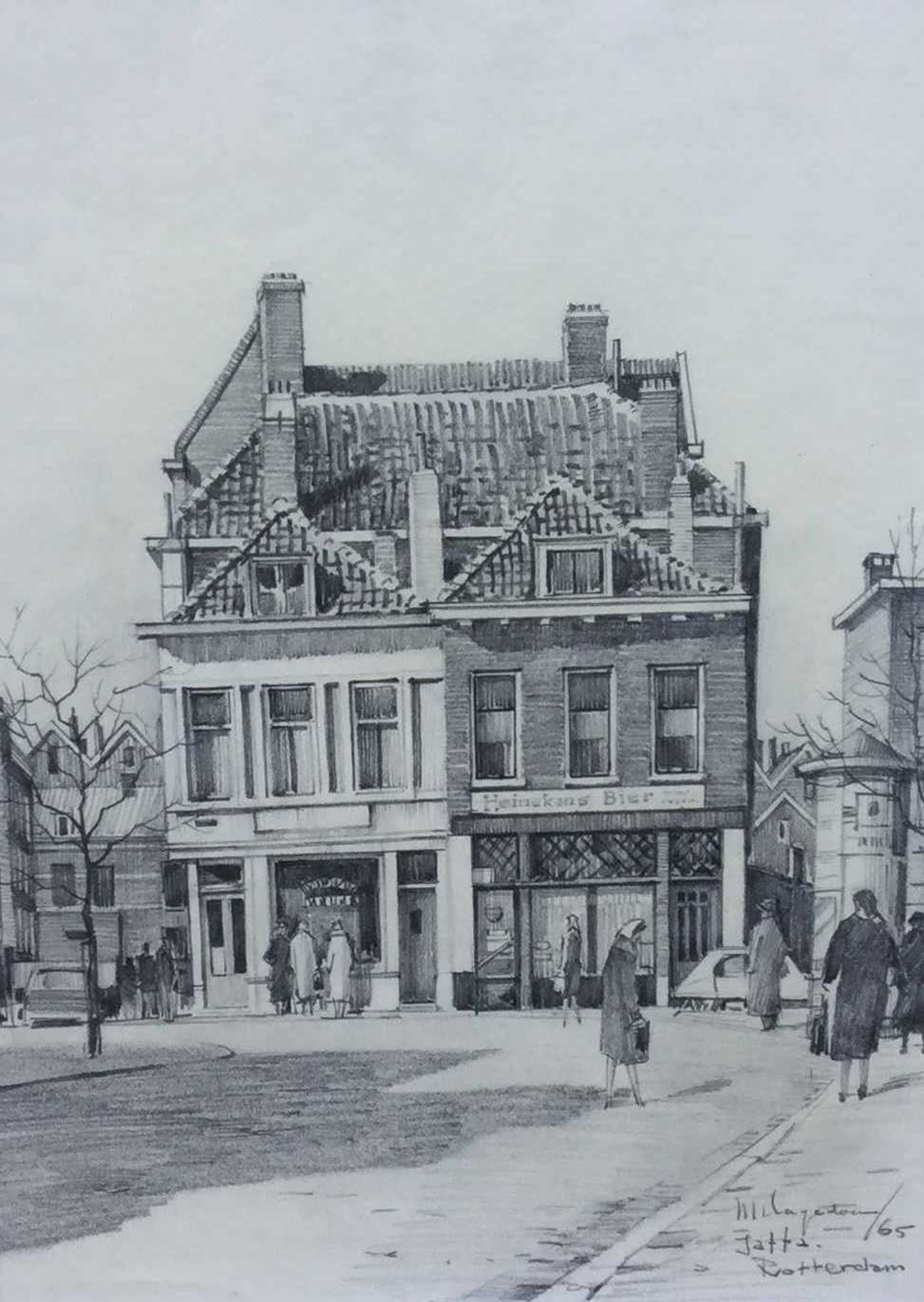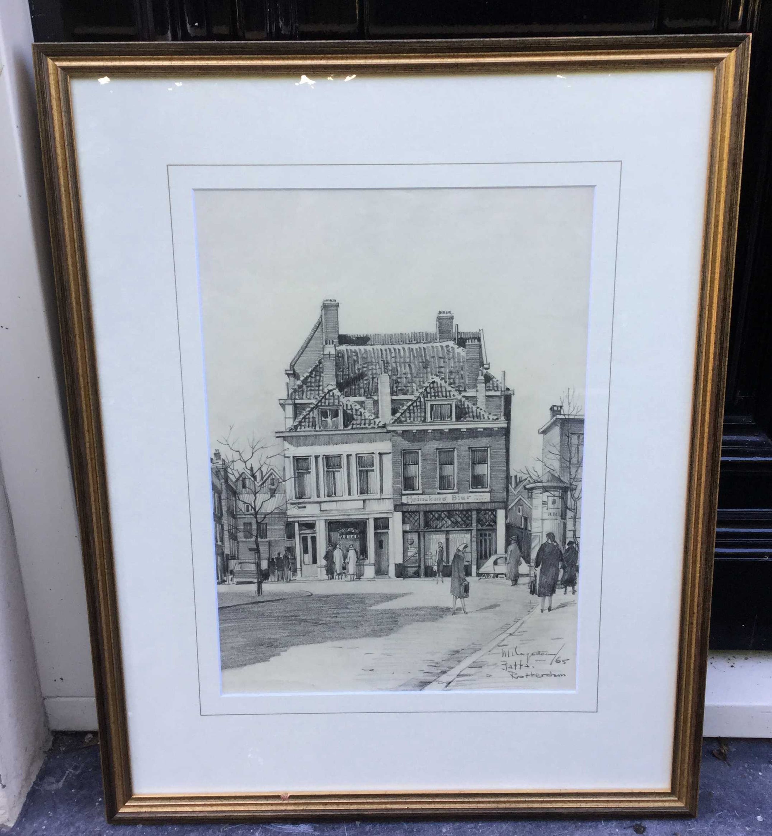 r.o. gesigneerd en gedateerd 65, Rotterdam, potloodtekening, maat: 39 x 28, lijstmaat: 60,5 x 48.